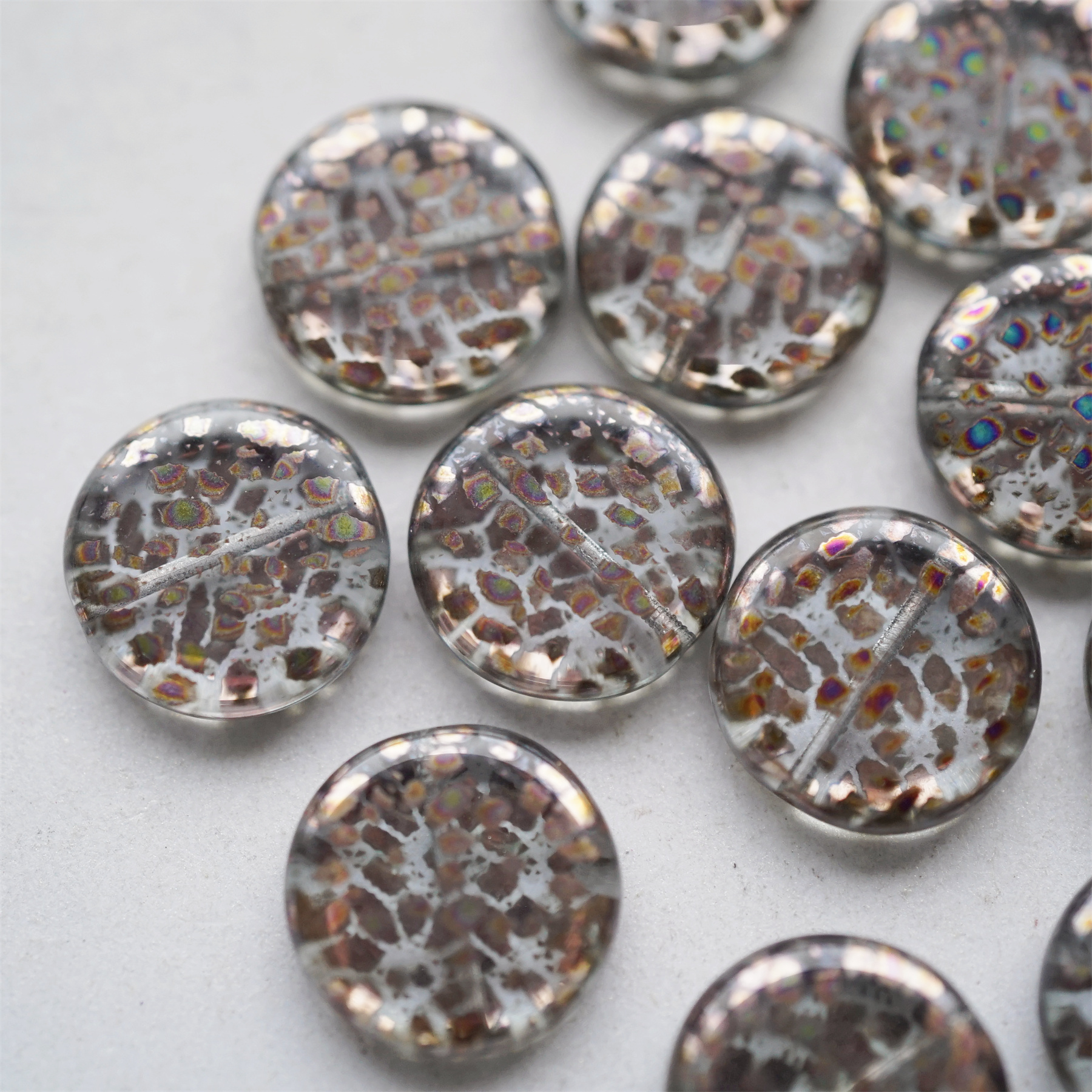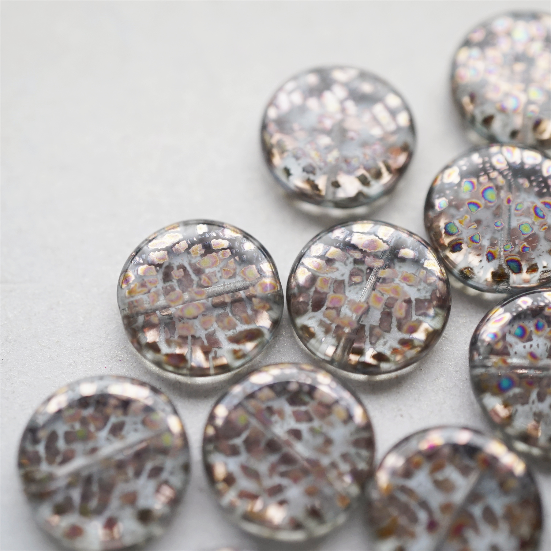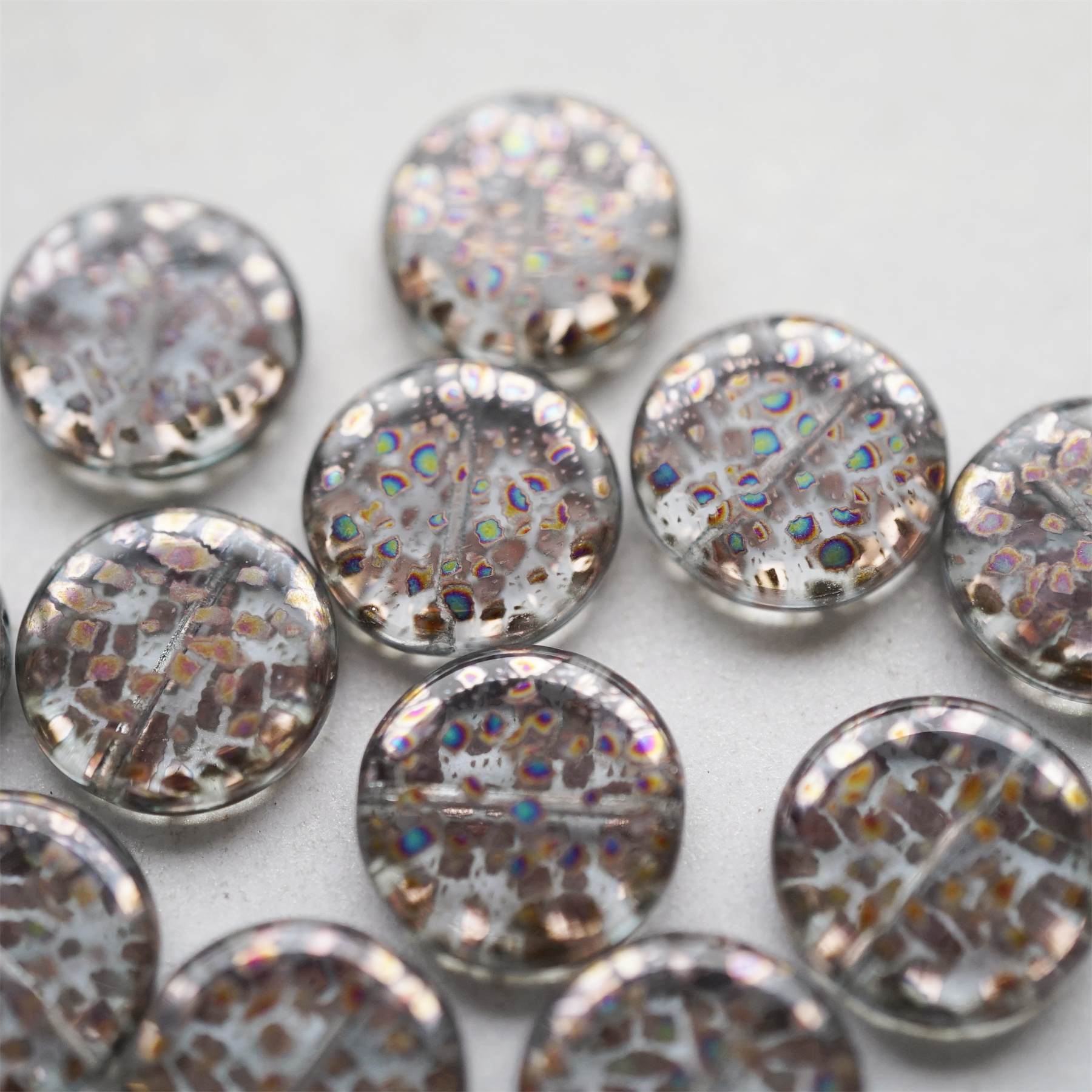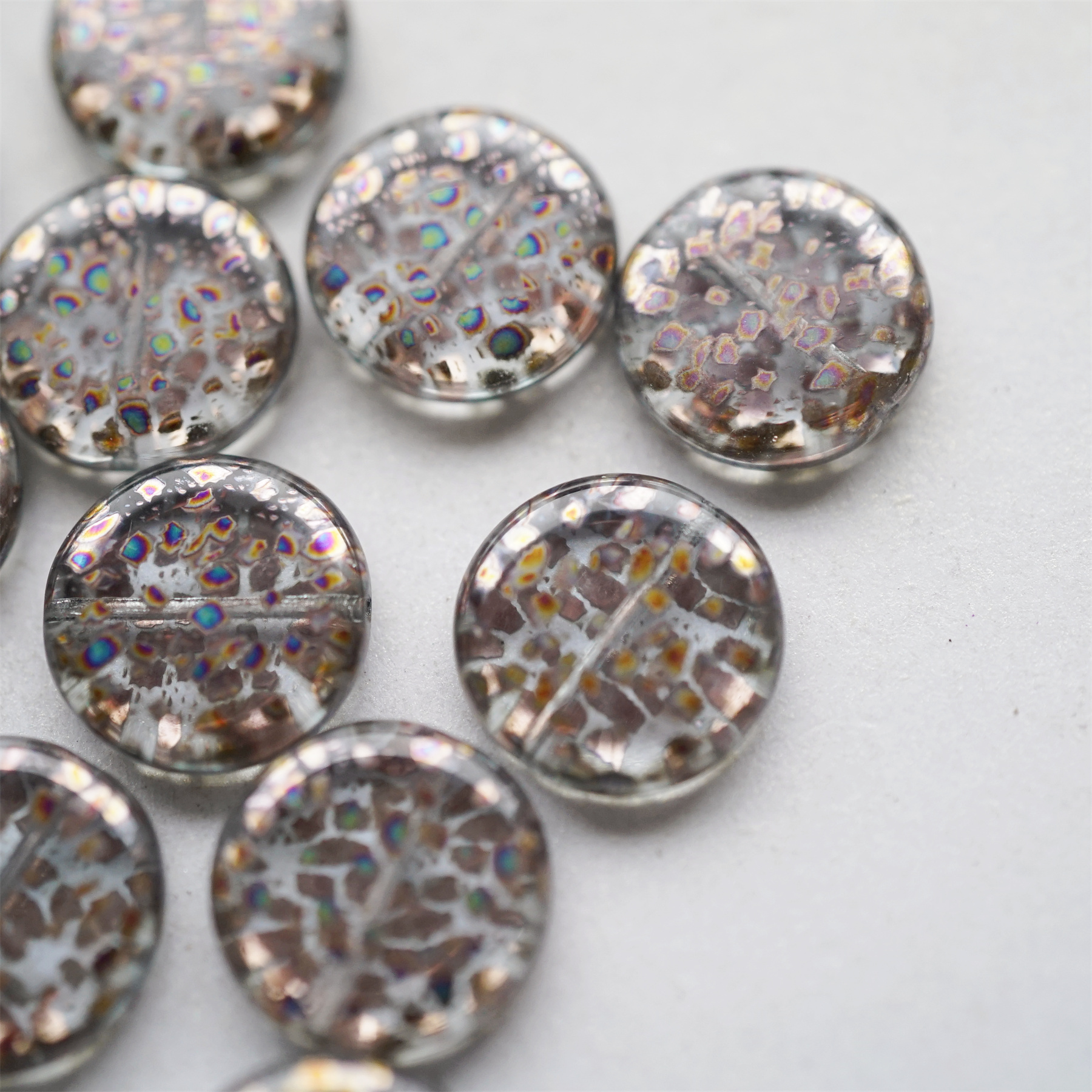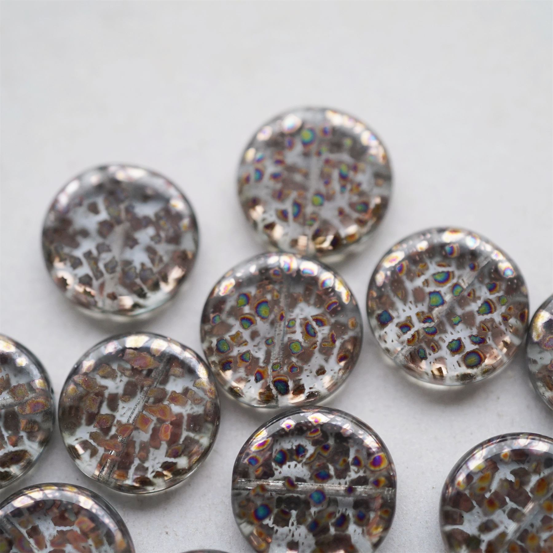 稀有亮面透明电光点阵纹停产色~扁圆捷克珠玻璃琉璃珠 15MM