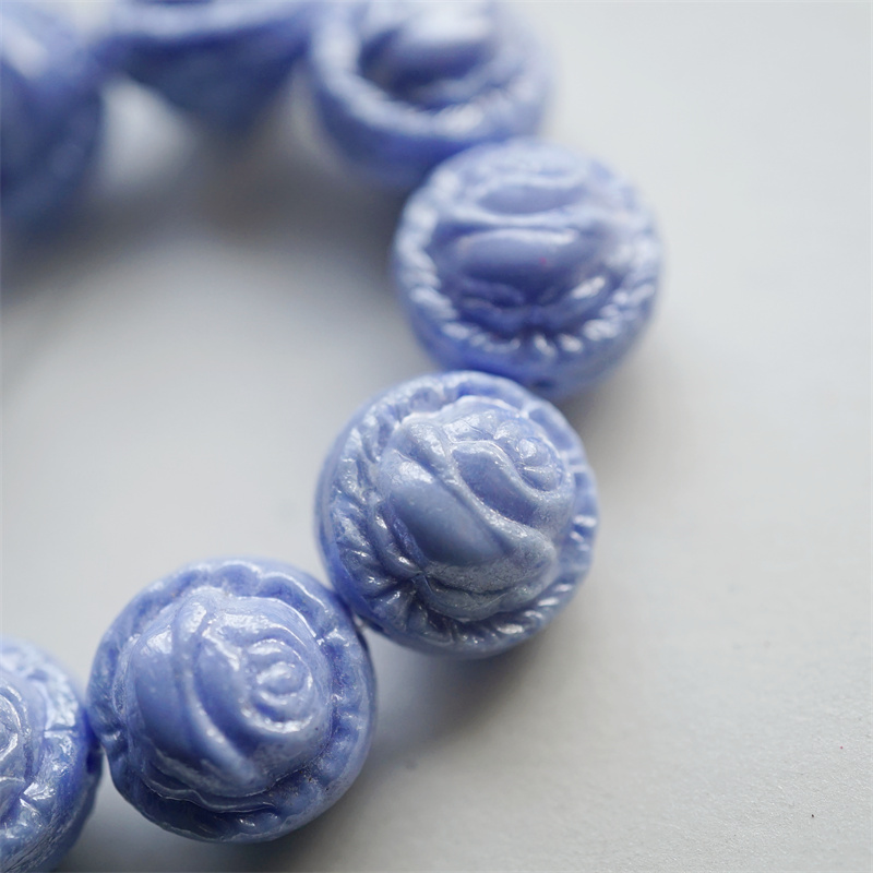 实色婴儿蓝光泽感~高定立体浮雕玫瑰捷克珠玻璃琉璃 18X15MM