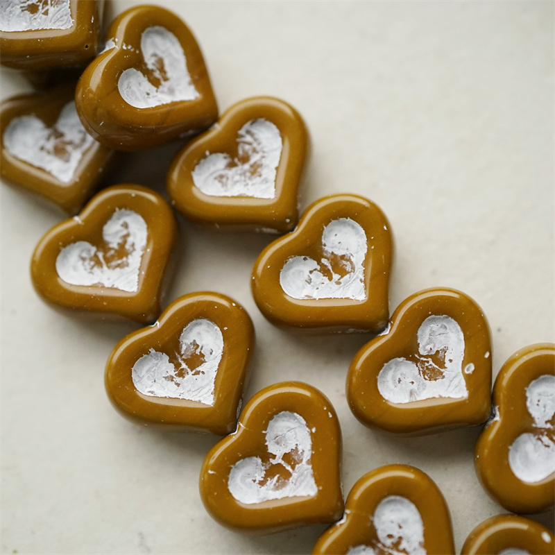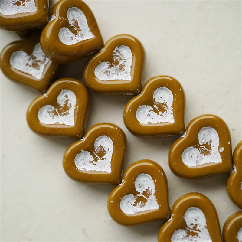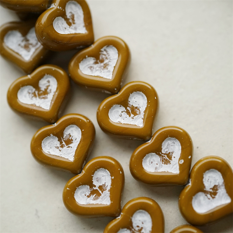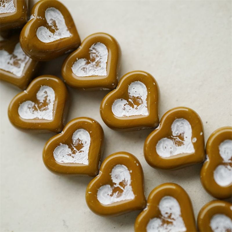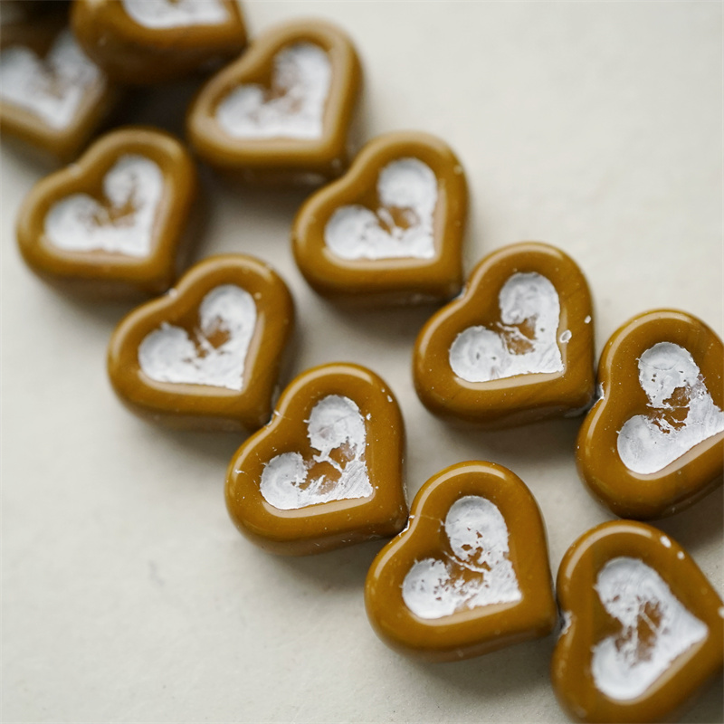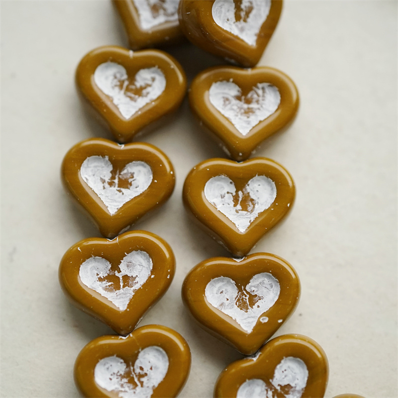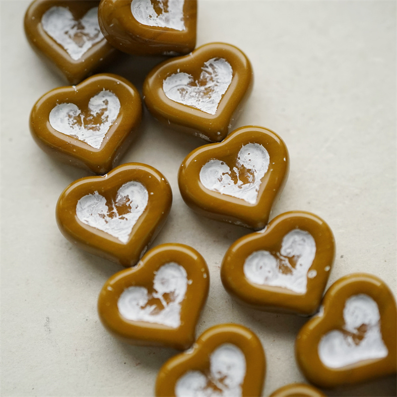 复古棕色描白~复古少女爱心桃心捷克珠玻璃珠琉璃珠 14X12MM