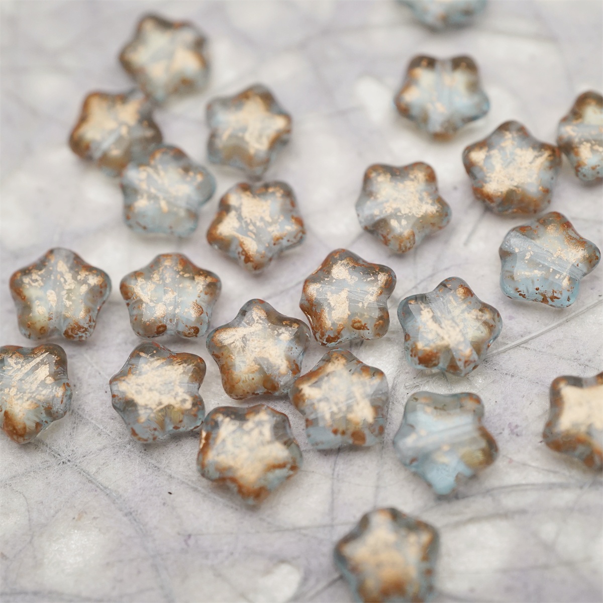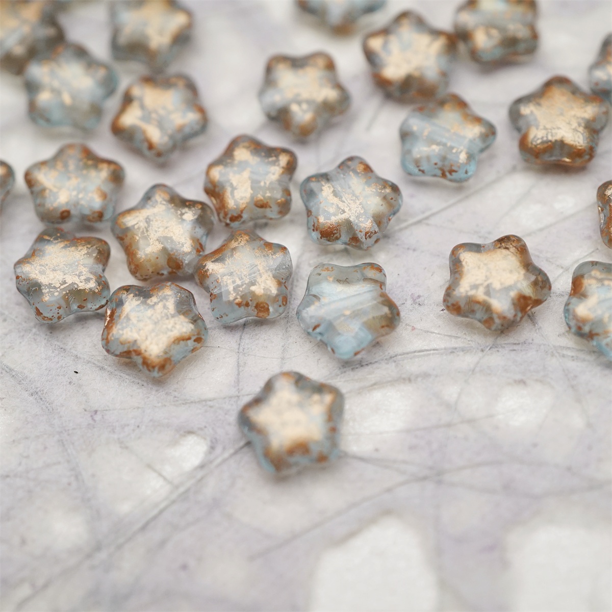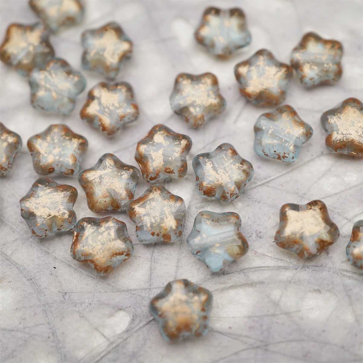 透蓝复古鎏金玫瑰金色调~星星五角星捷克珠玻璃琉璃 8MM