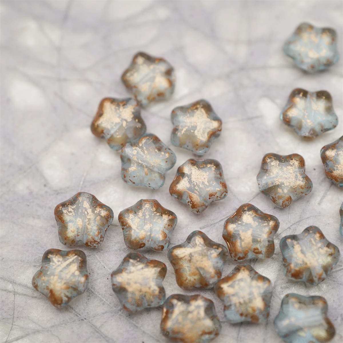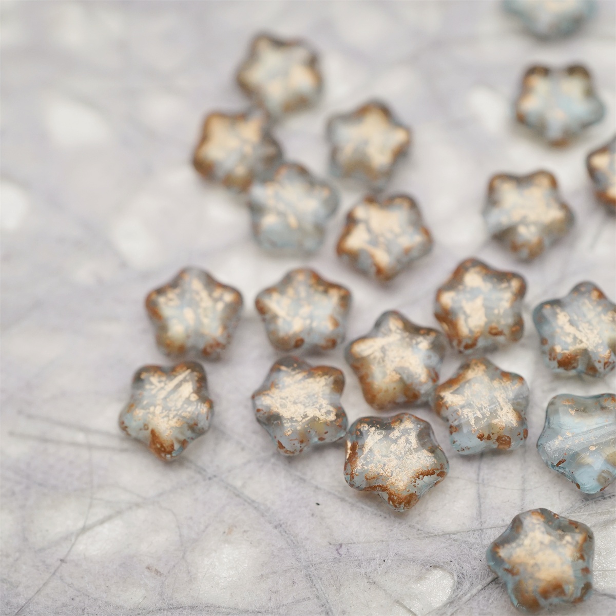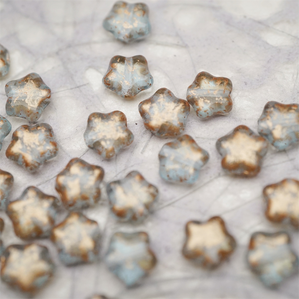 透蓝复古鎏金玫瑰金色调~星星五角星捷克珠玻璃琉璃 8MM