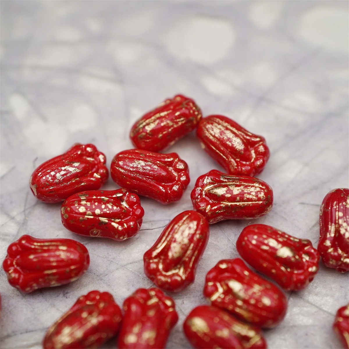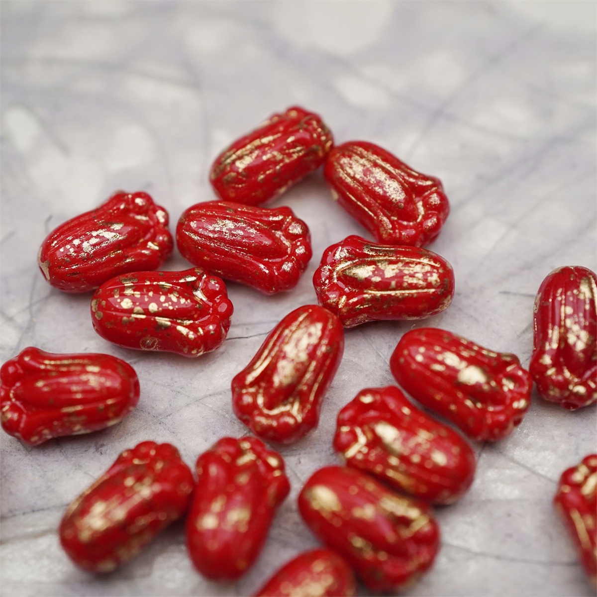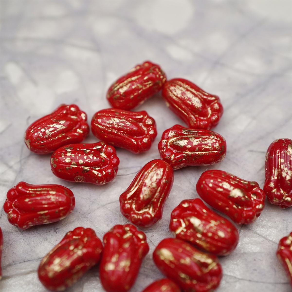 复古红色烫金洒金~可爱郁金香捷克珠玻璃琉璃 12X8MM