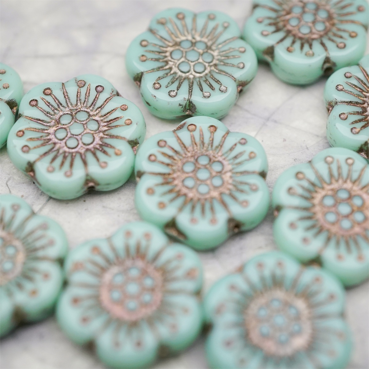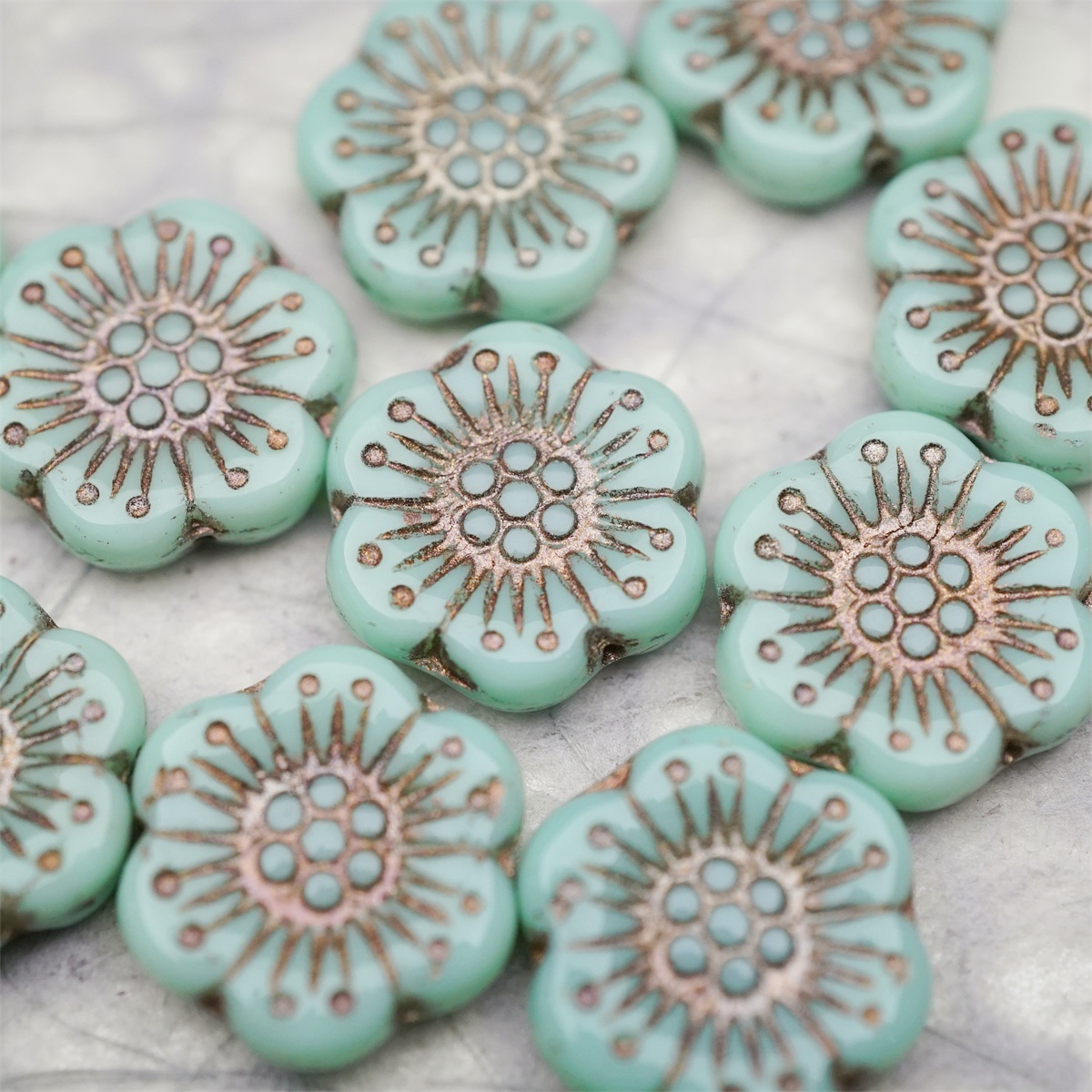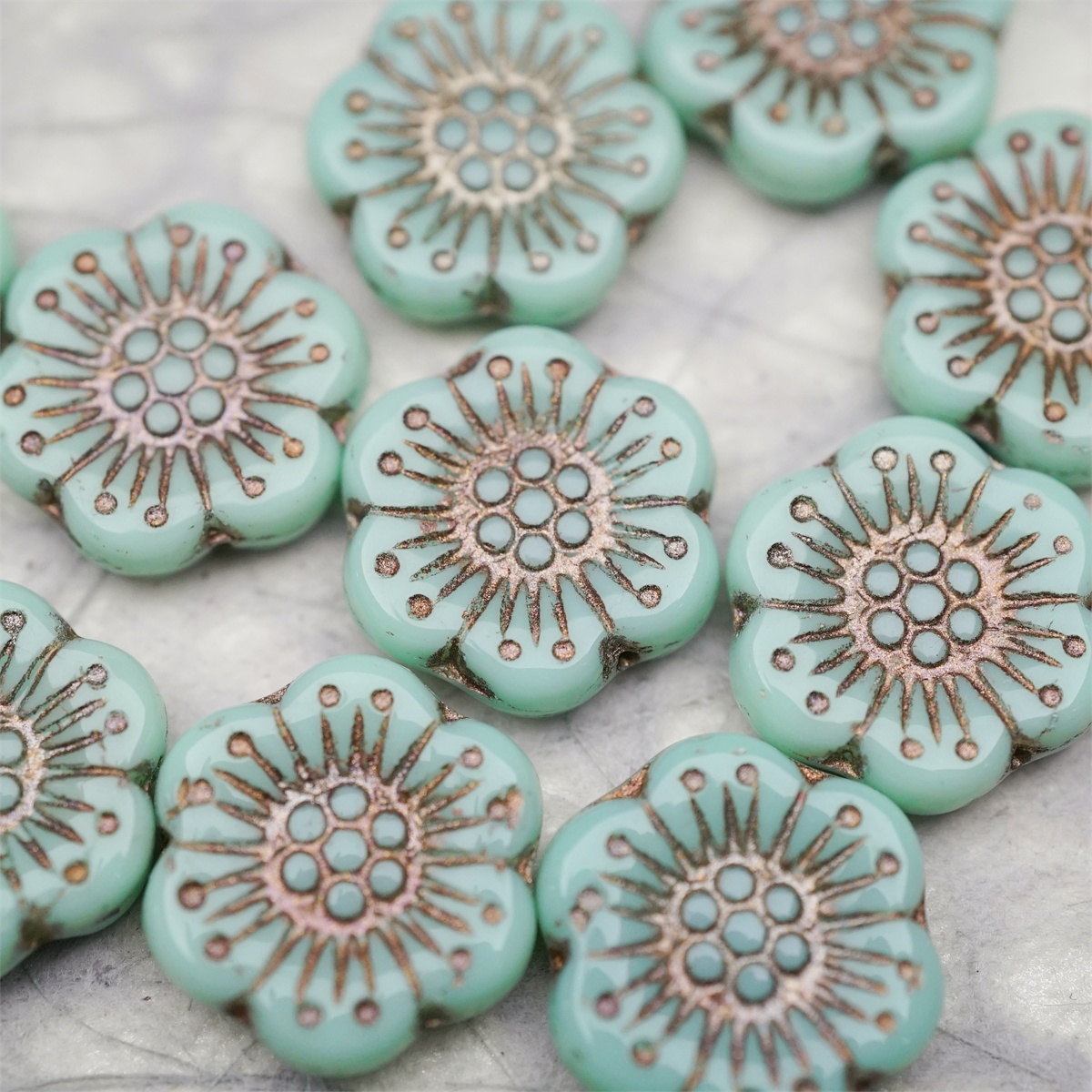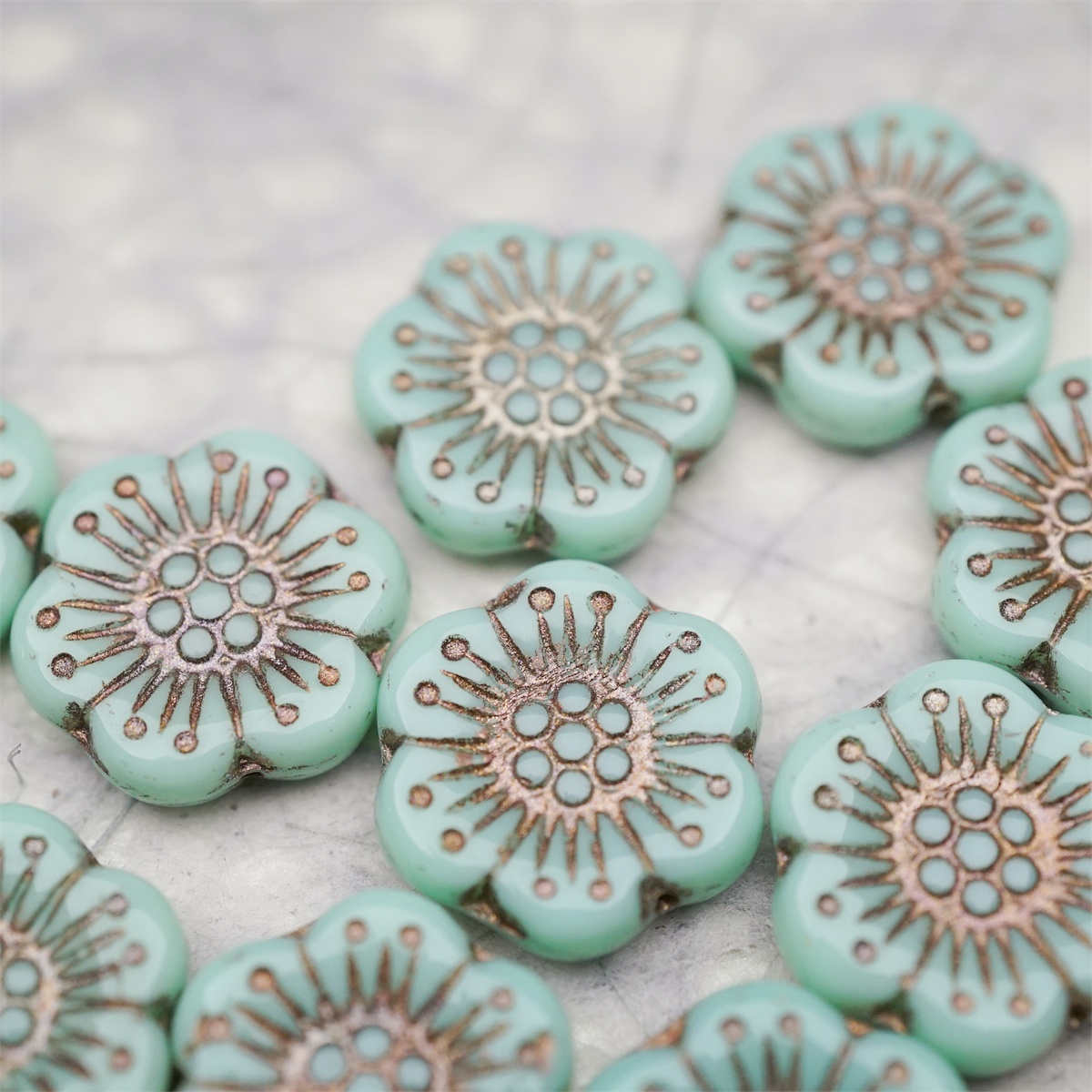 薄荷绿描灰白金色~大号樱花捷克珠玻璃琉璃 18MM