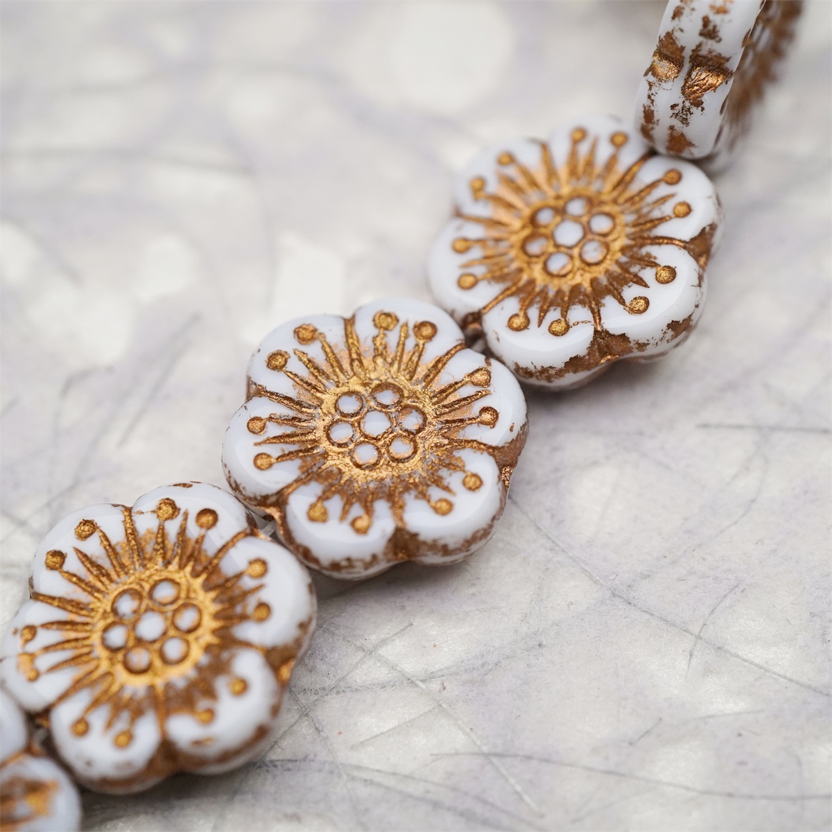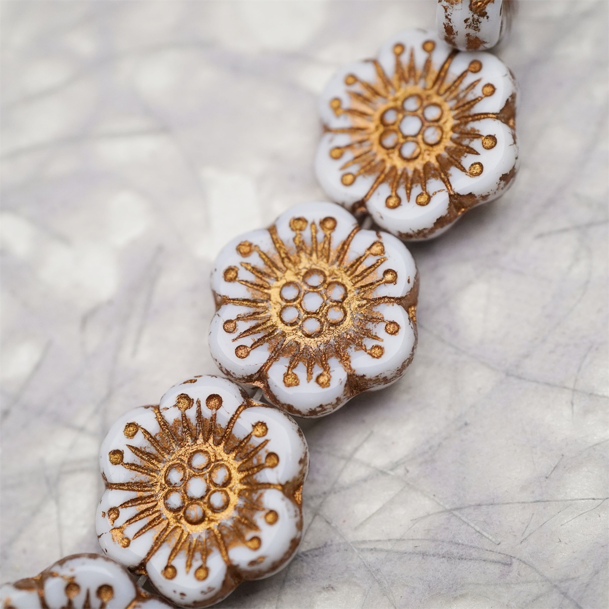 纯白描古铜金色~大号樱花捷克珠玻璃琉璃 18MM