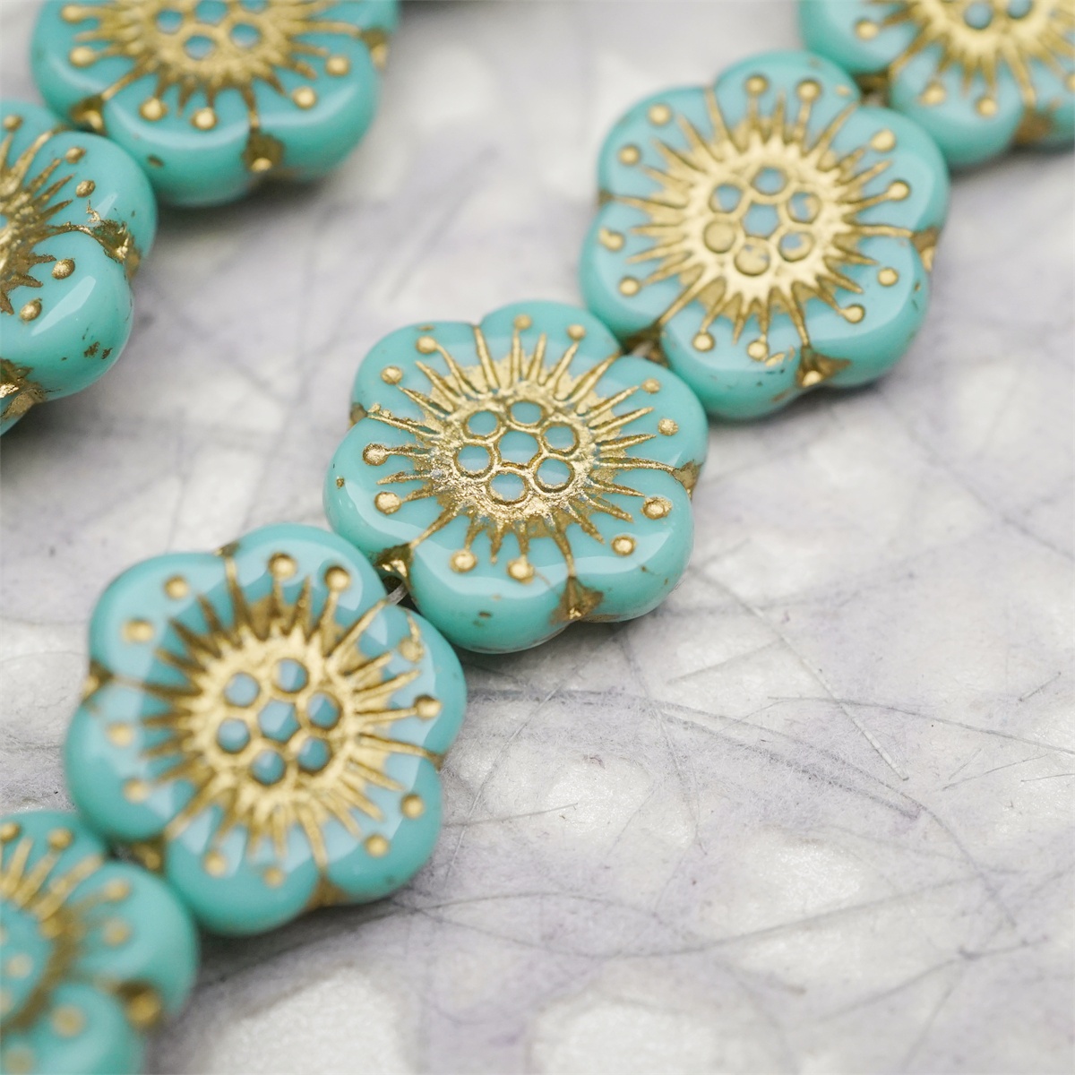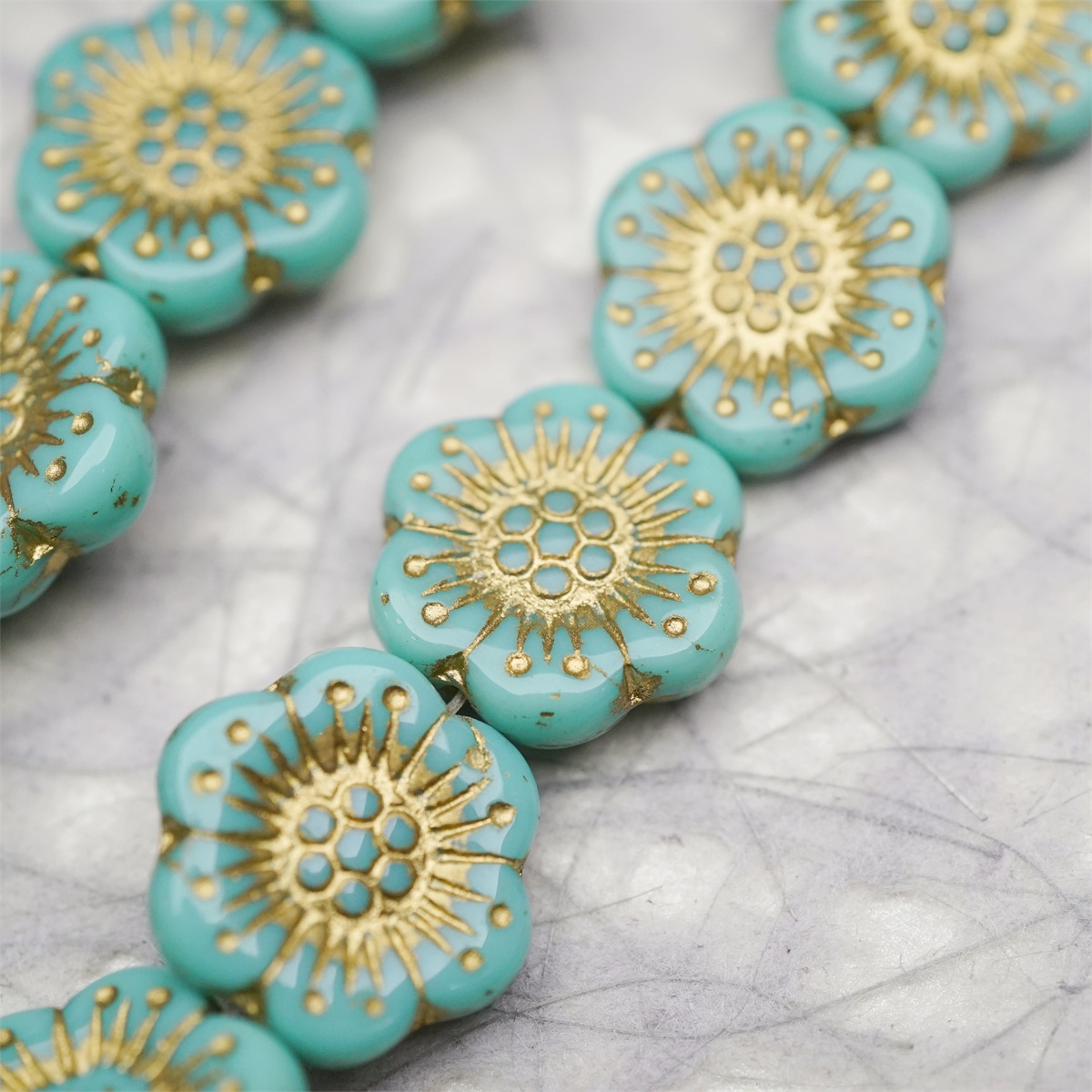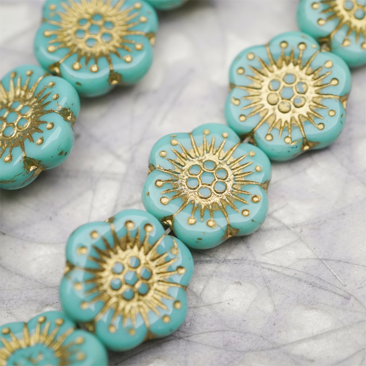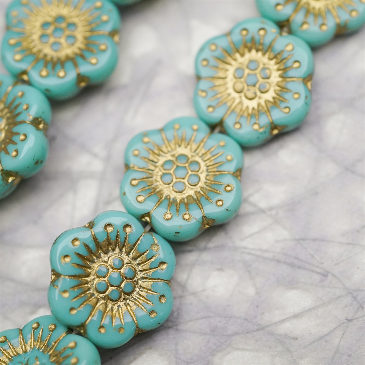 松石绿色描金~大号樱花捷克珠玻璃琉璃 18MM