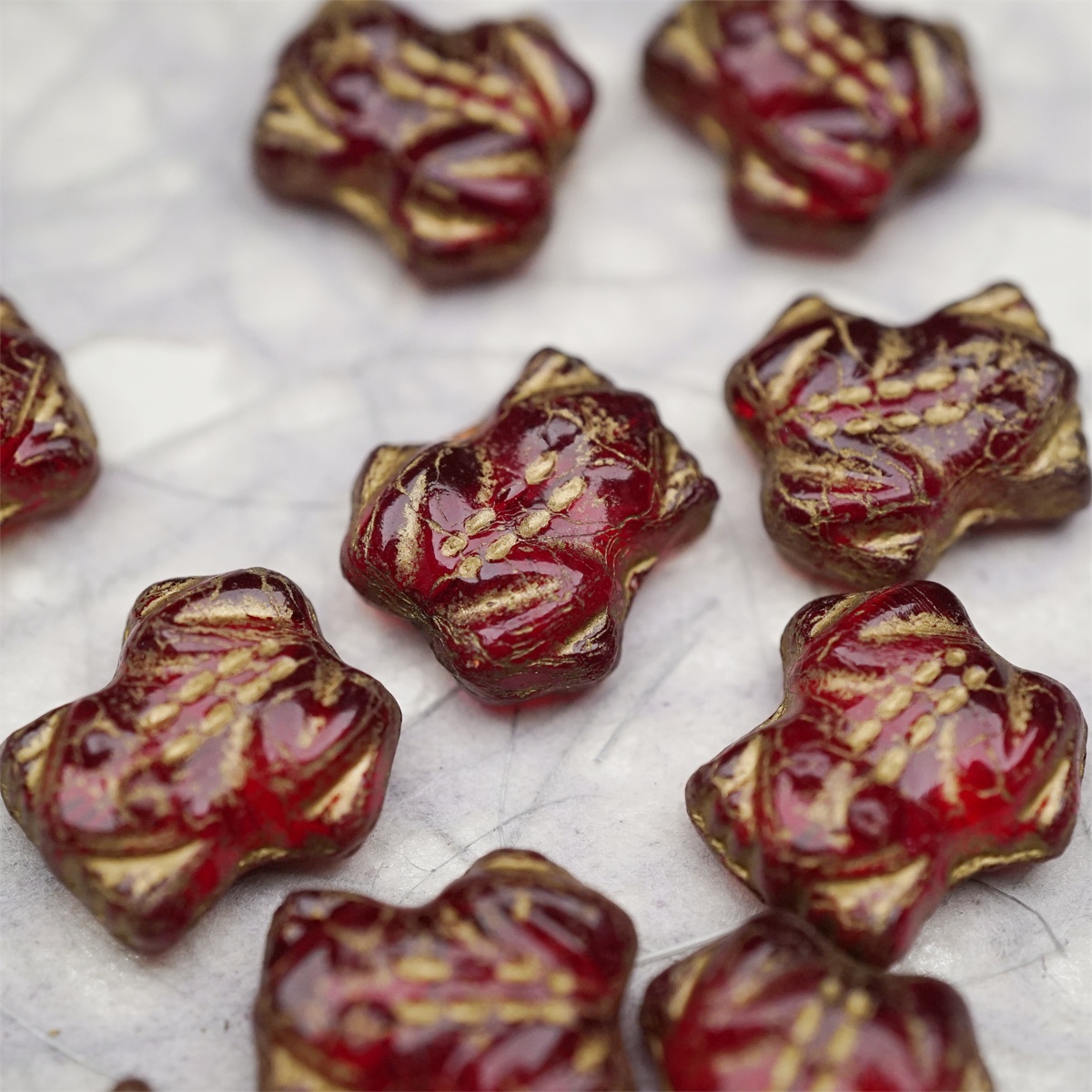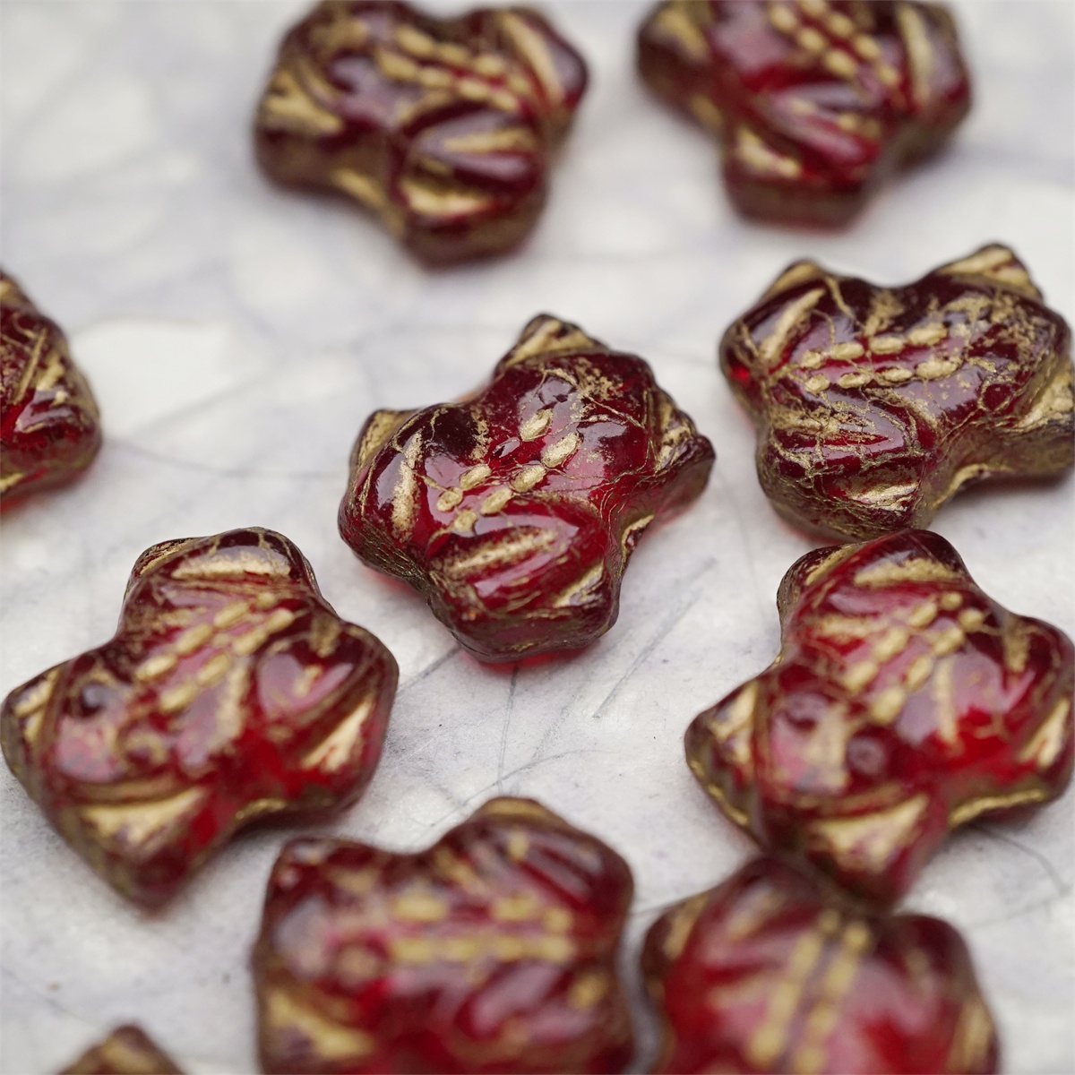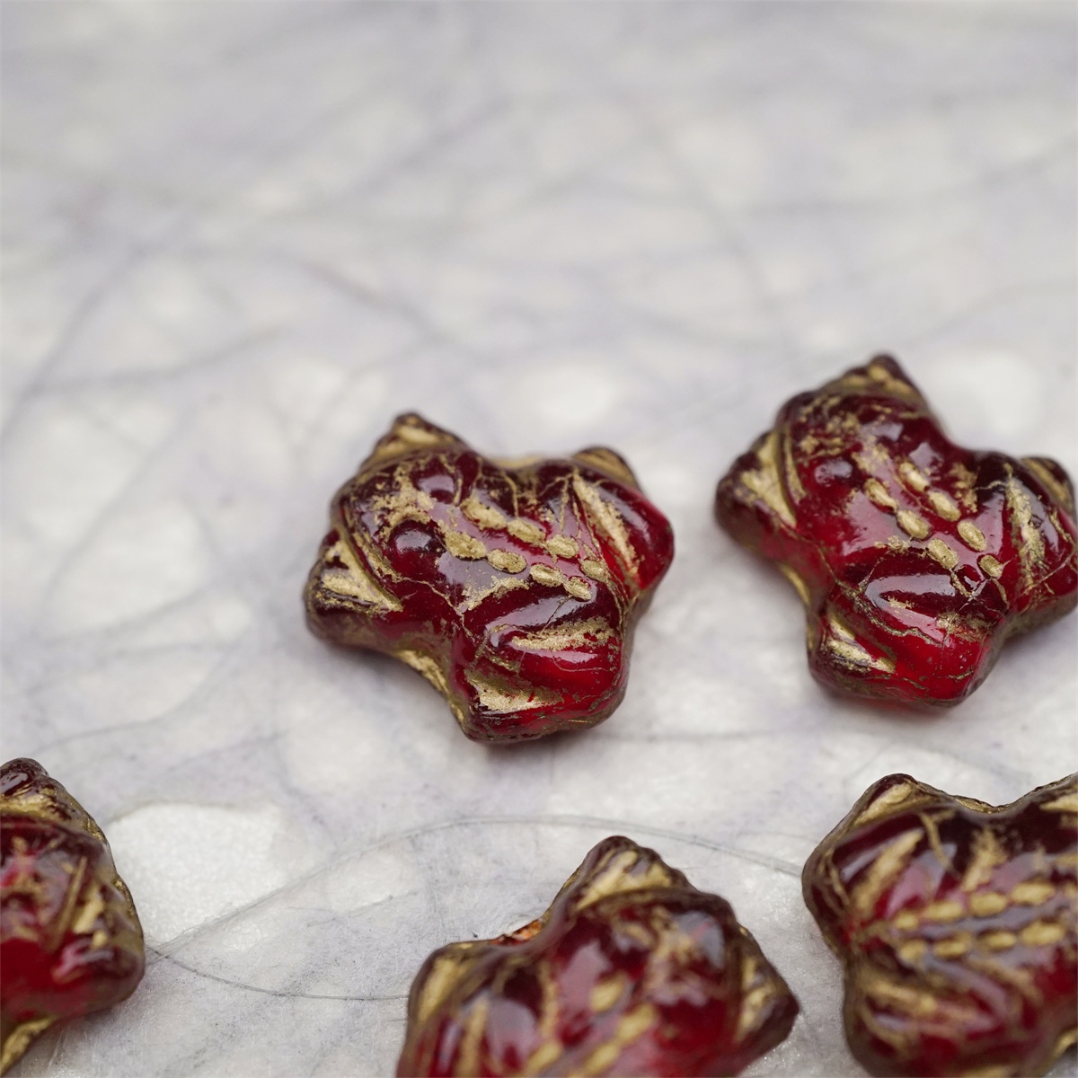复古透红色描金~可爱幸运青蛙动物捷克珠玻璃琉璃珠 15X17MM