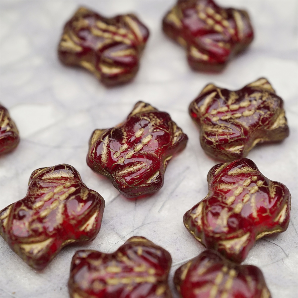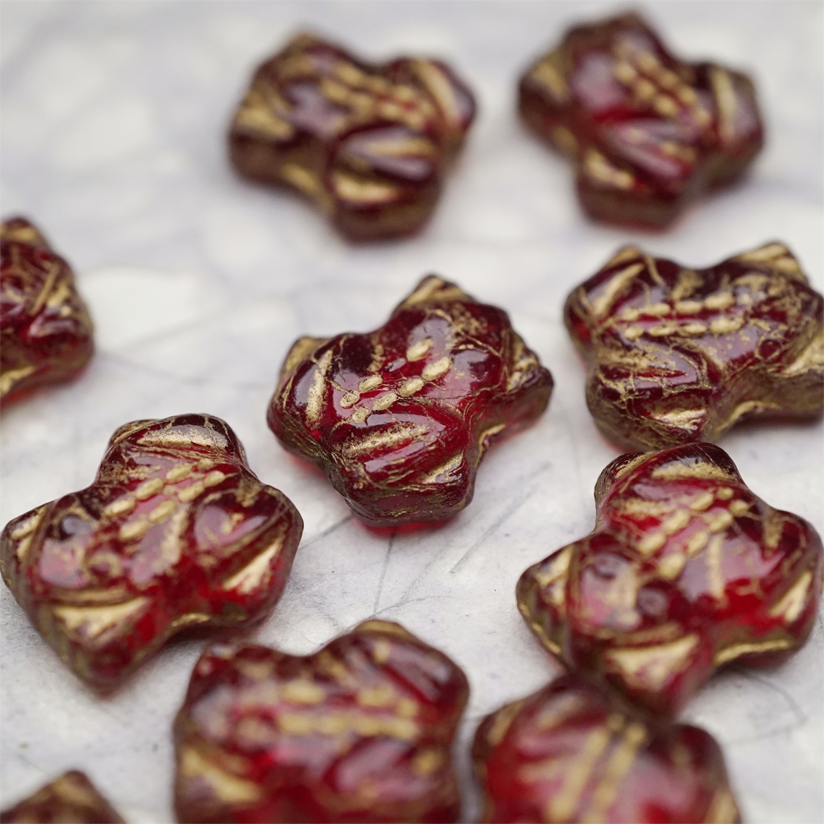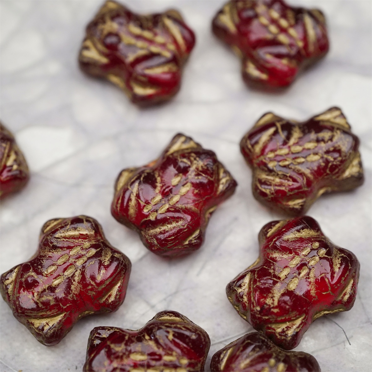 复古透红色描金~可爱幸运青蛙动物捷克珠玻璃琉璃珠 15X17MM