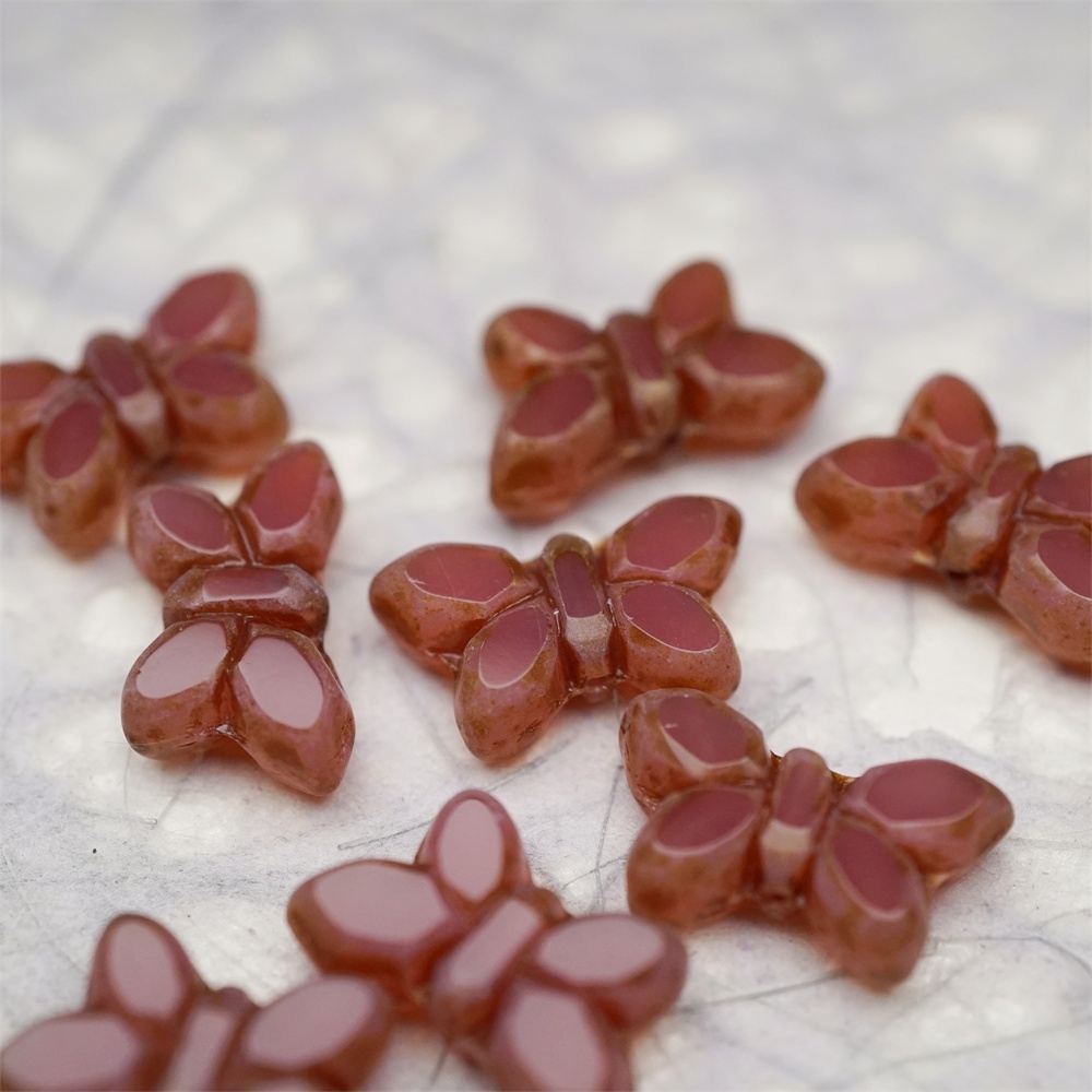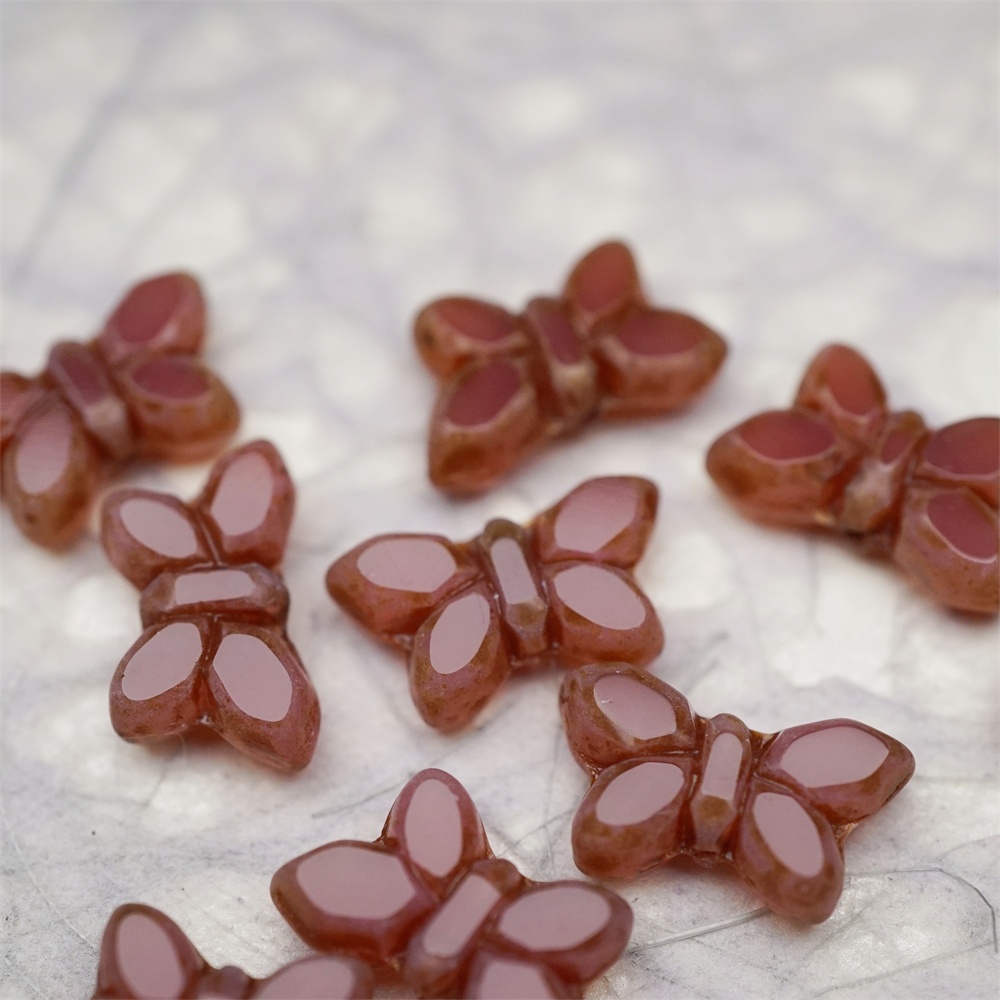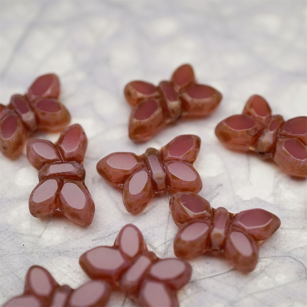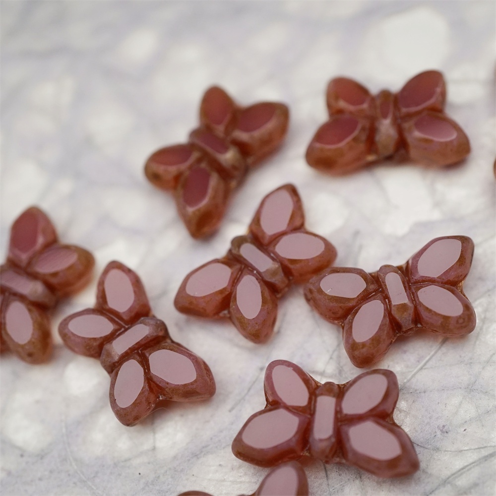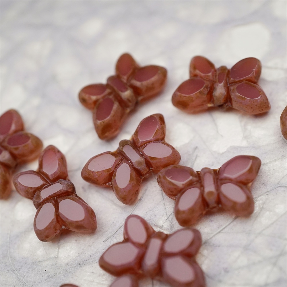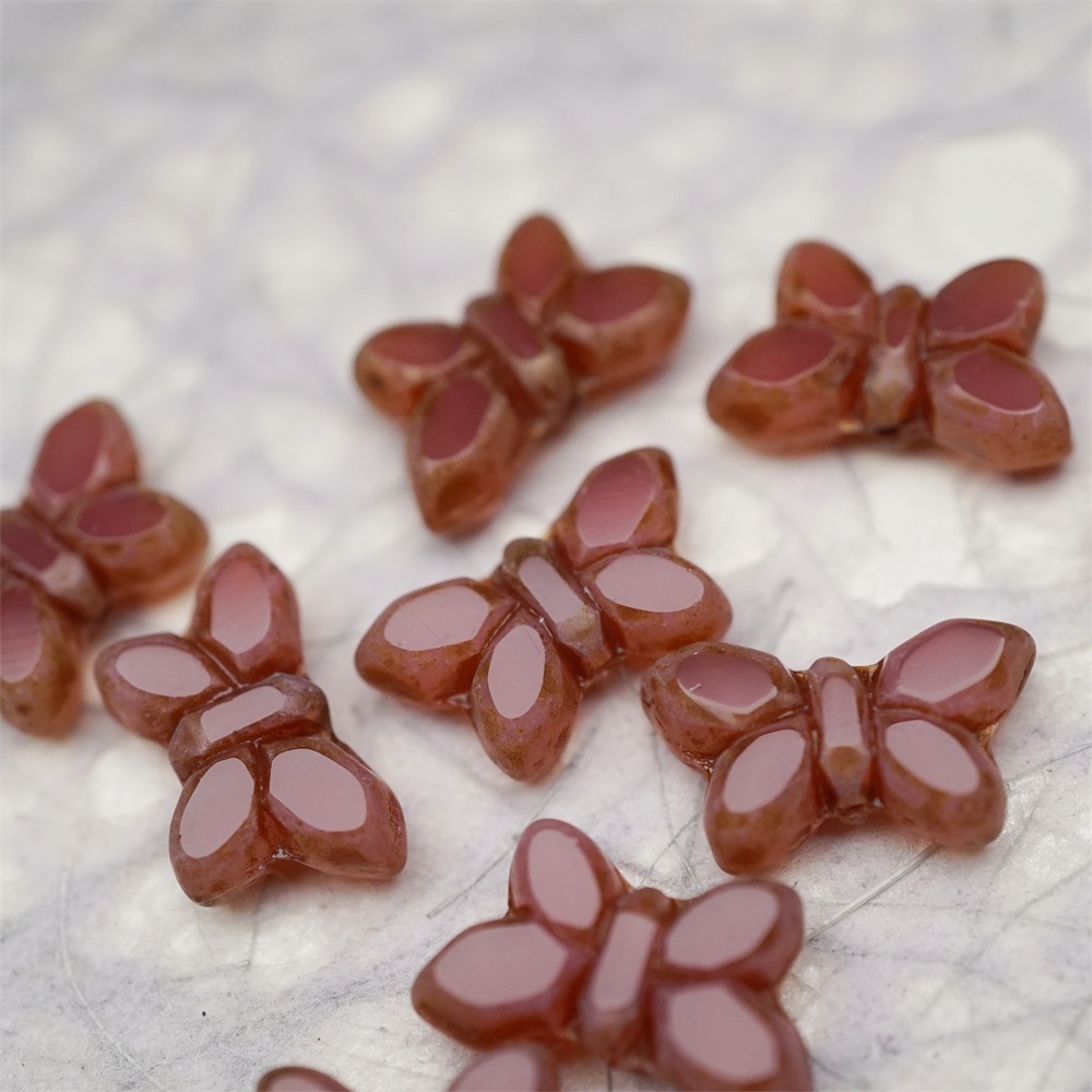 脏脏粉色复古做旧边边~高定蝴蝶珠捷克珠玻璃琉璃珠 20X12MM