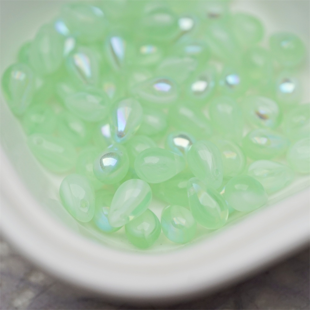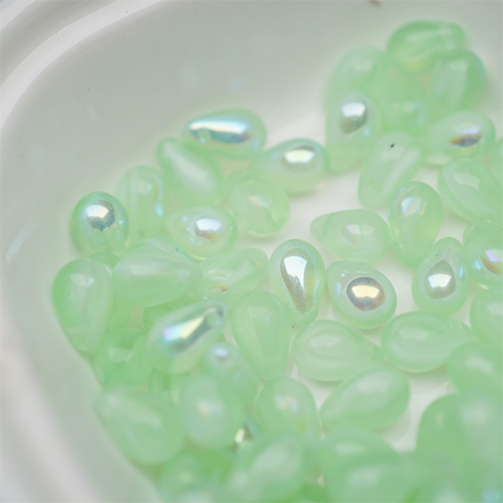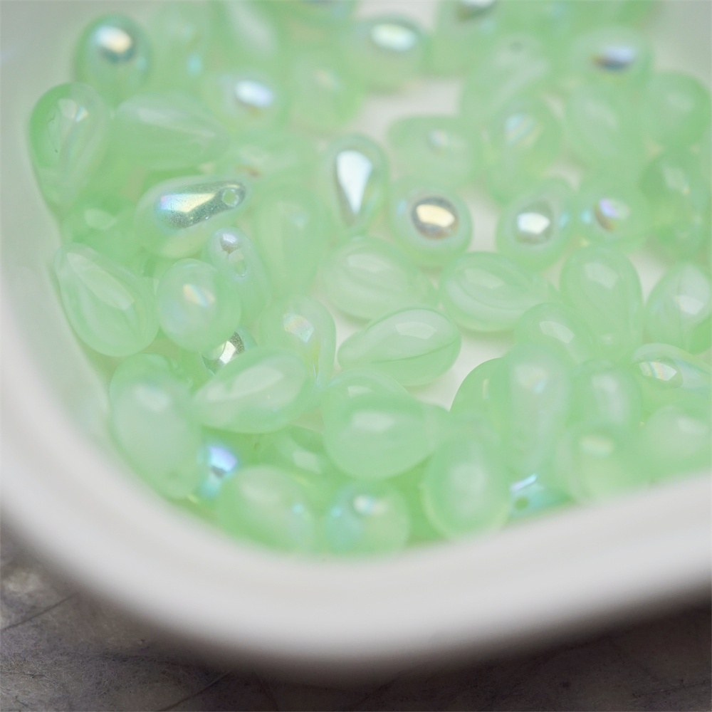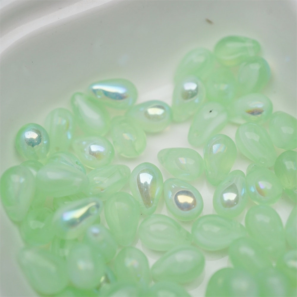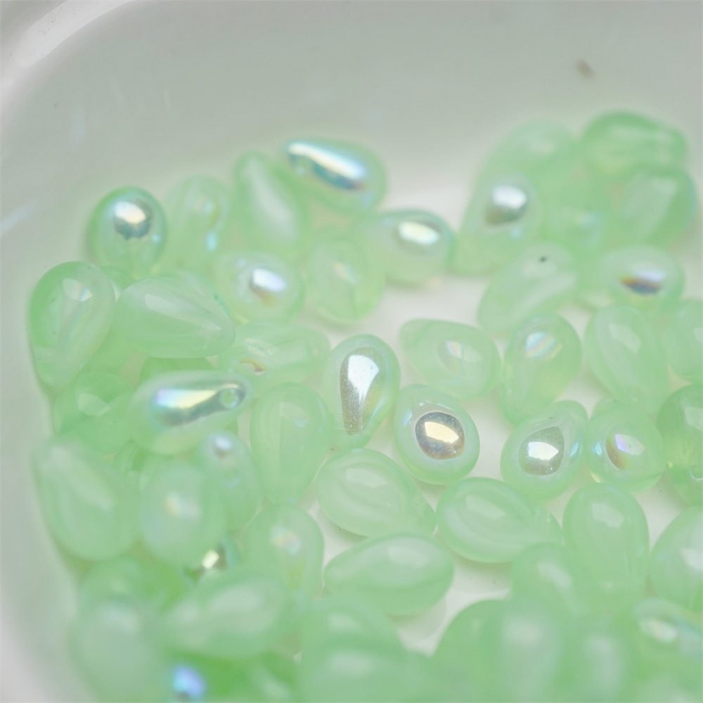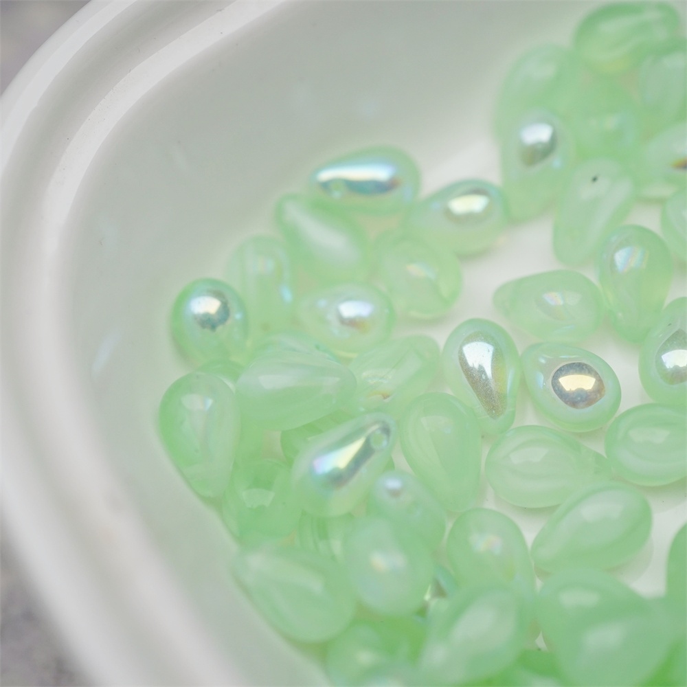 浅绿色系条纹mix幻彩色~常规水滴珠捷克珠玻璃琉璃珠 6X9MM