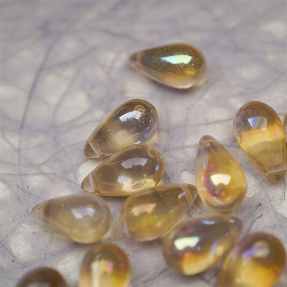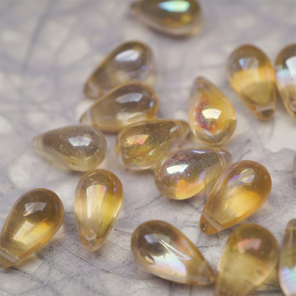 香槟透色幻彩极光彩色~复古大号水滴捷克珠玻璃琉璃珠 9X15MM