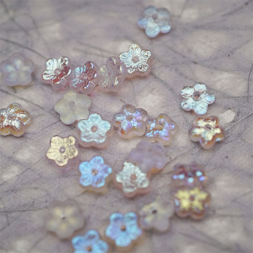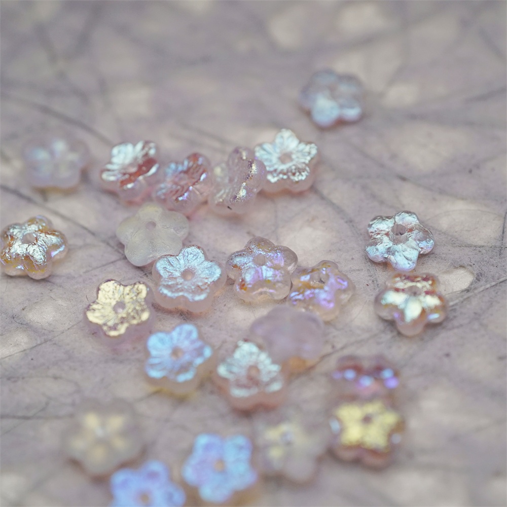 蚀刻浅透粉色极光幻彩~中孔迷你小花花五瓣花捷克珠玻璃珠琉璃 8MM