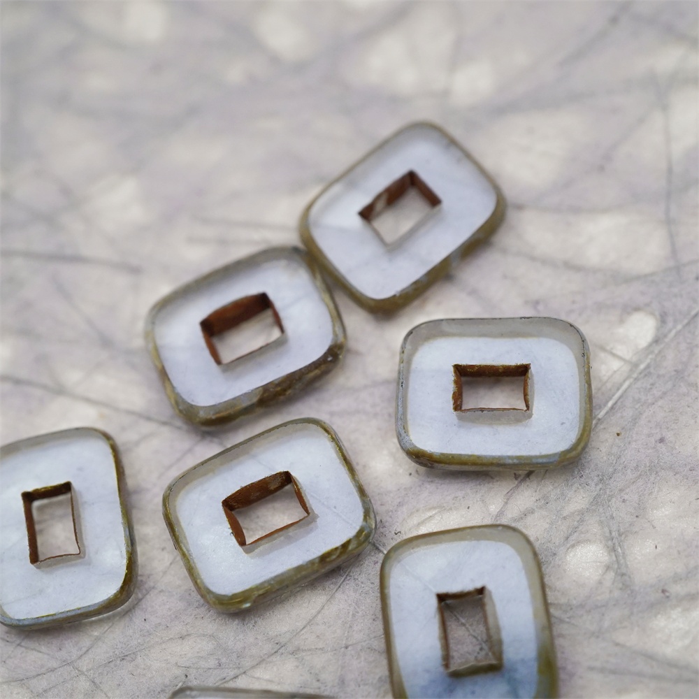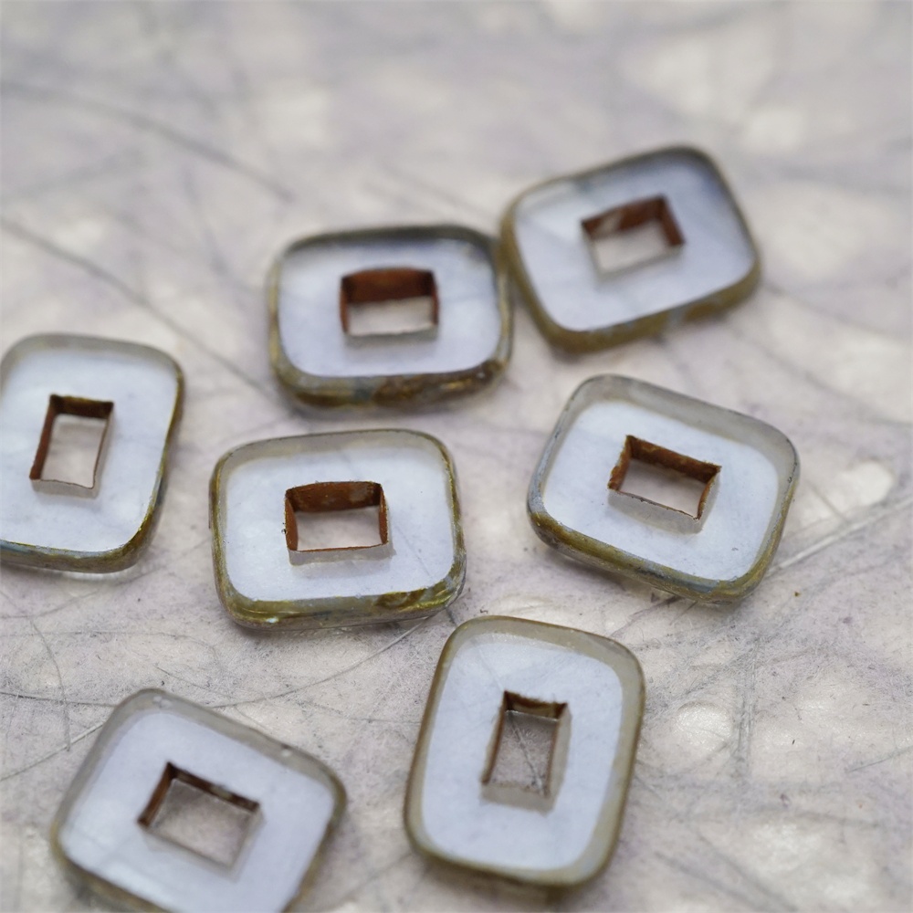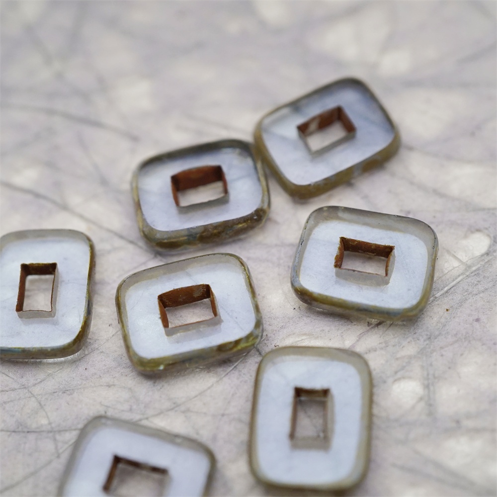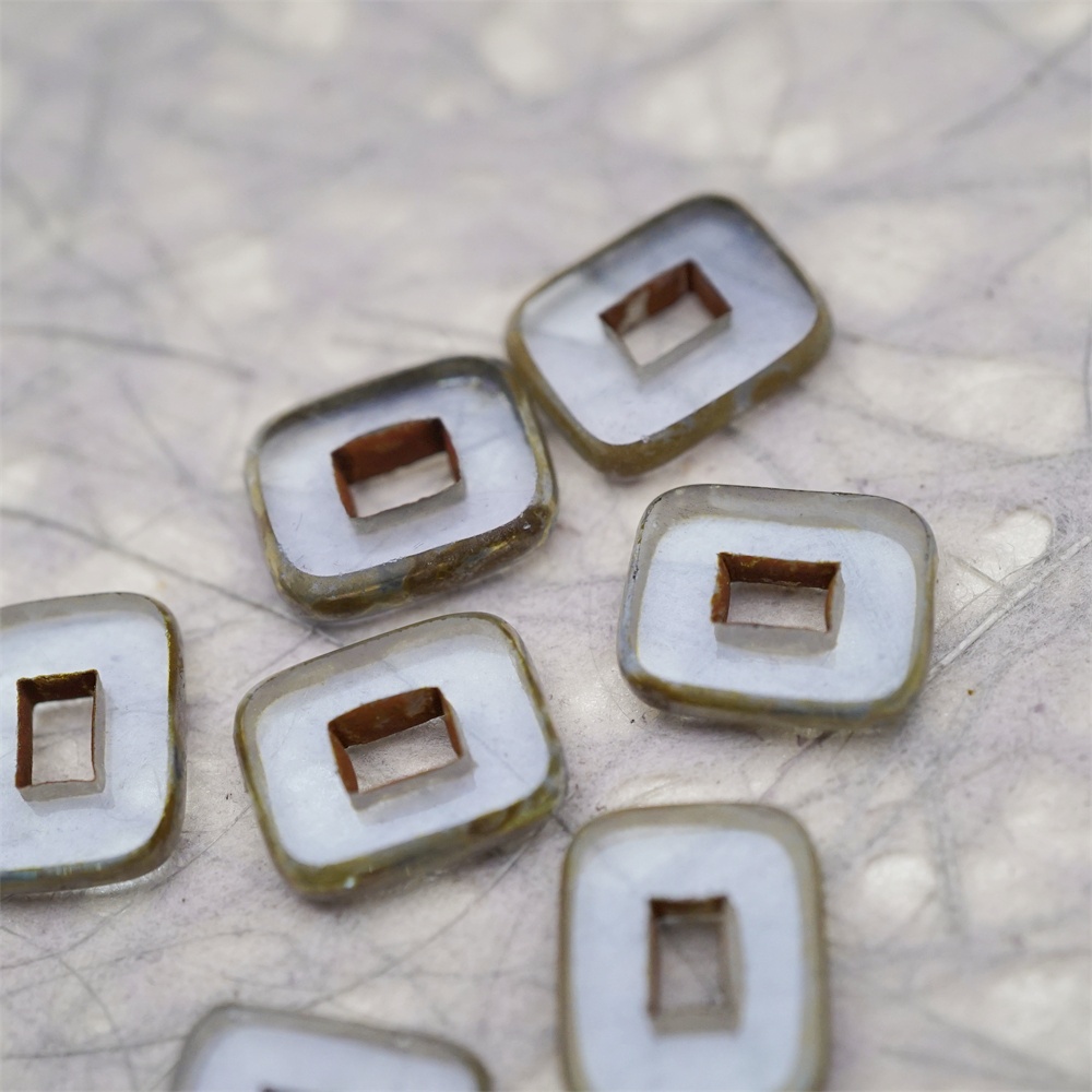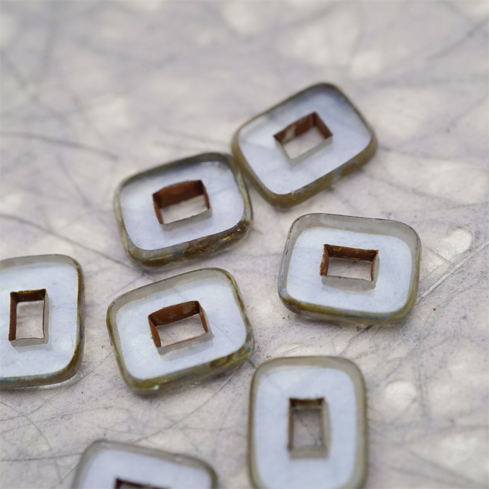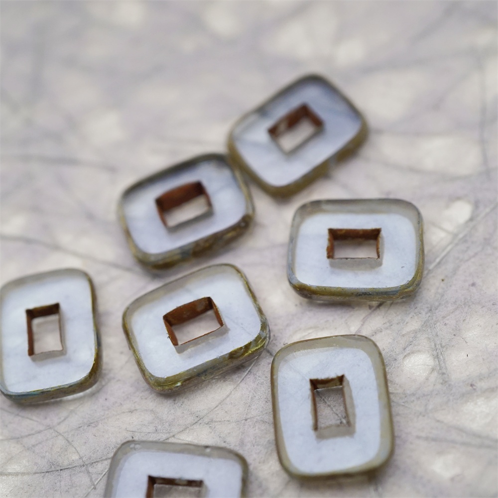 透雾霾蓝色做旧毕加索边边~空心方块长方形大孔平安扣型捷克珠玻璃琉璃珠 12X16MM