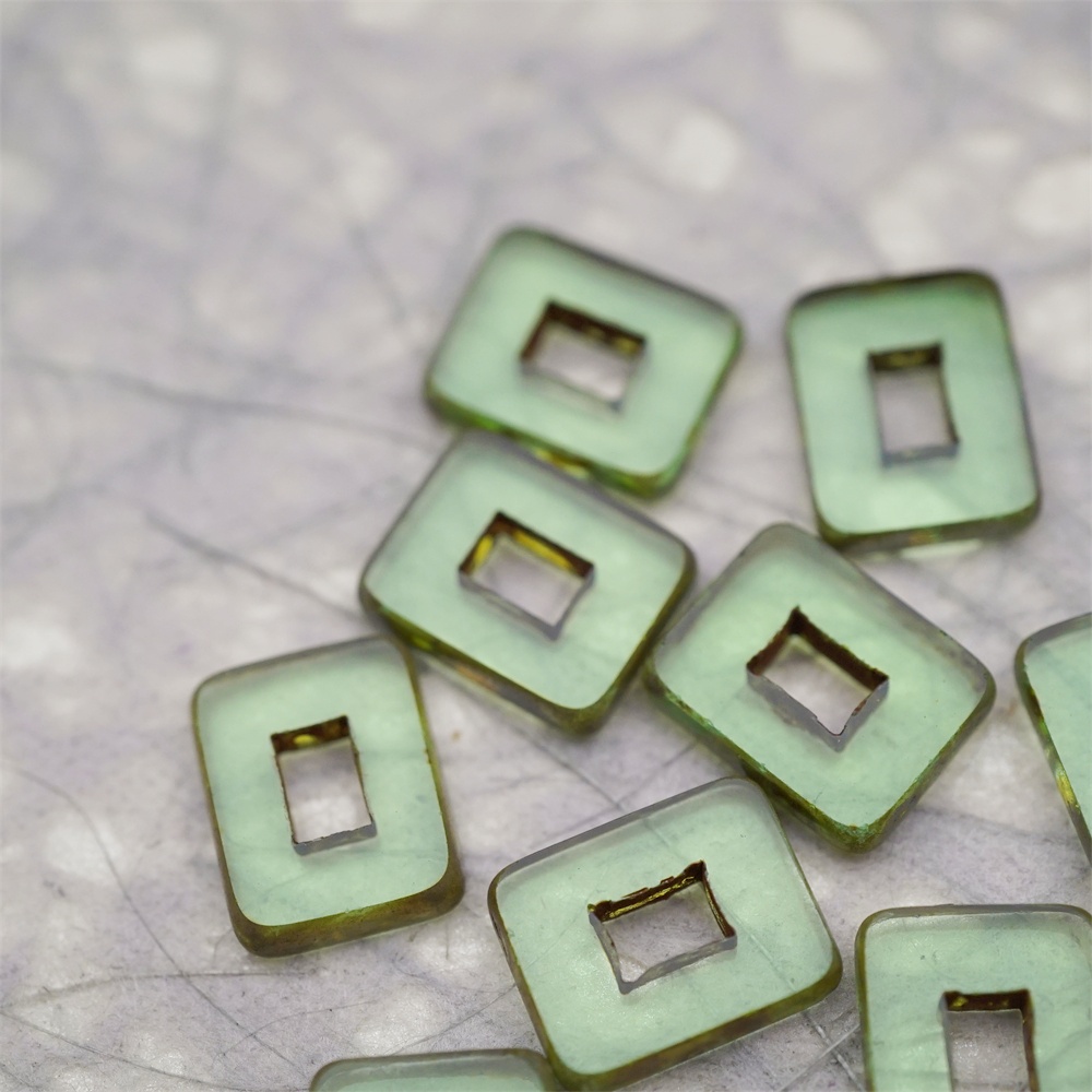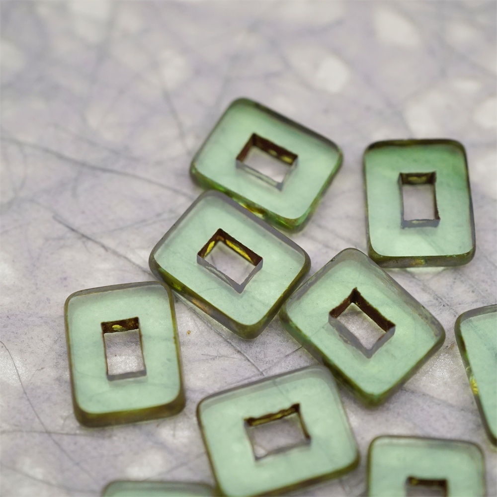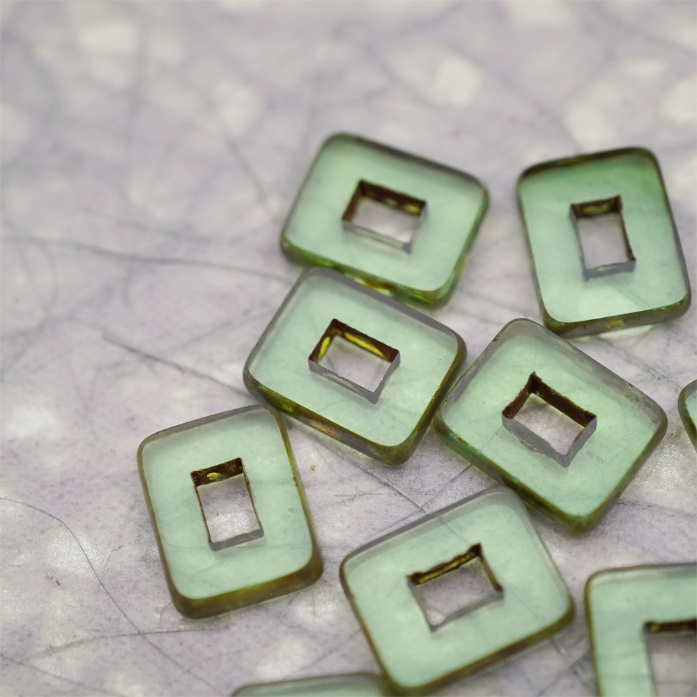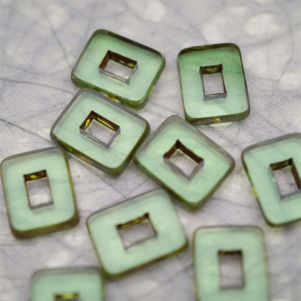 透水绿色做旧毕加索边边~空心方块长方形大孔平安扣型捷克珠玻璃琉璃珠 12X16MM