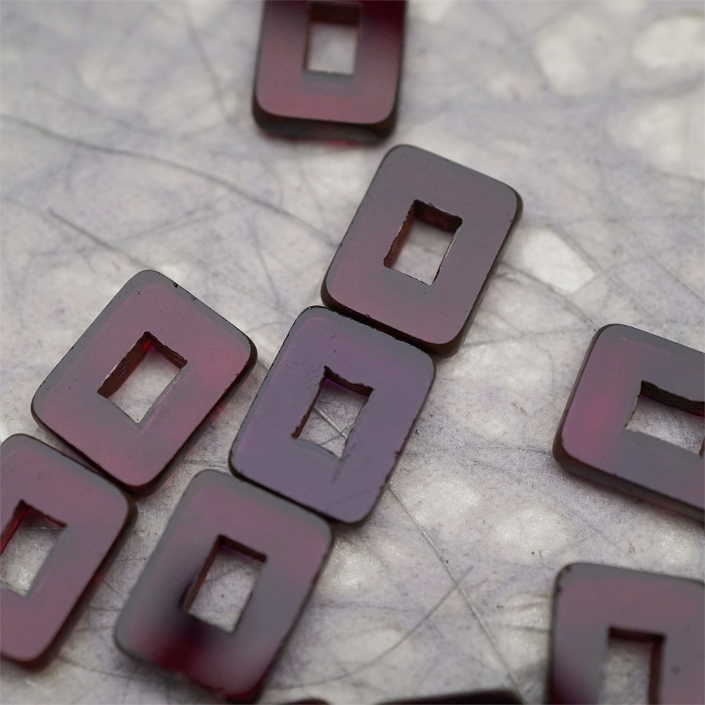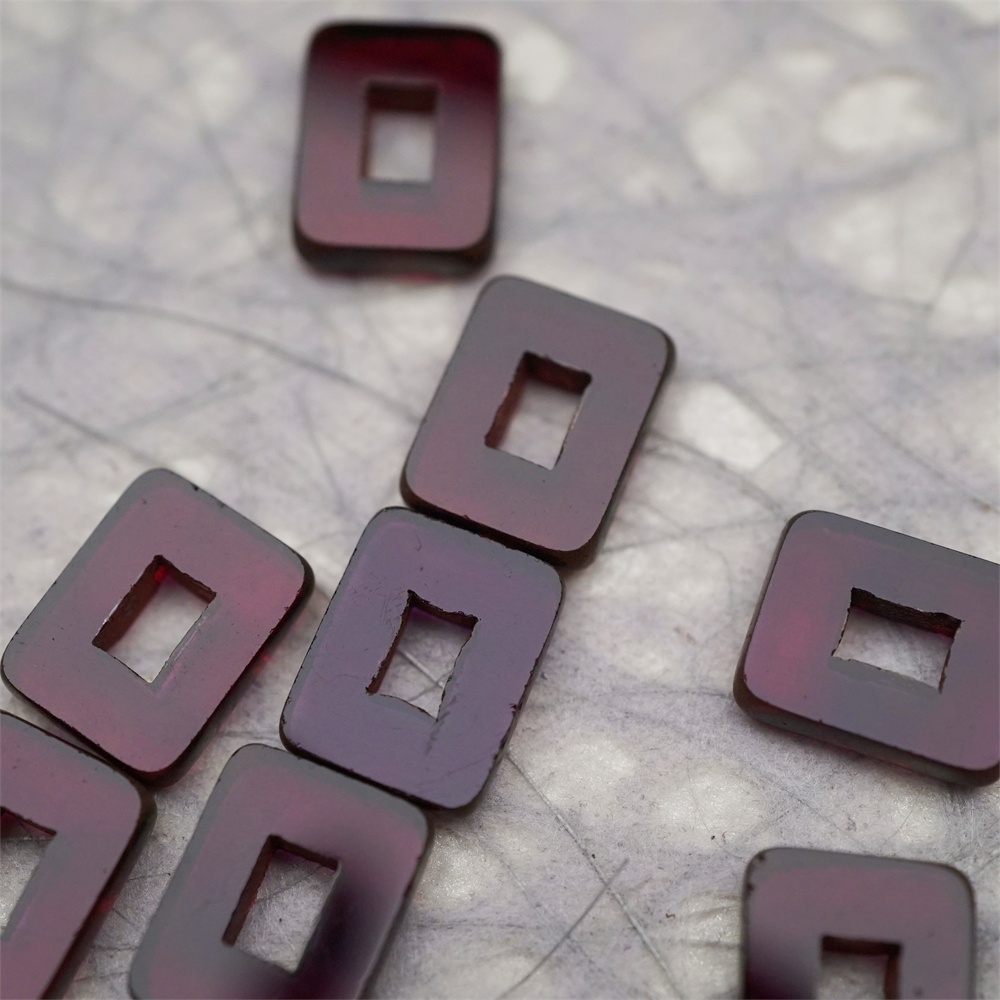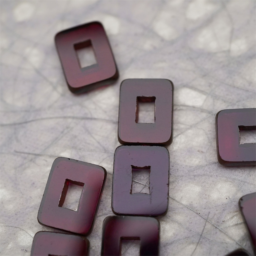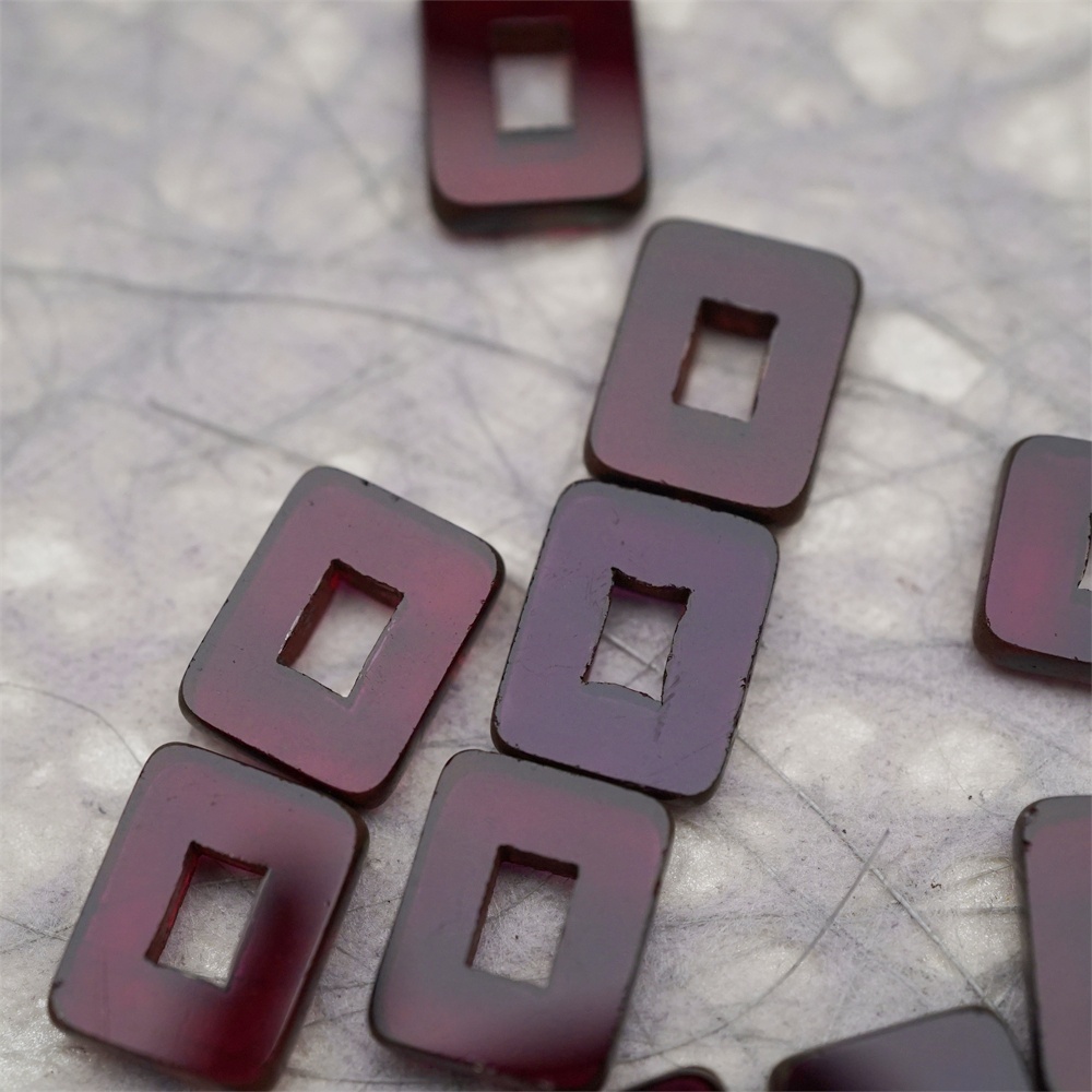 透深紫色做旧毕加索边边~空心方块长方形大孔平安扣型捷克珠玻璃琉璃珠 12X16MM