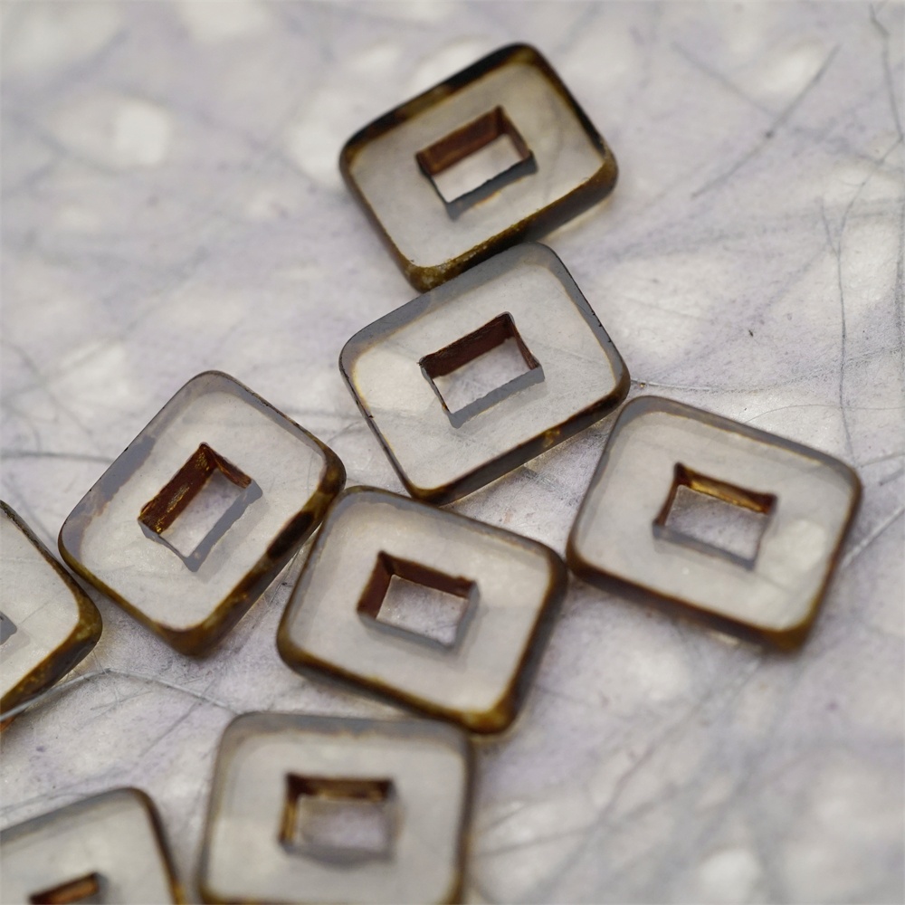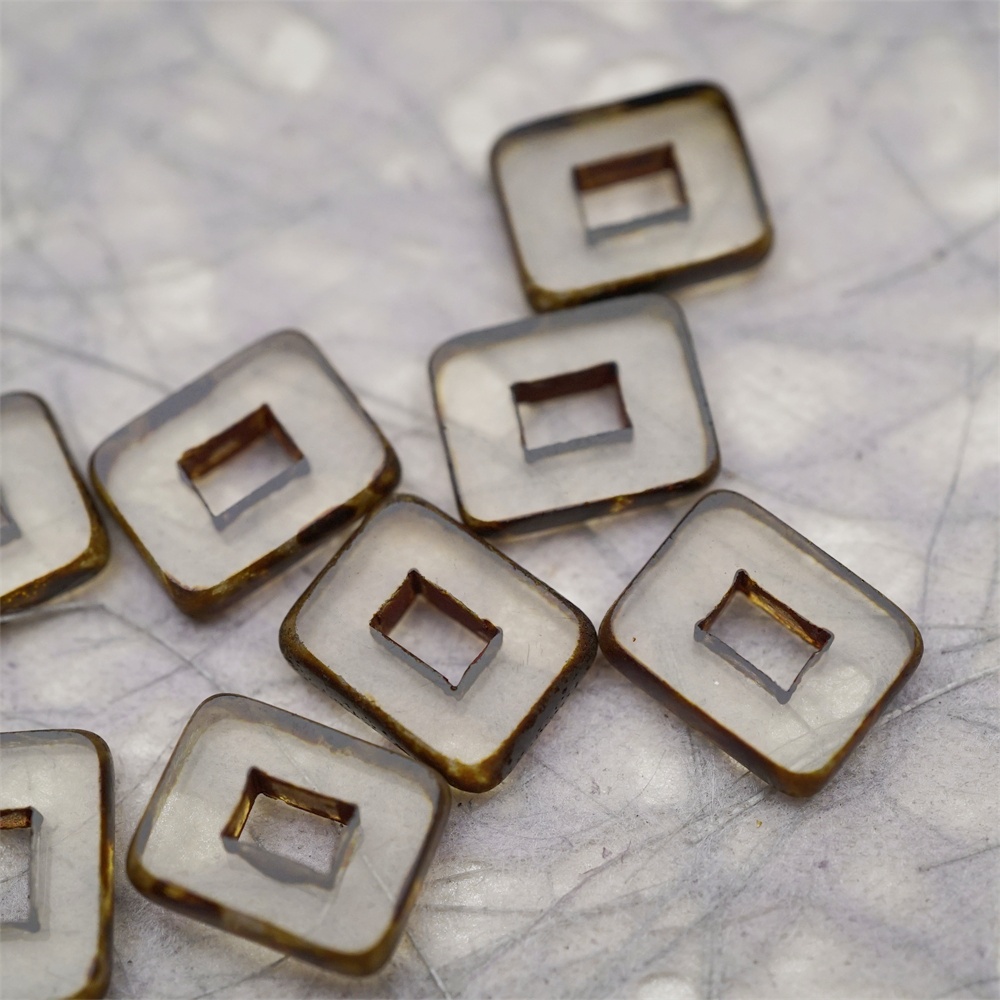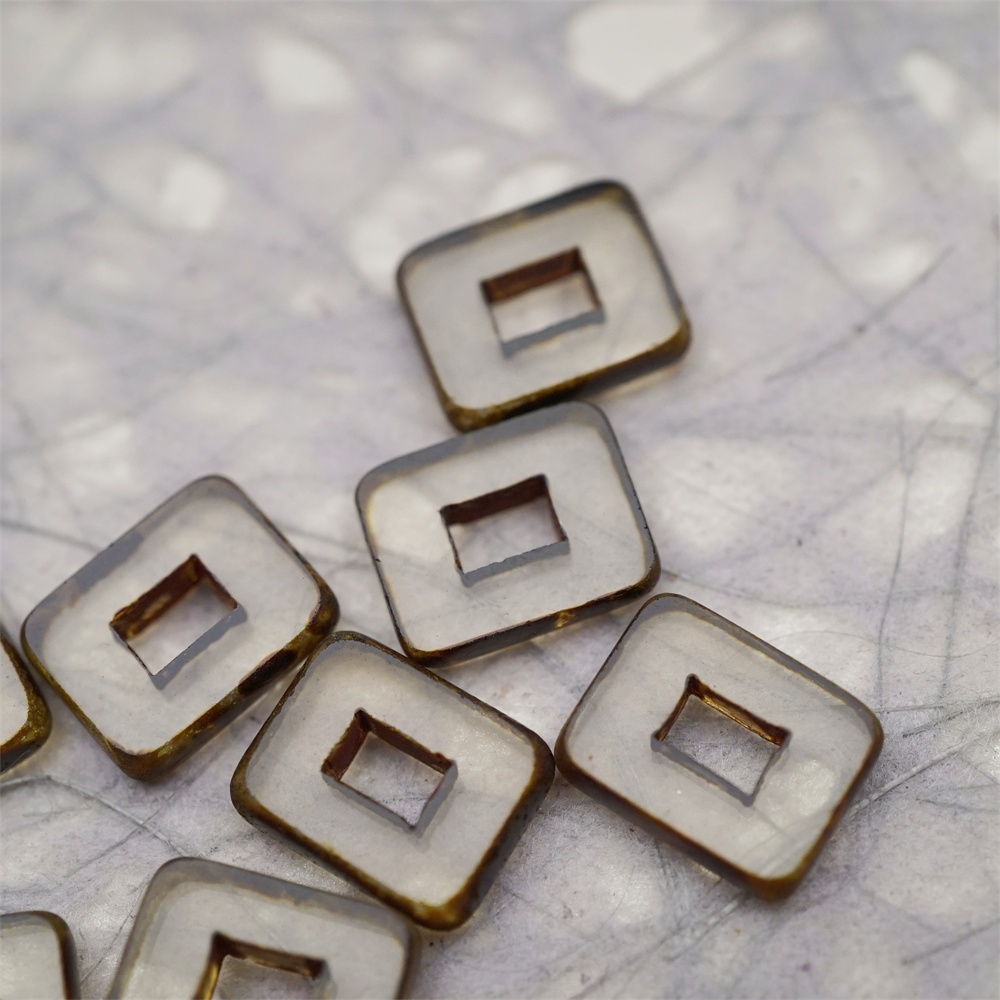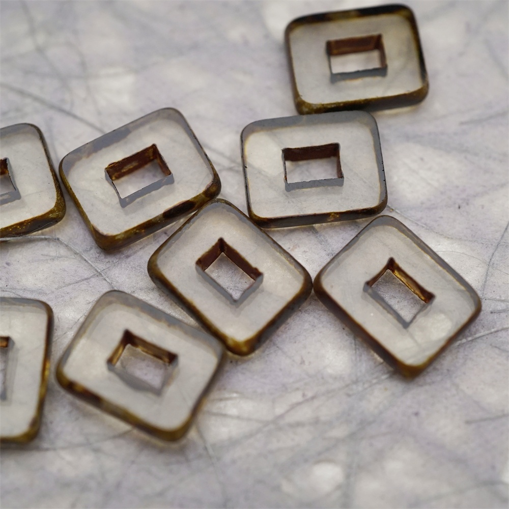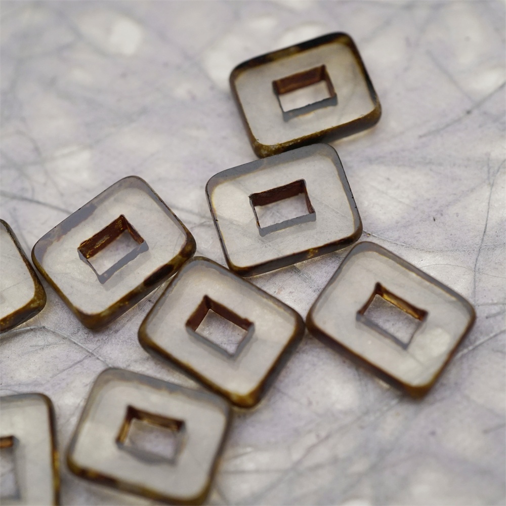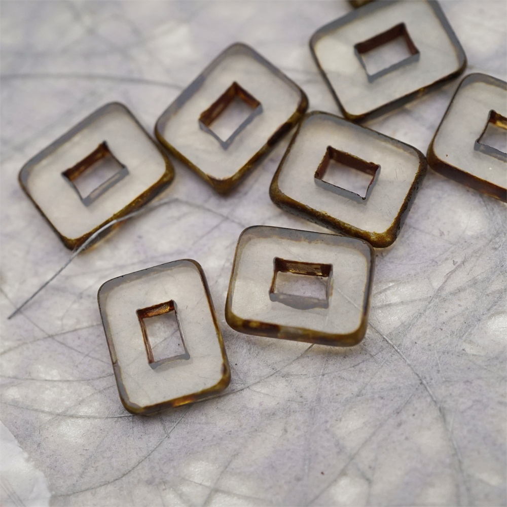 透明灰色做旧毕加索边边~空心方块长方形大孔平安扣型捷克珠玻璃琉璃珠 12X16MM