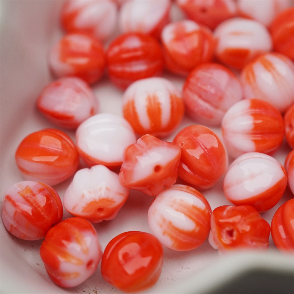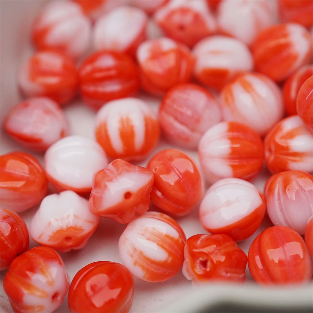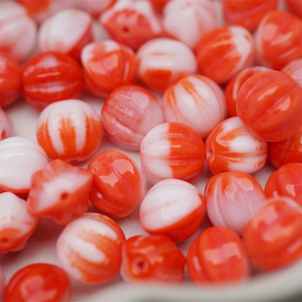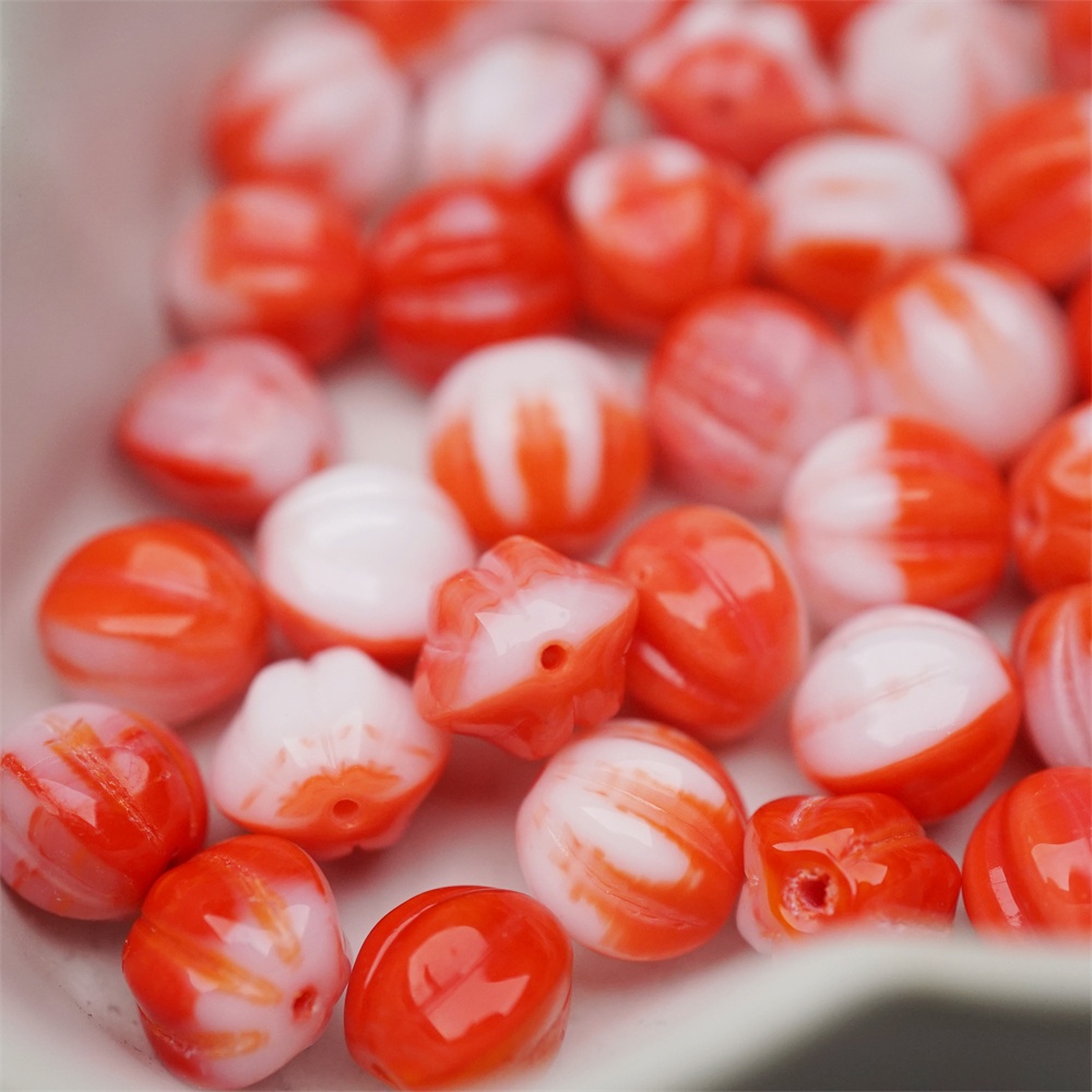 红白色彩感mix渐变~常规捷克珠南瓜珠玻璃琉璃珠串珠材料 10MM