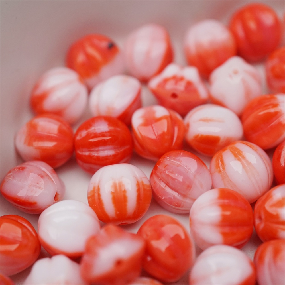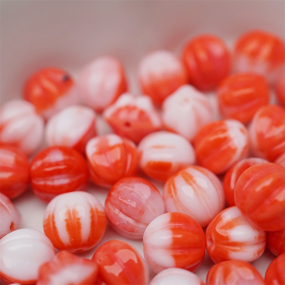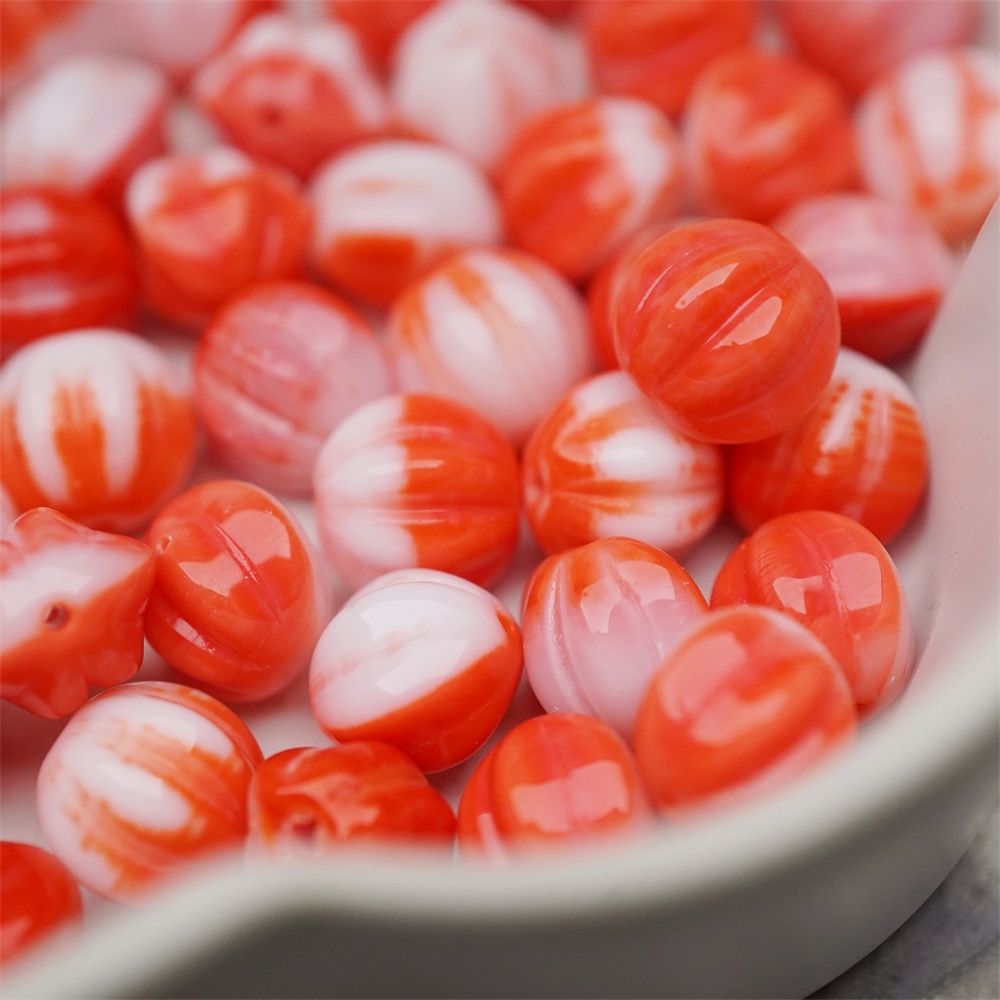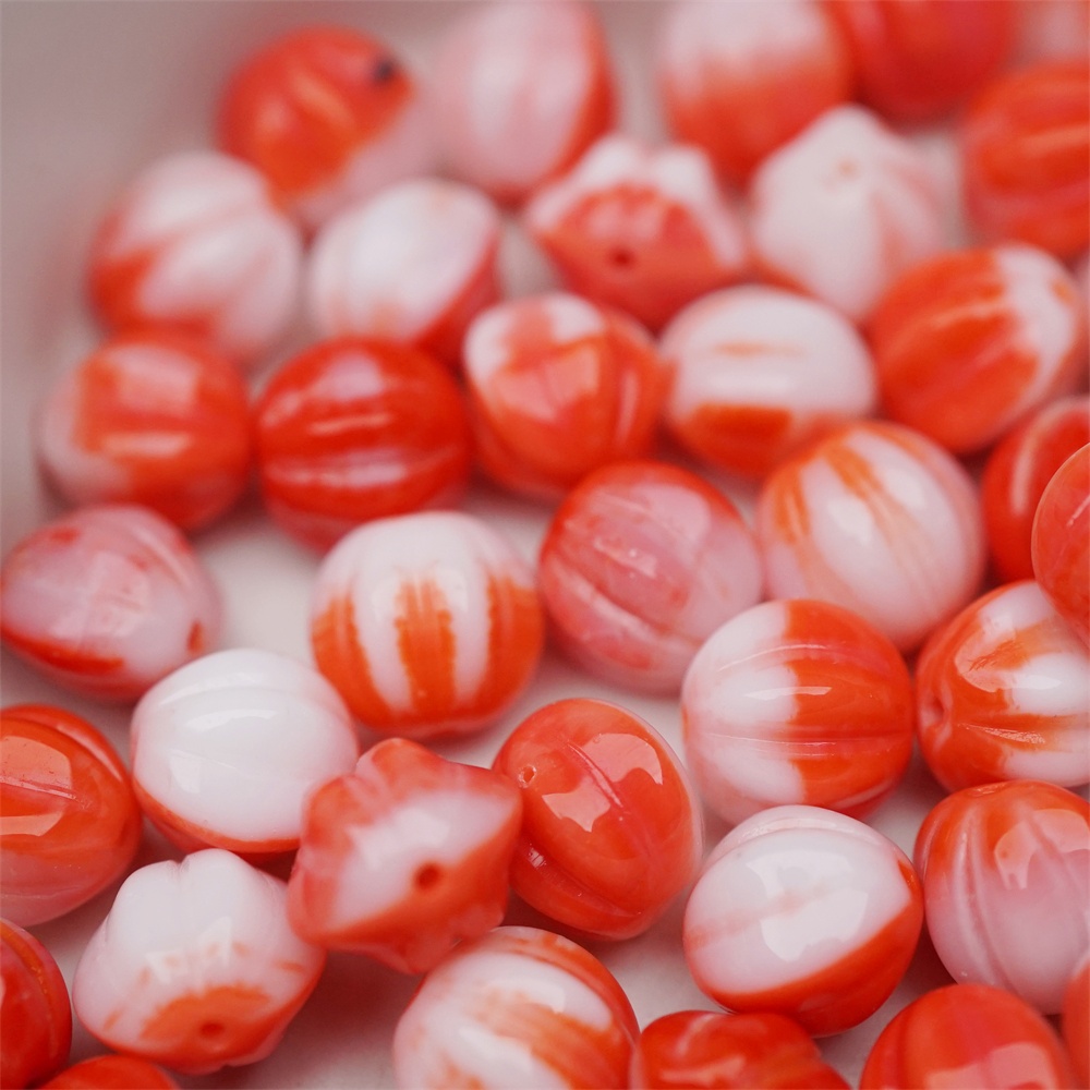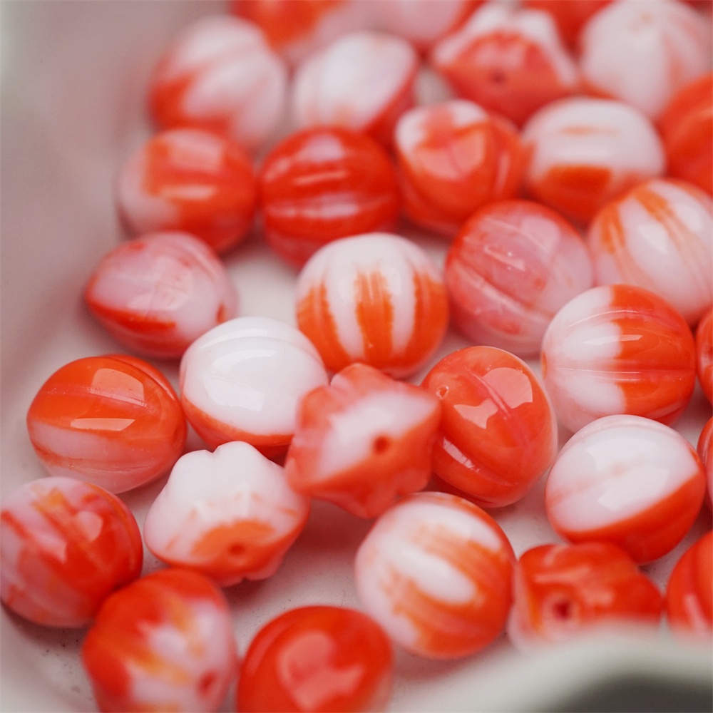 红白色彩感mix渐变~常规捷克珠南瓜珠玻璃琉璃珠串珠材料 10MM