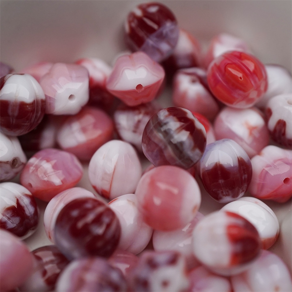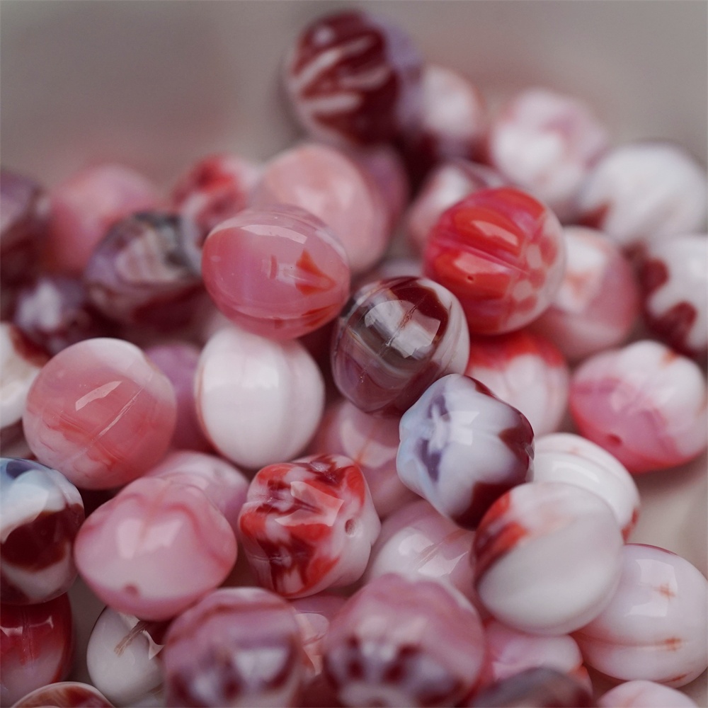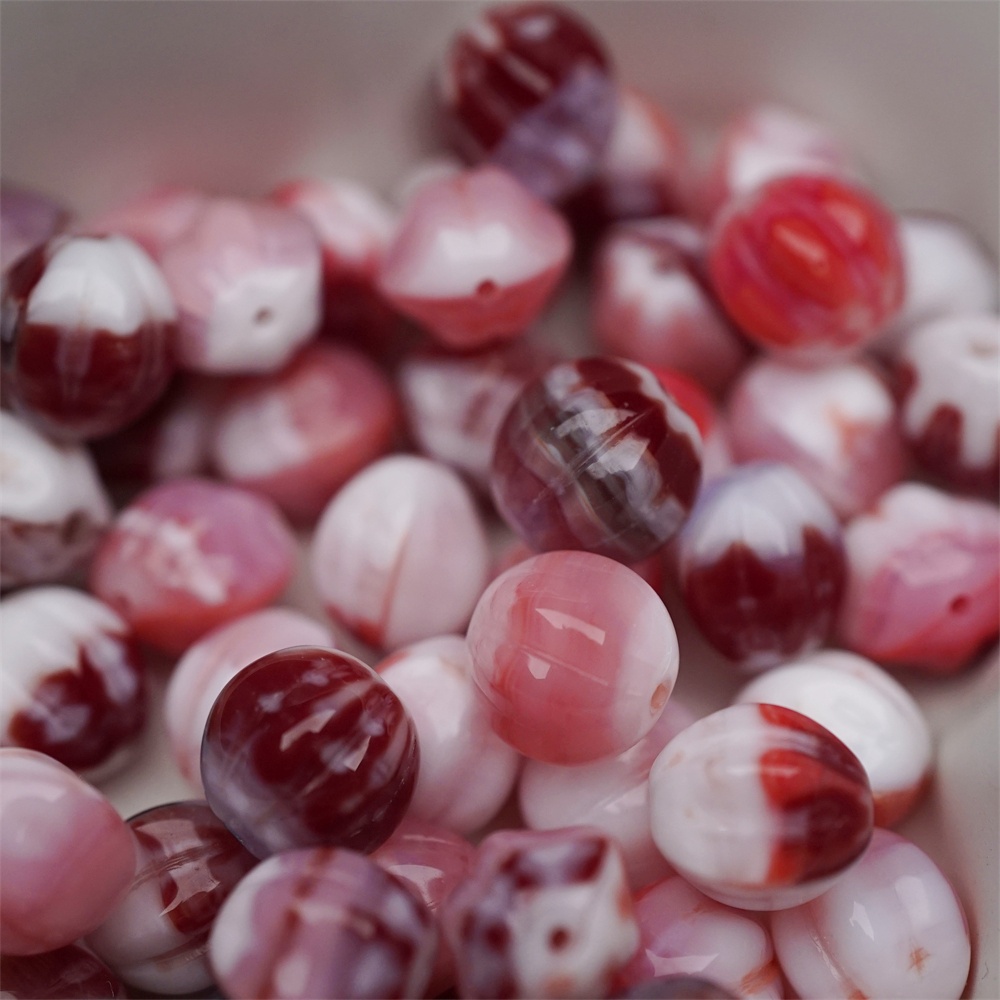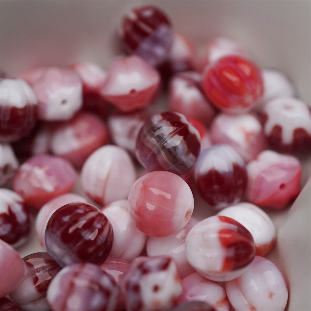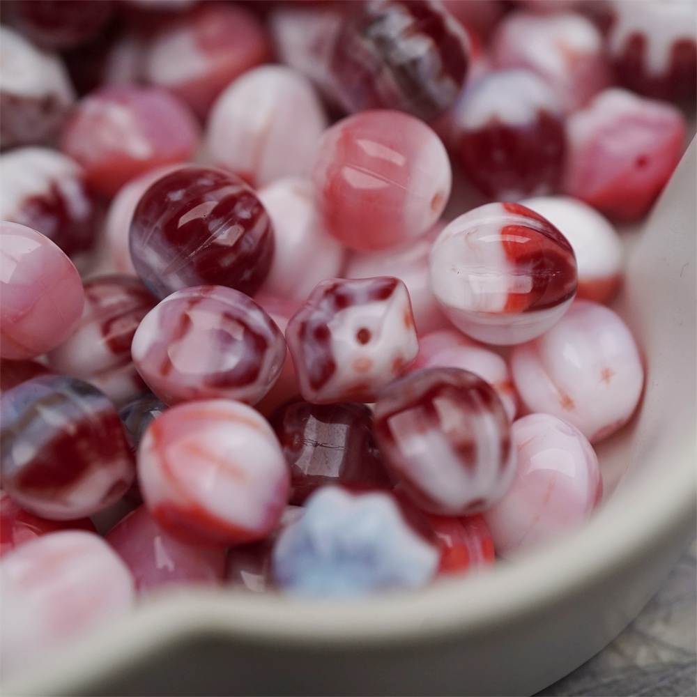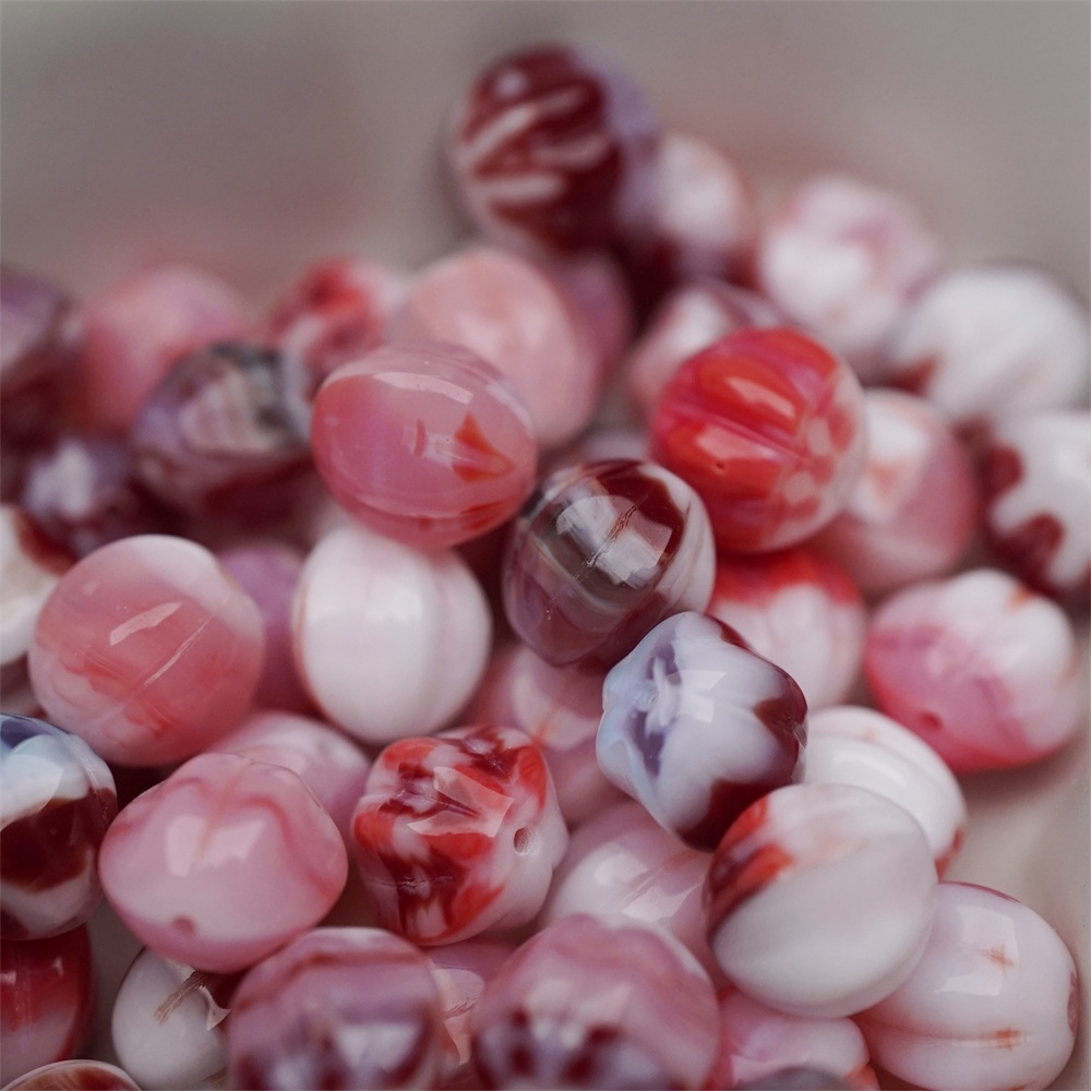 粉色深红色mix感mix渐变~常规捷克珠南瓜珠玻璃琉璃珠串珠材料 10MM