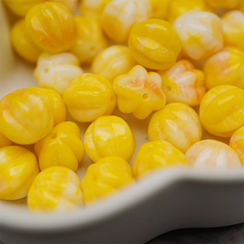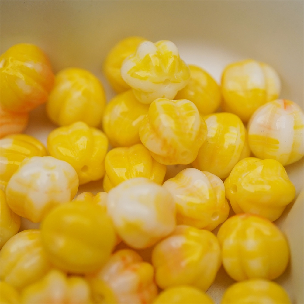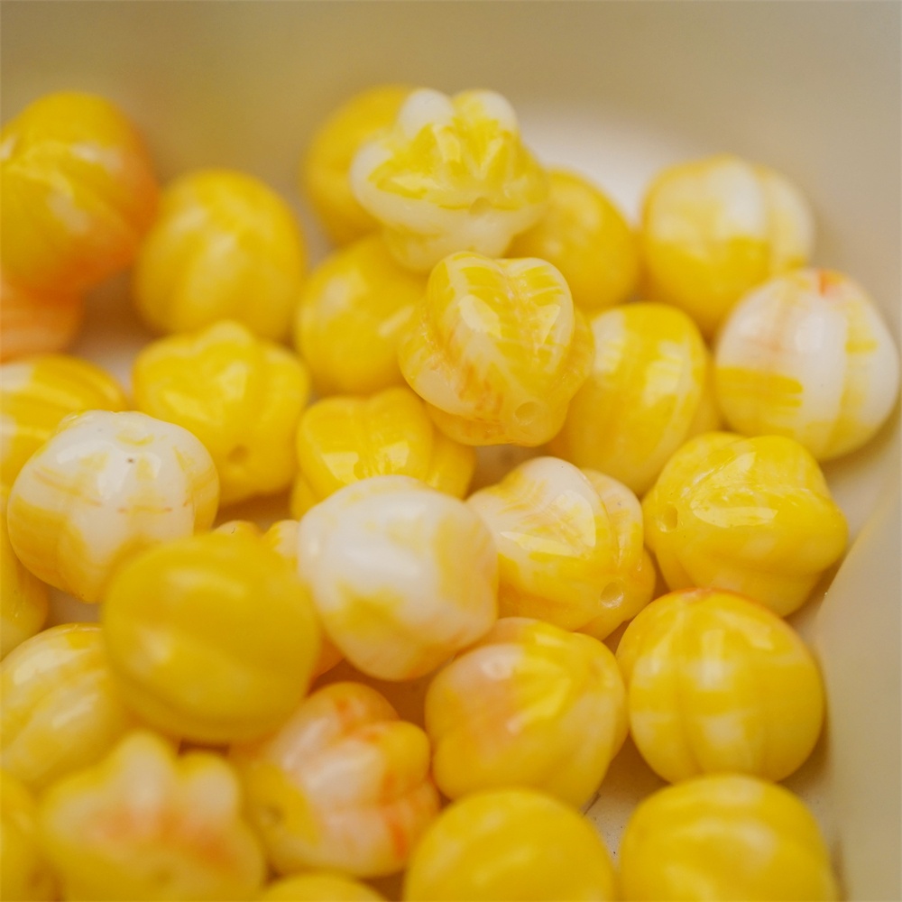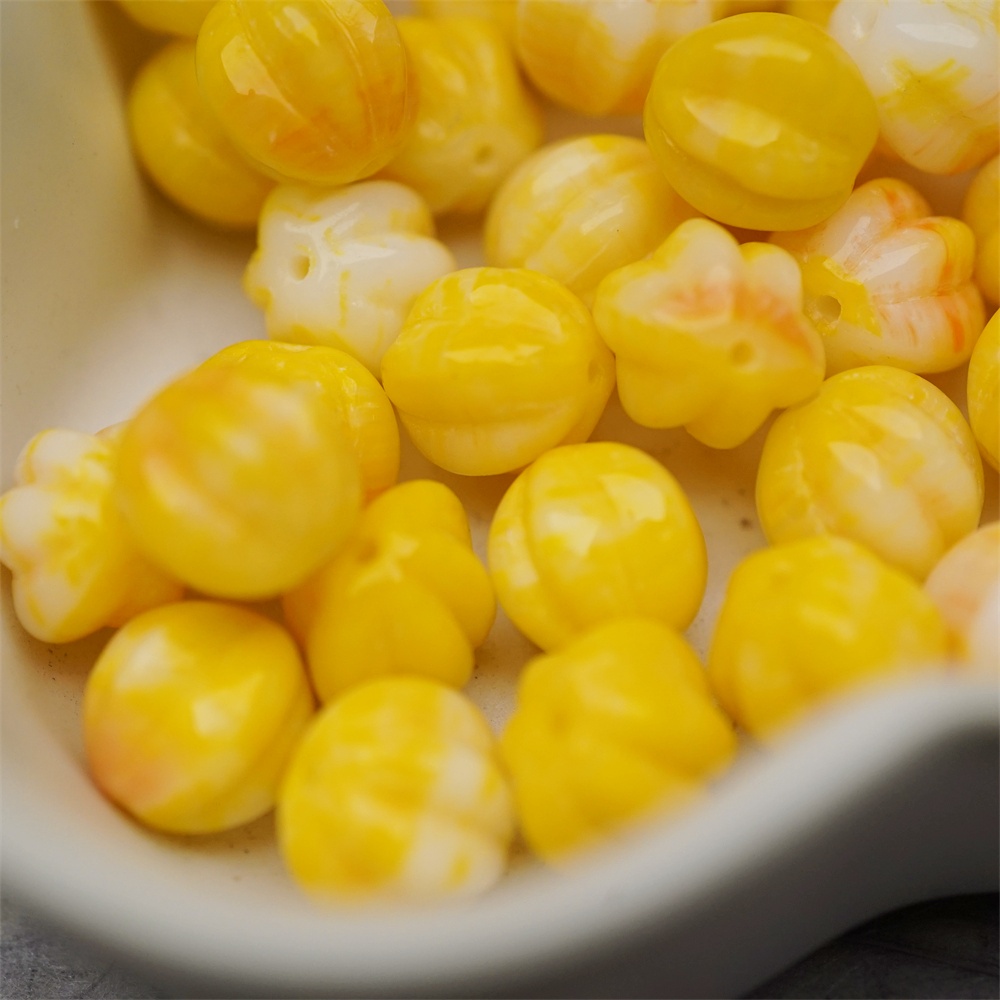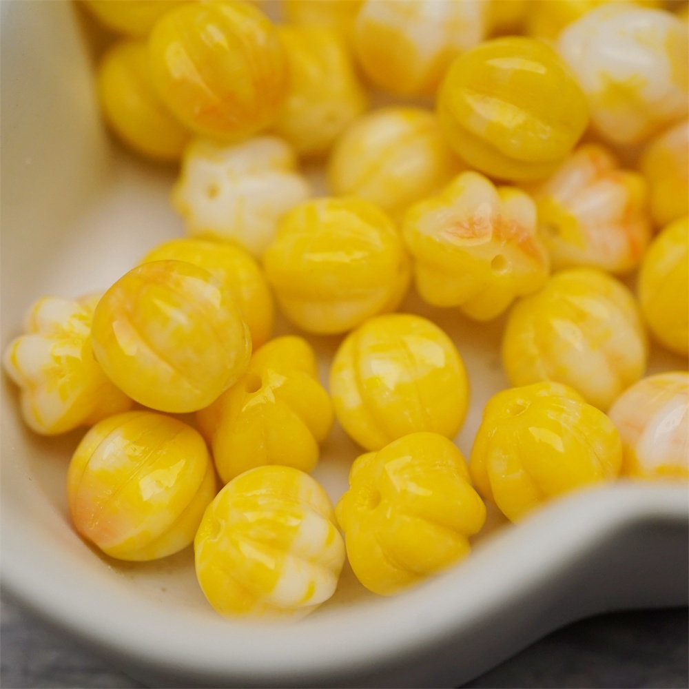 鸡蛋黄橘色系色彩感mix渐变~常规捷克珠南瓜珠玻璃琉璃珠串珠材料 10MM