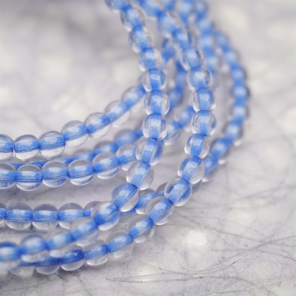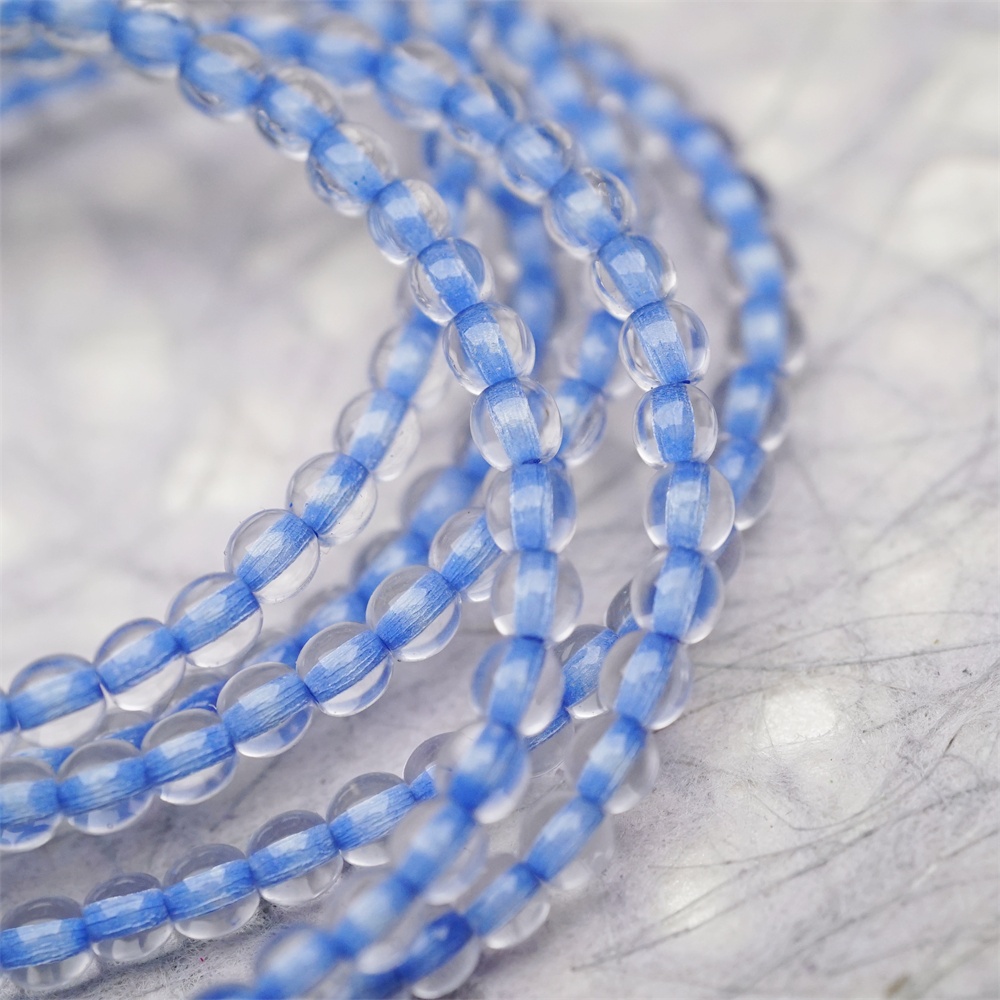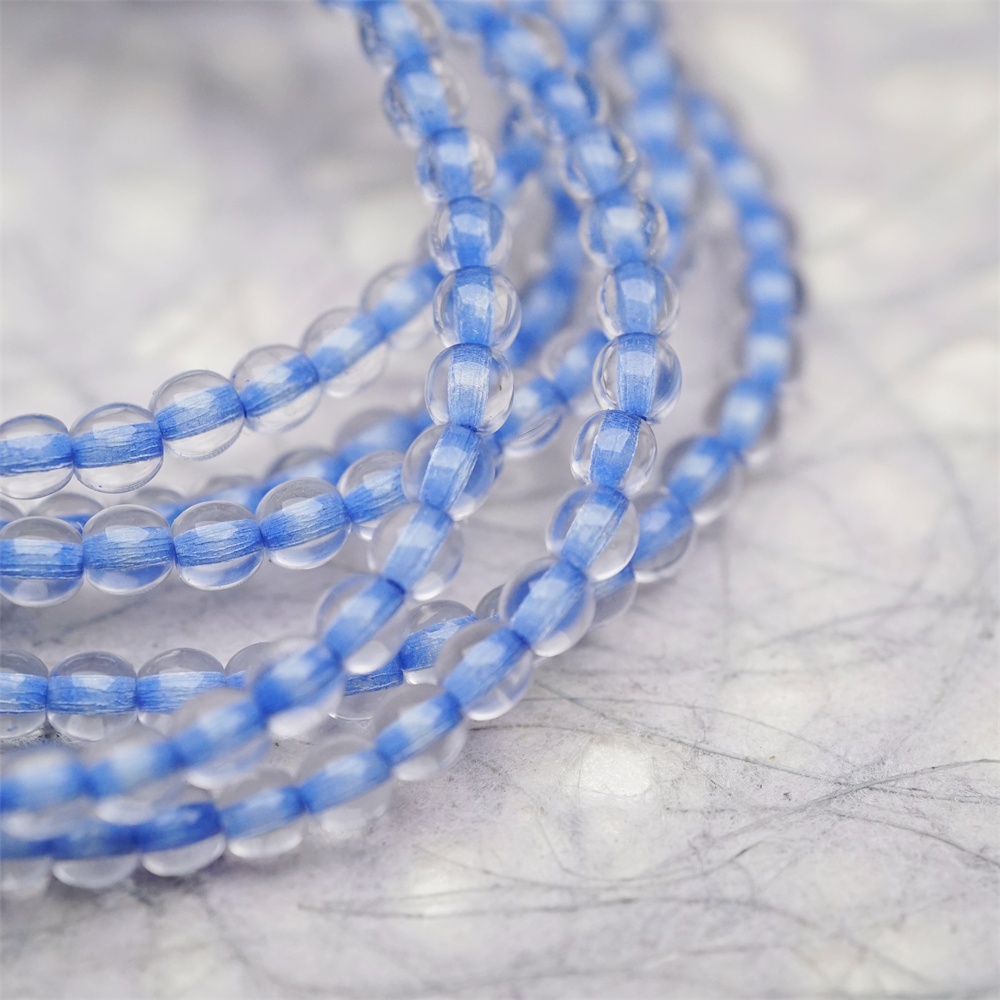 串装~透明染芯蓝色~迷你小圆珠捷克珠玻璃琉璃珠 4MM