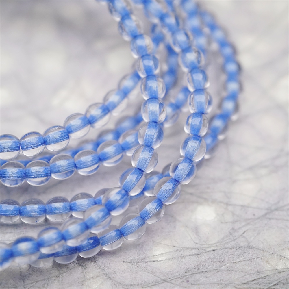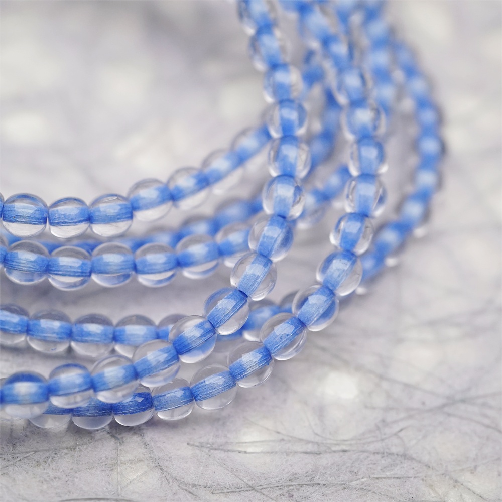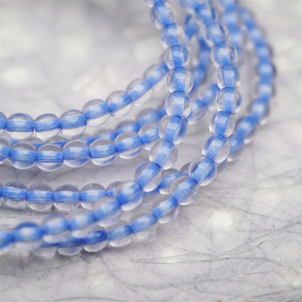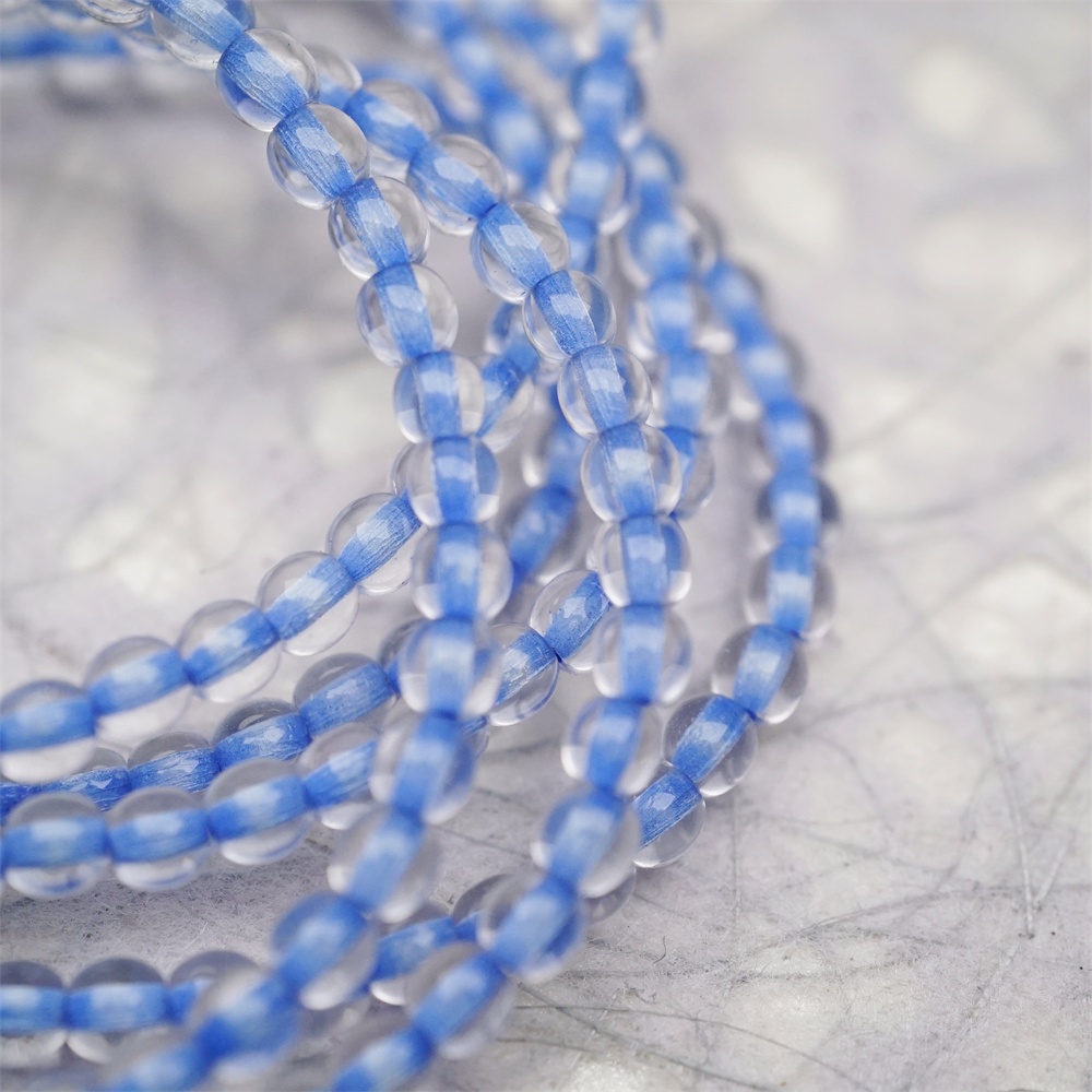 串装~透明染芯蓝色~迷你小圆珠捷克珠玻璃琉璃珠 4MM