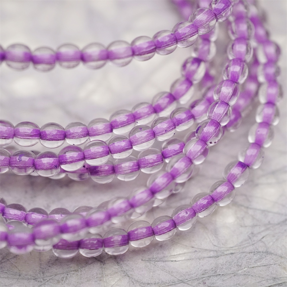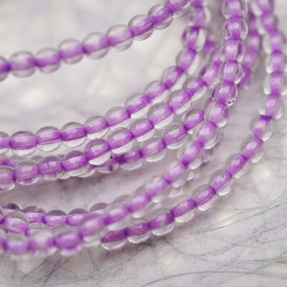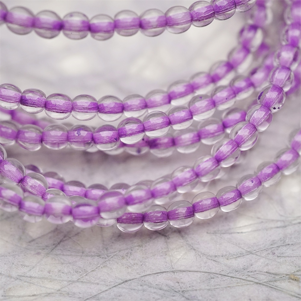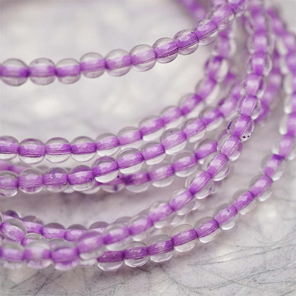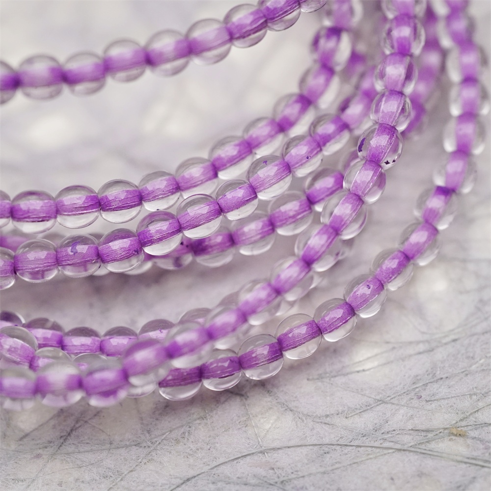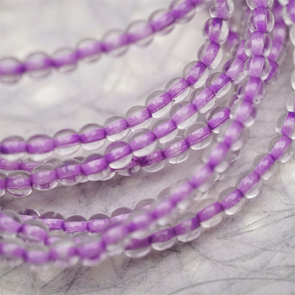 串装~透明染芯紫色~迷你小圆珠捷克珠玻璃琉璃珠 4MM