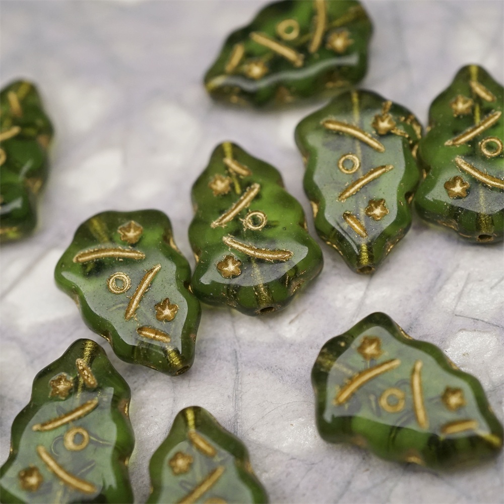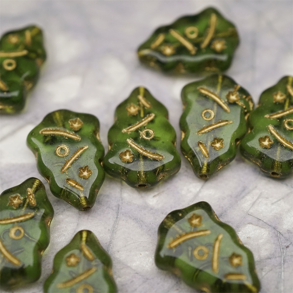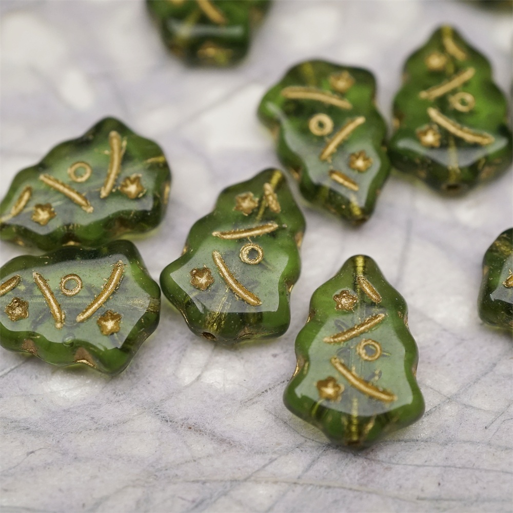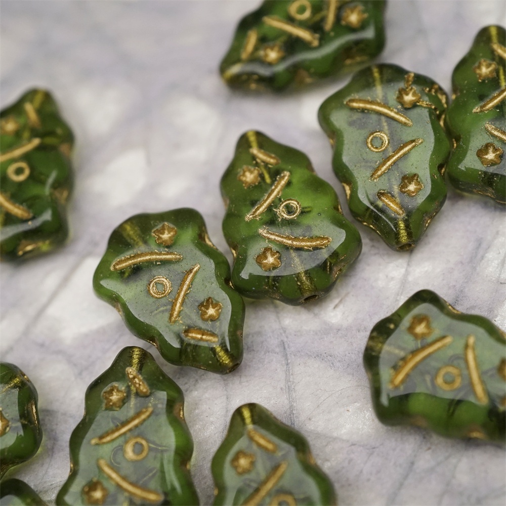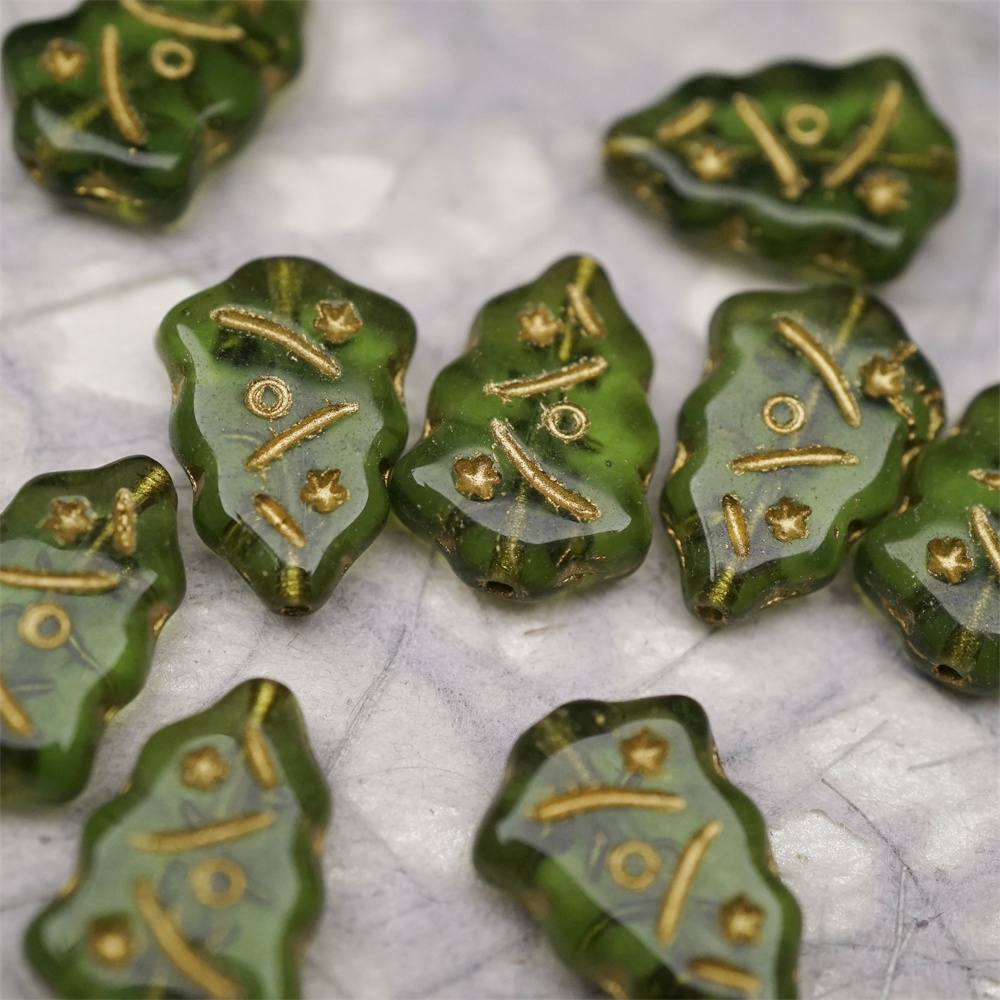 透明橄榄绿描金色~圣诞树捷克珠玻璃琉璃珠17X12MM