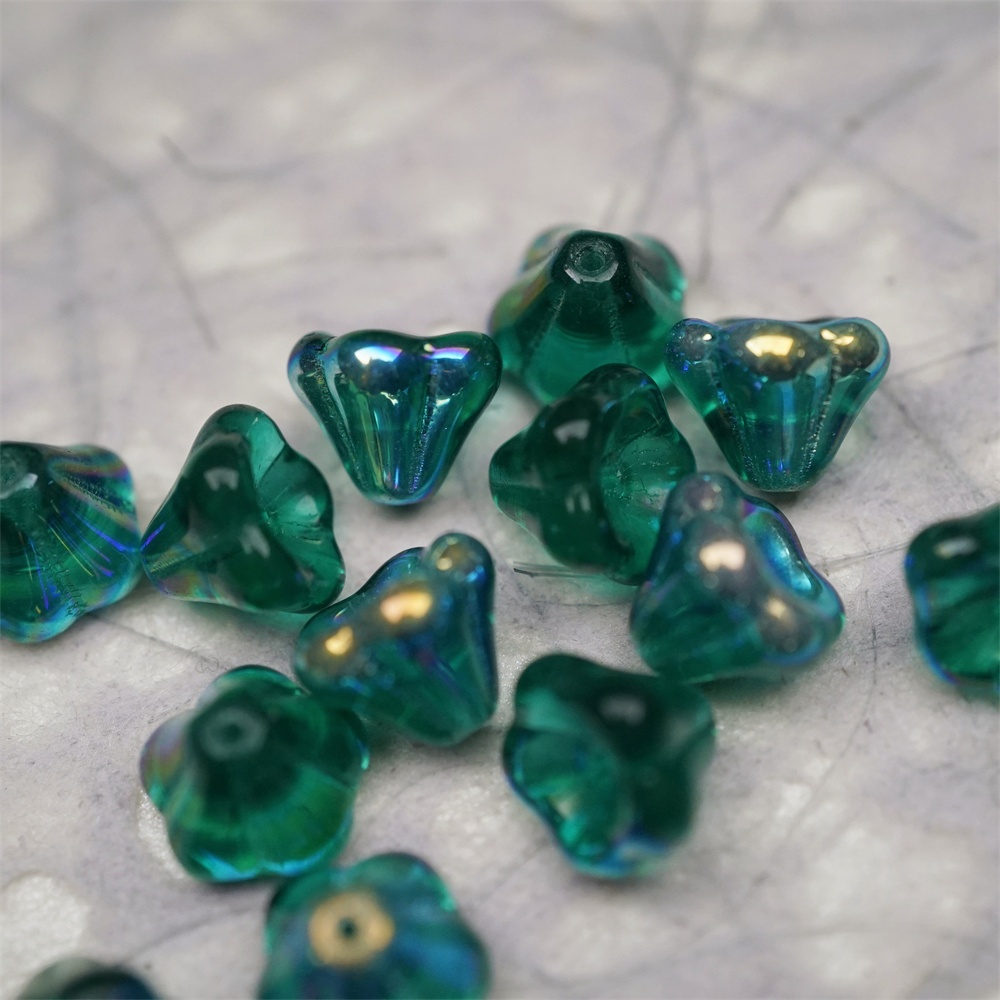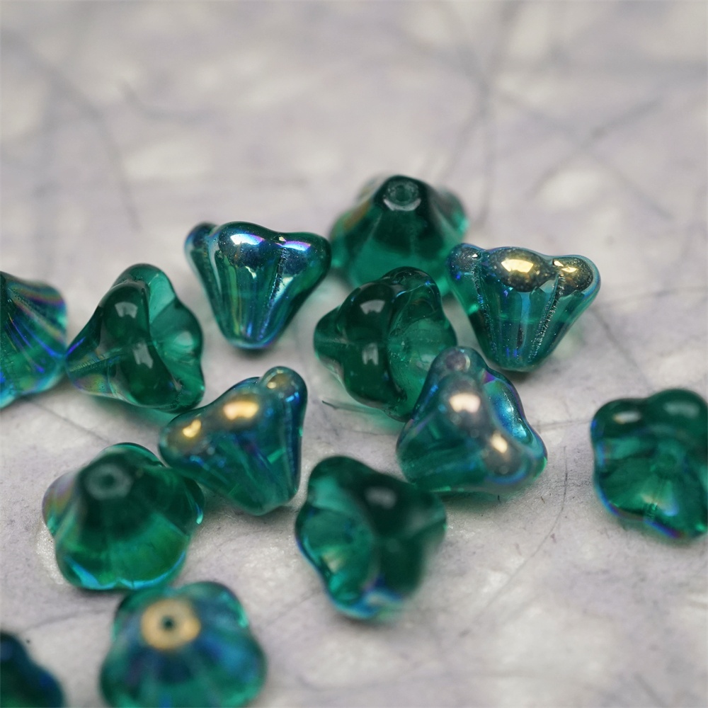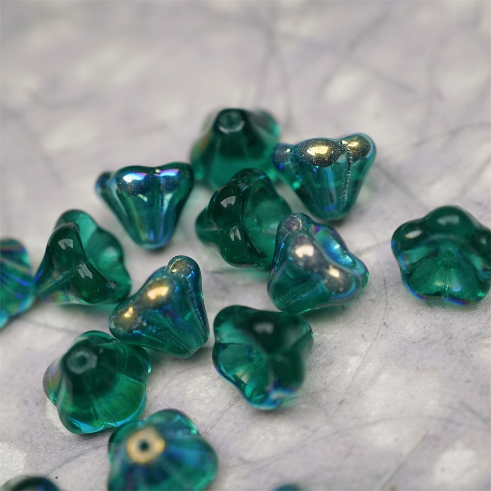圣诞树绿极光彩~莲雾捷克珠玻璃珠琉璃小花喇叭花 8X10MM