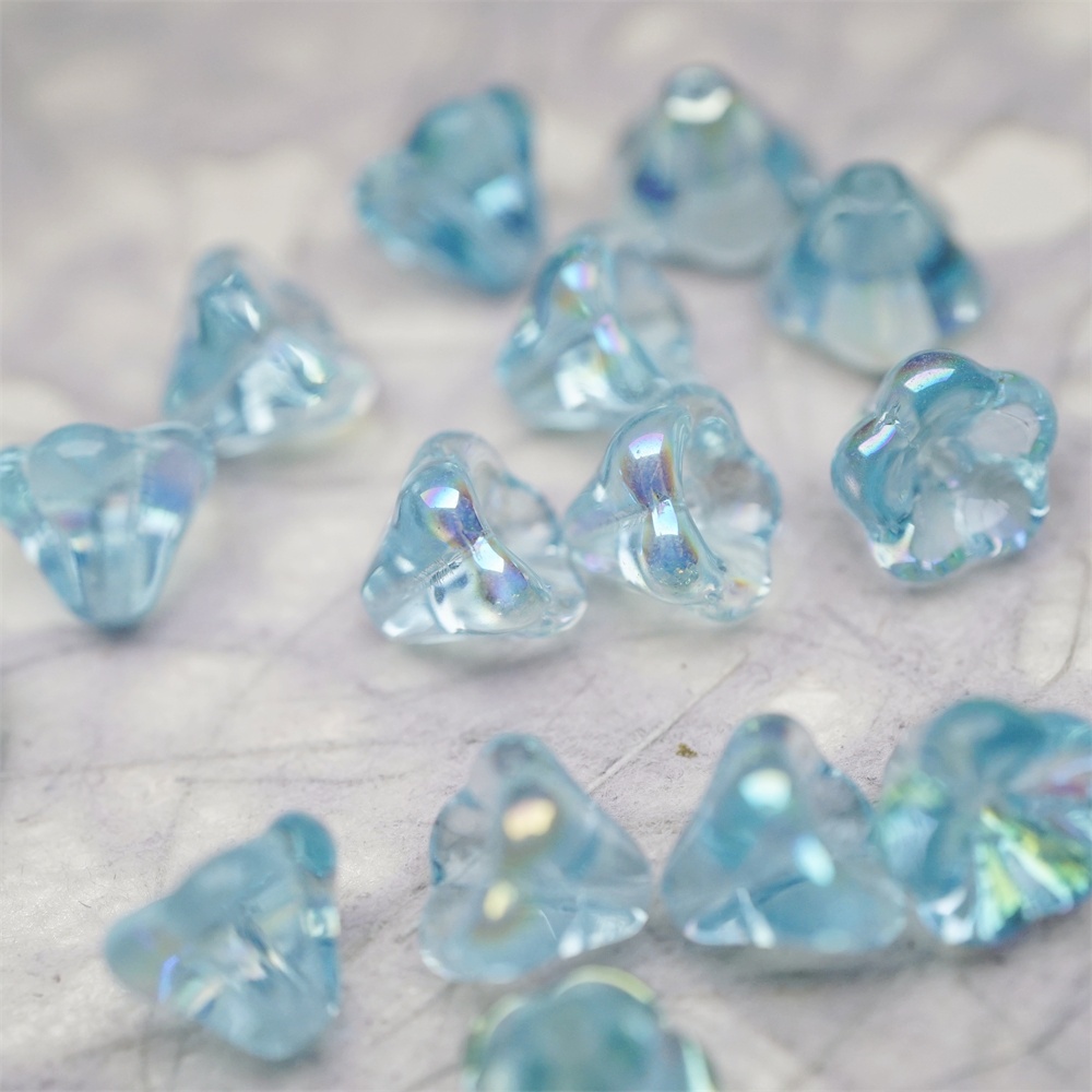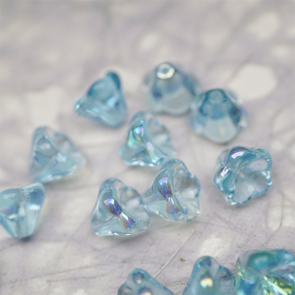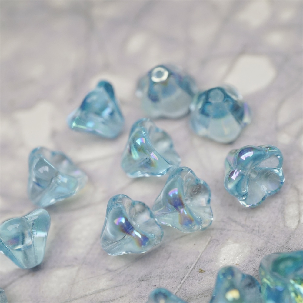 透感水色蓝极光彩~莲雾捷克珠玻璃珠琉璃小花喇叭花 8X10MM