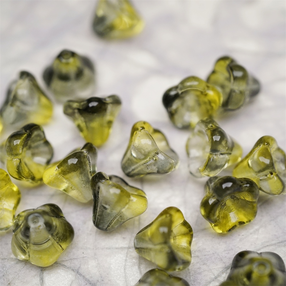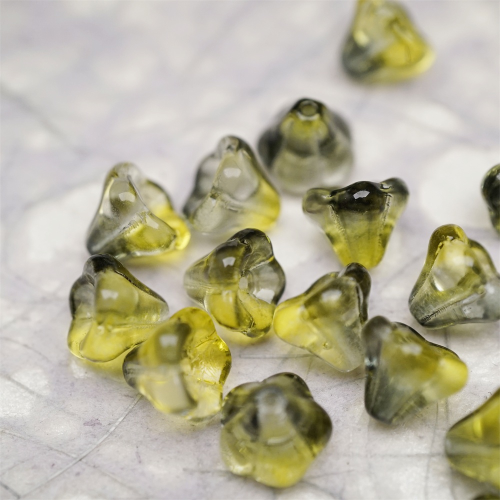 透感水彩水墨黄晕染渐变~莲雾捷克珠玻璃珠琉璃小花喇叭花 8X10MM