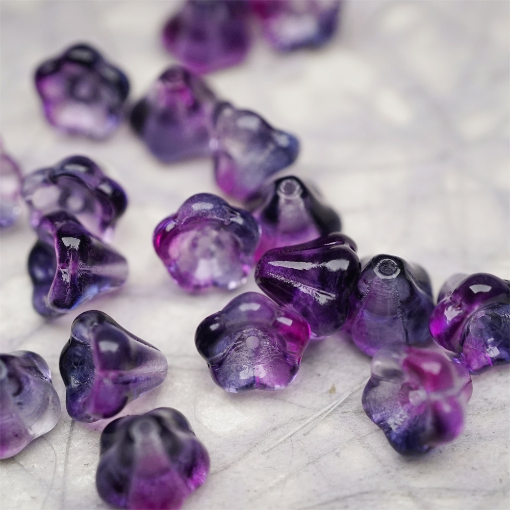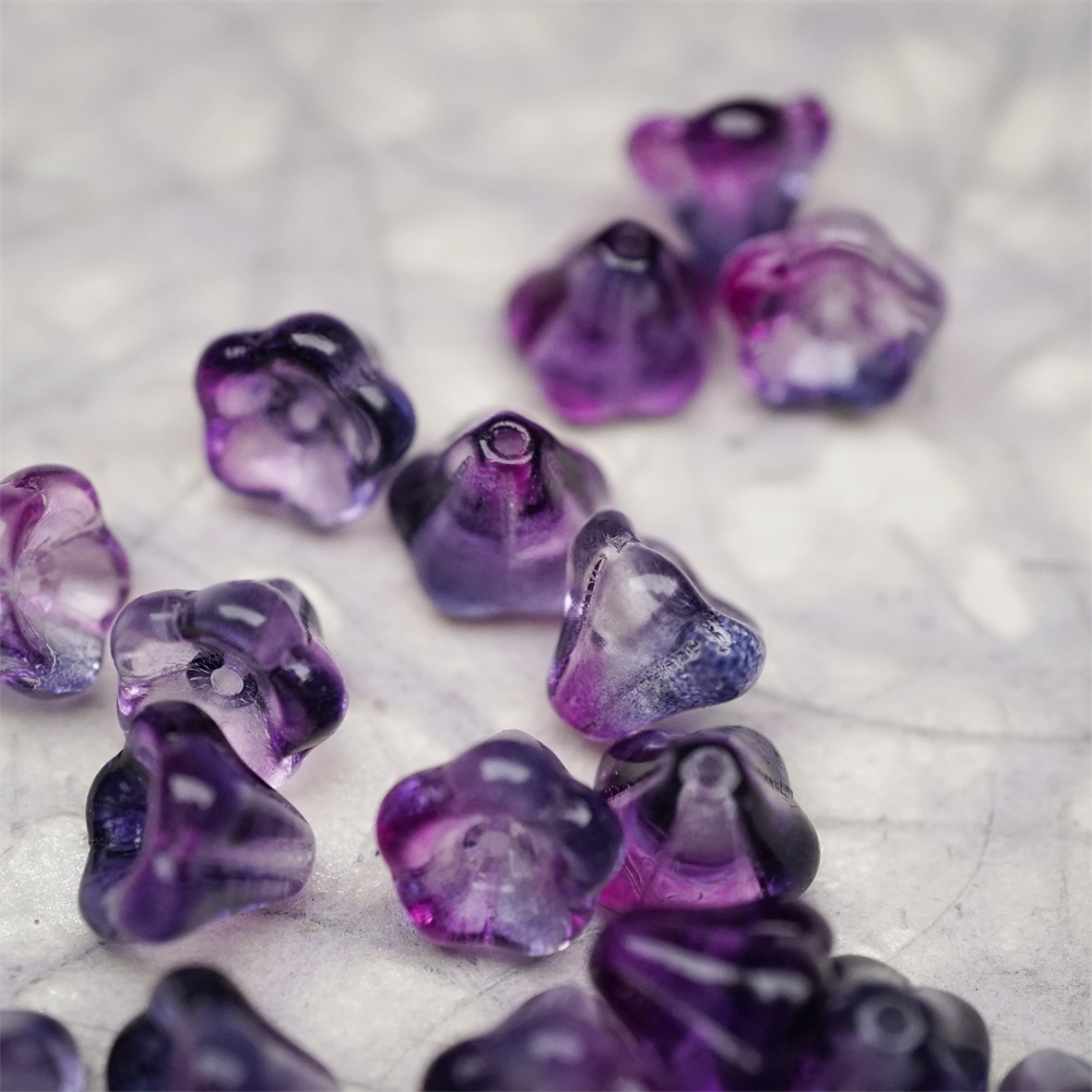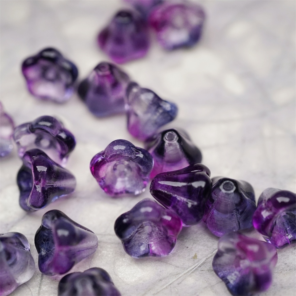 透感紫色系水彩感~莲雾捷克珠玻璃珠琉璃小花喇叭花 8X10MM