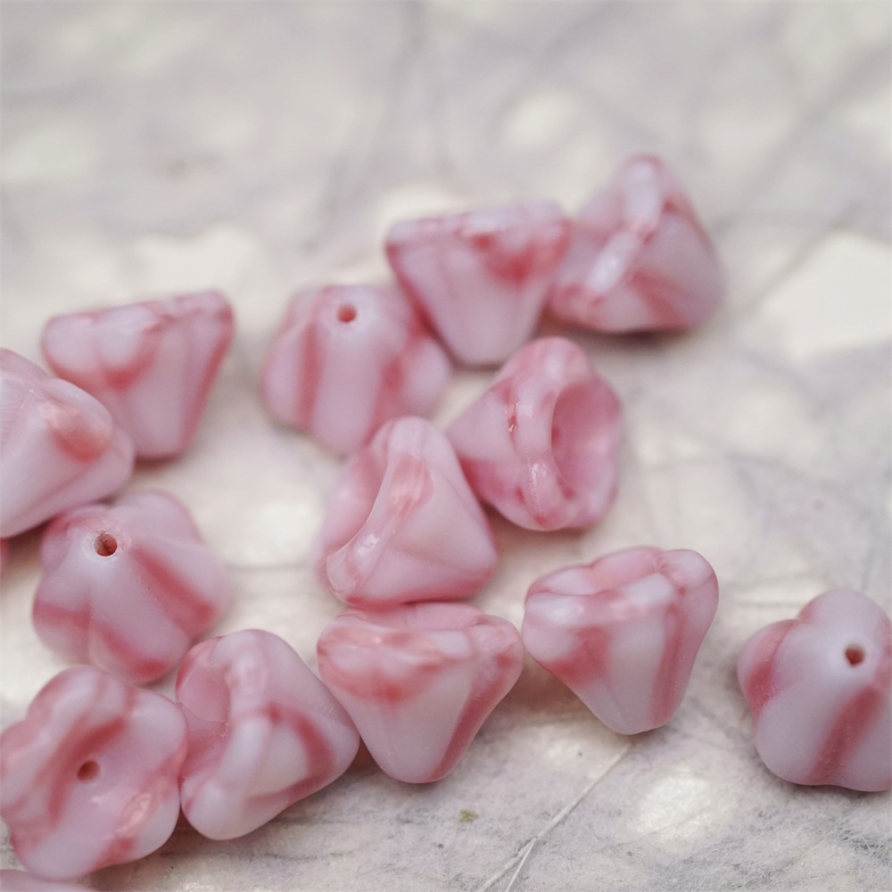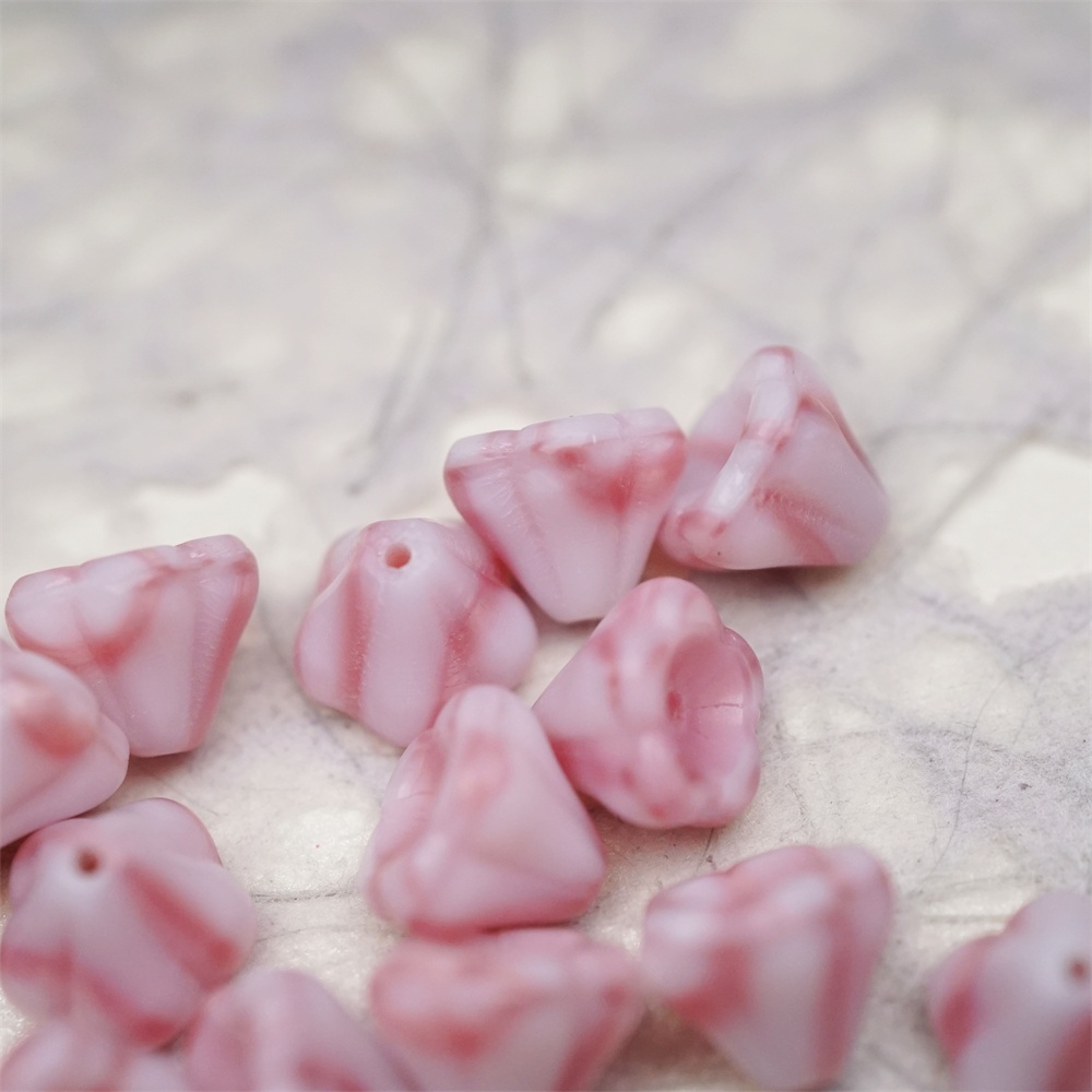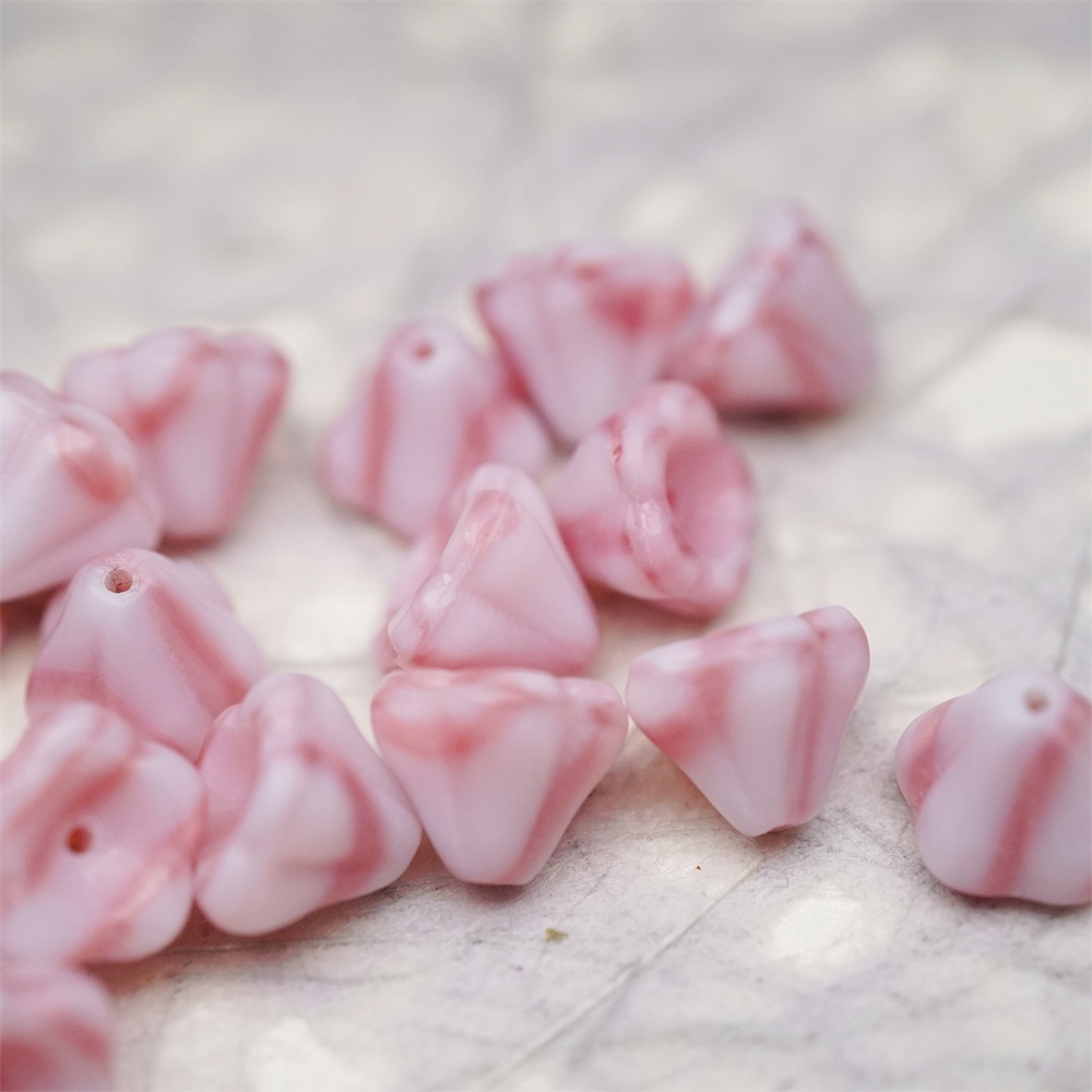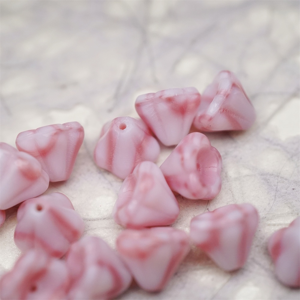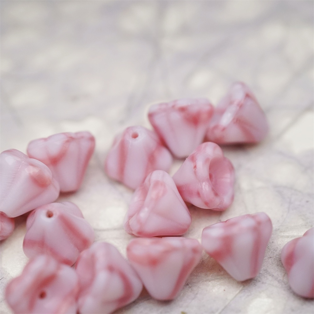 粉白条纹mix奶乖配色~莲雾捷克珠玻璃珠琉璃小花喇叭花 8X10MM