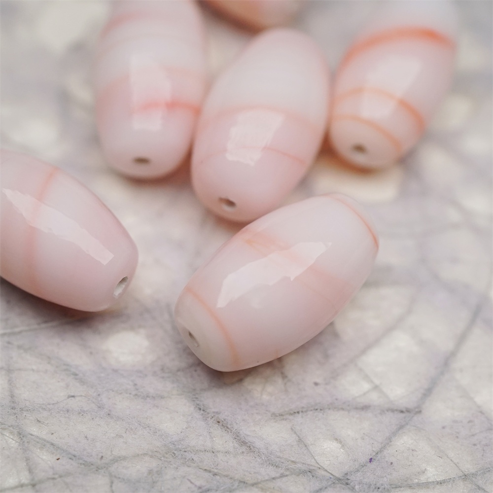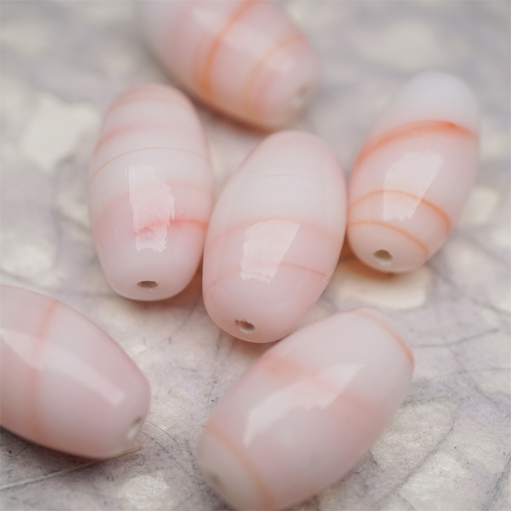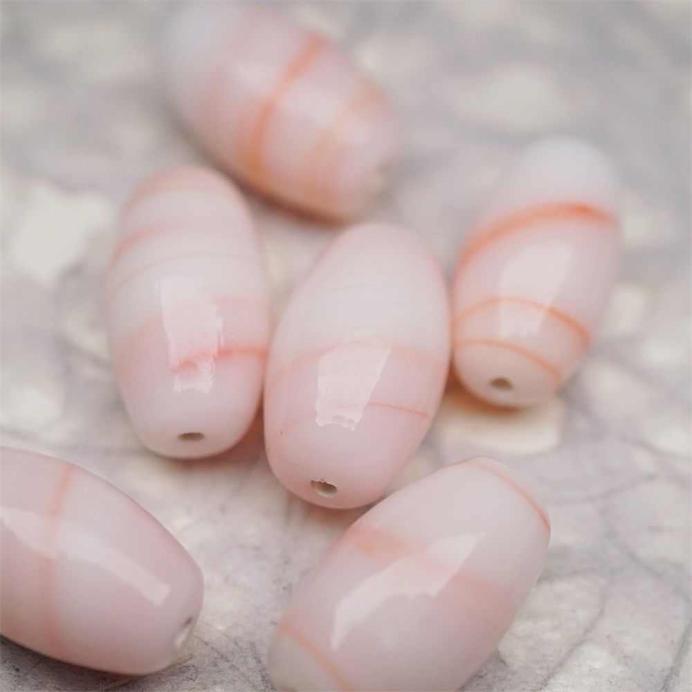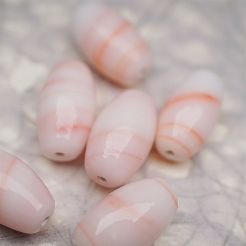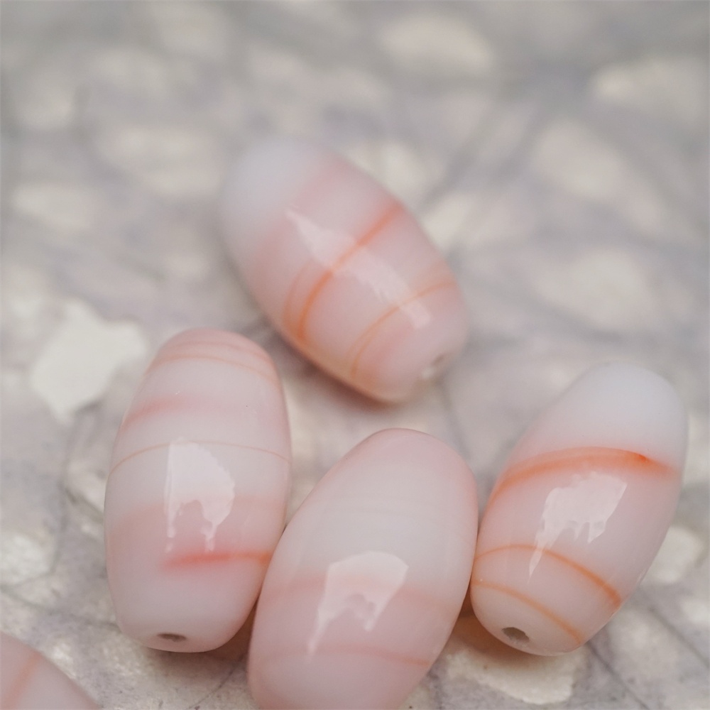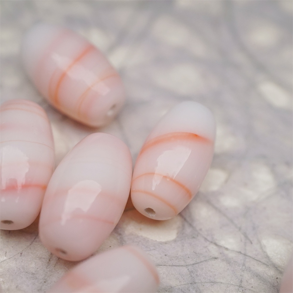 奶油蜜桃配色条纹mix手造椭圆珠~日本进口中古古董灯工玻璃琉璃珠 12X18MM
