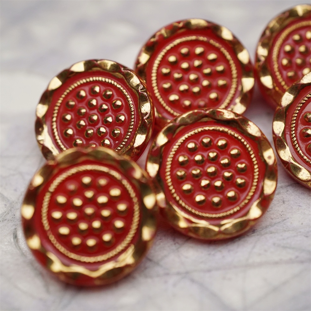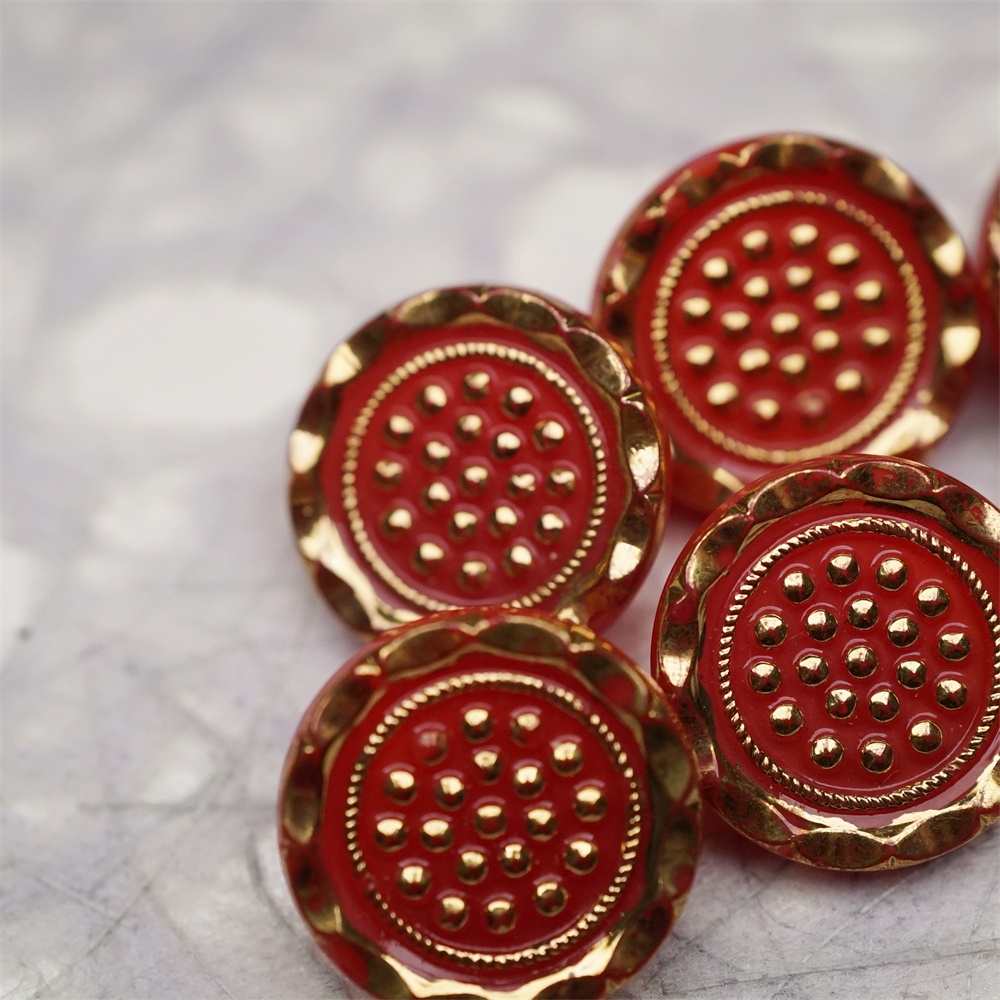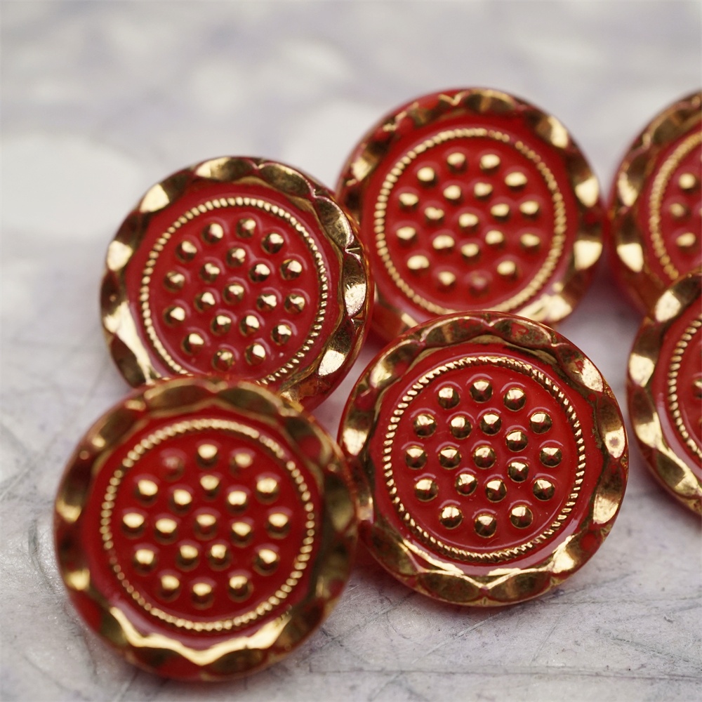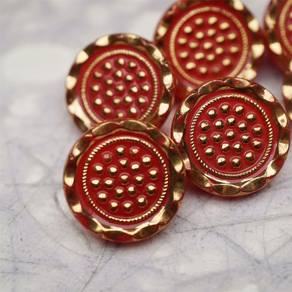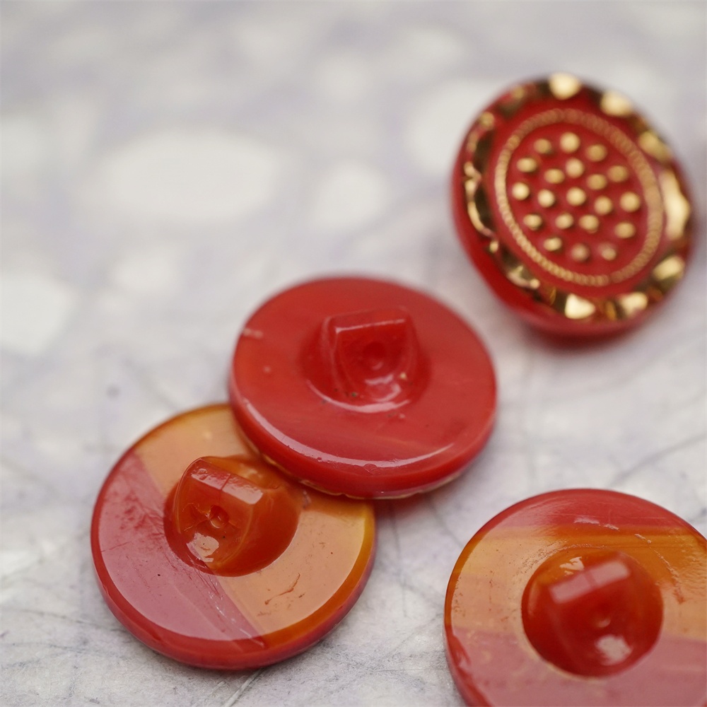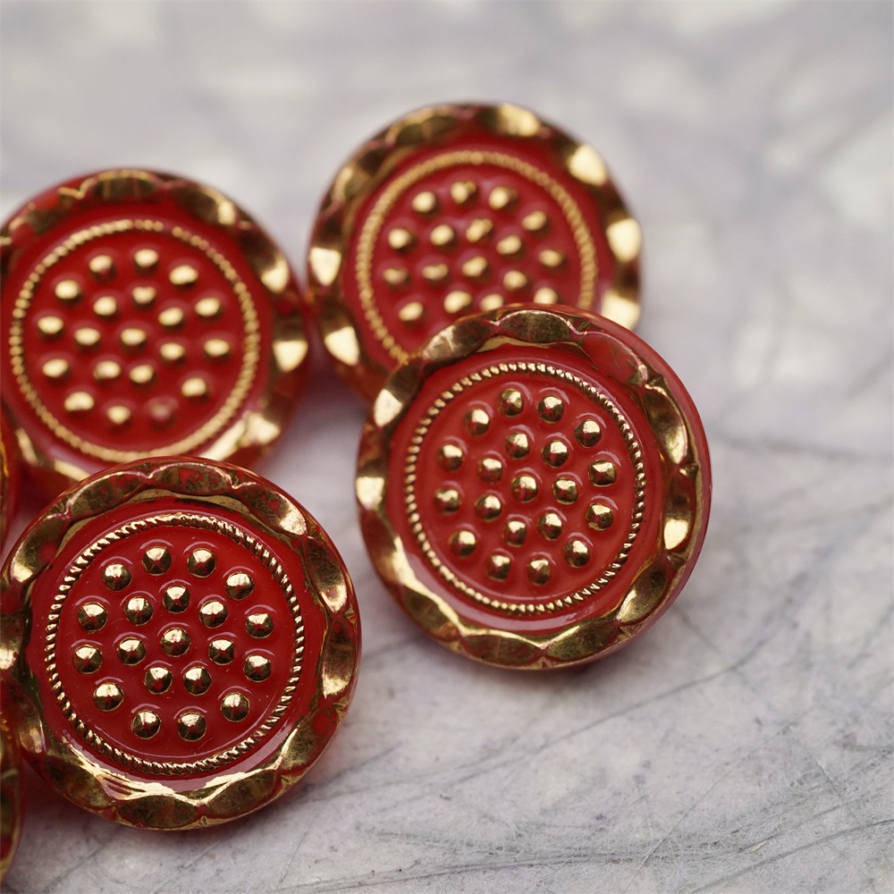复古橘色鎏金波点~捷克古董纽扣珠侧孔珠玻璃琉璃珠 18MM