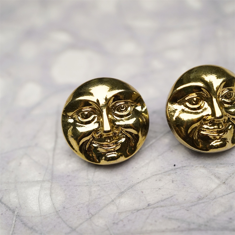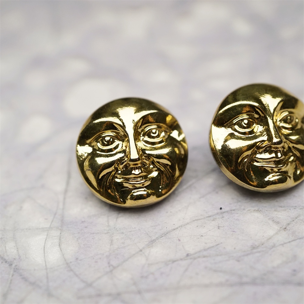 金色月亮脸kirks folly风格~捷克古董纽扣珠侧孔珠玻璃琉璃珠 18MM