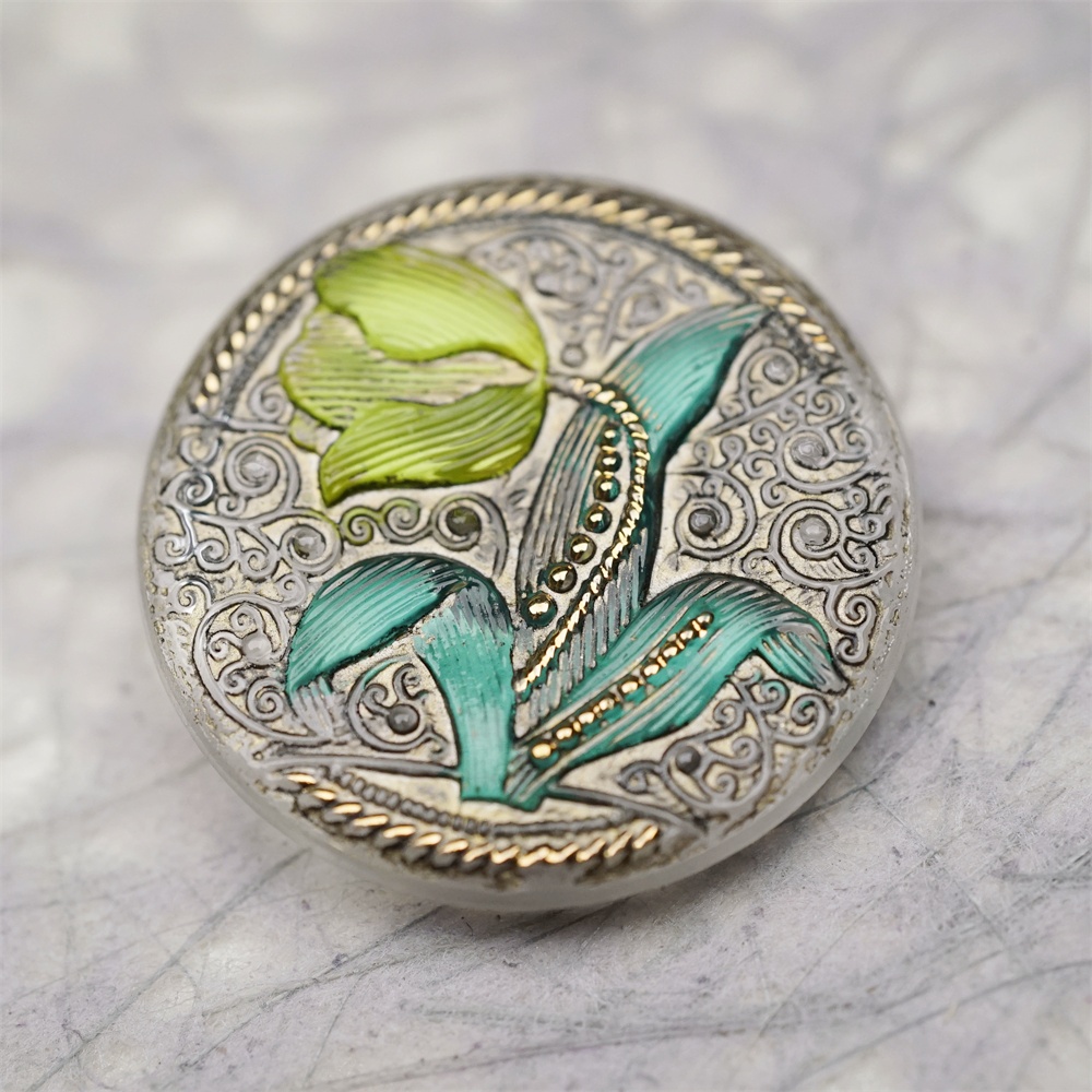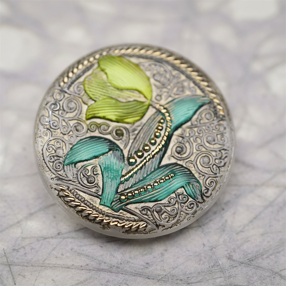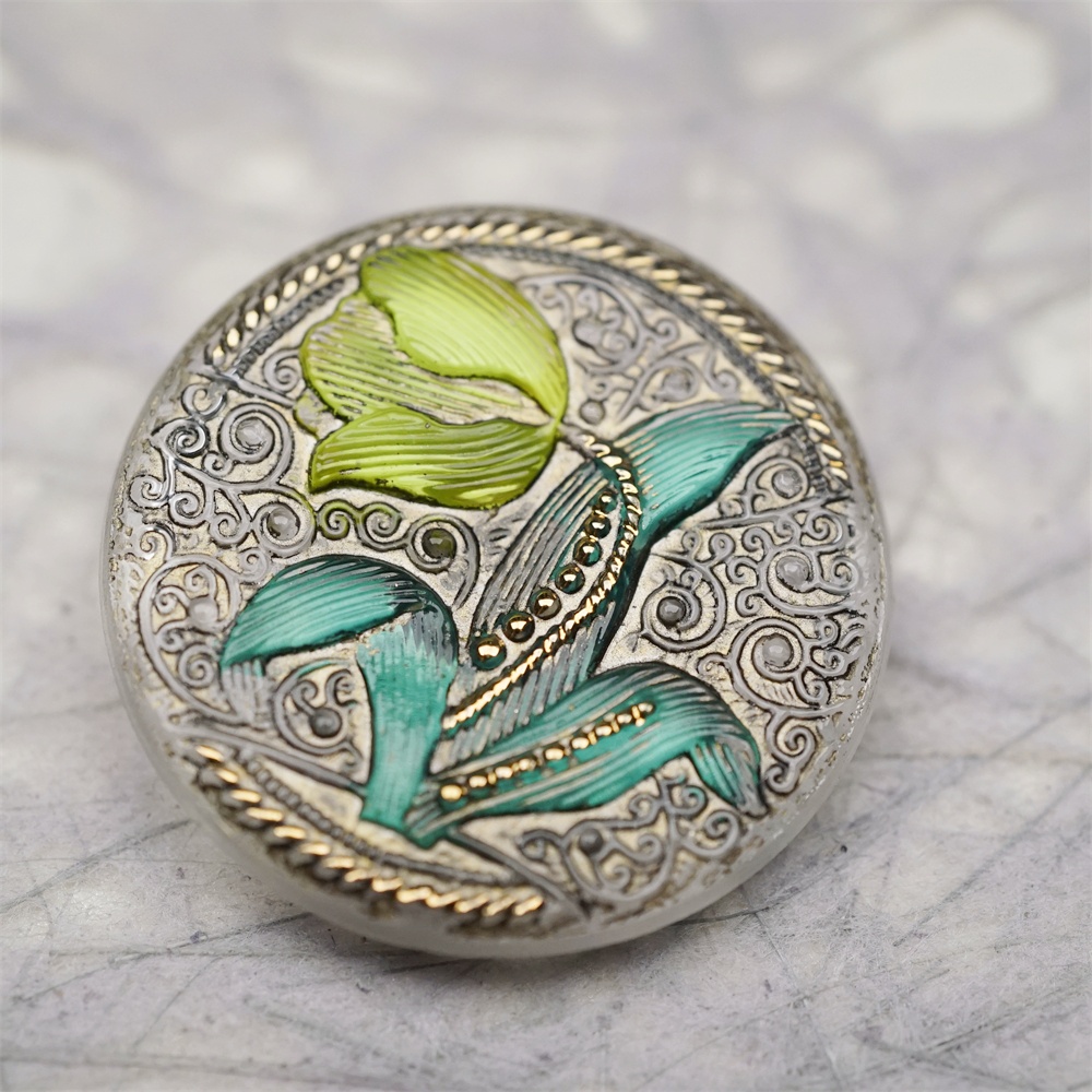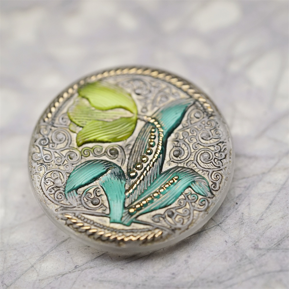 清新彩绘法式花朵风格~捷克古董纽扣珠侧孔珠玻璃琉璃珠 32MM