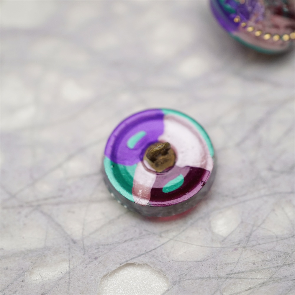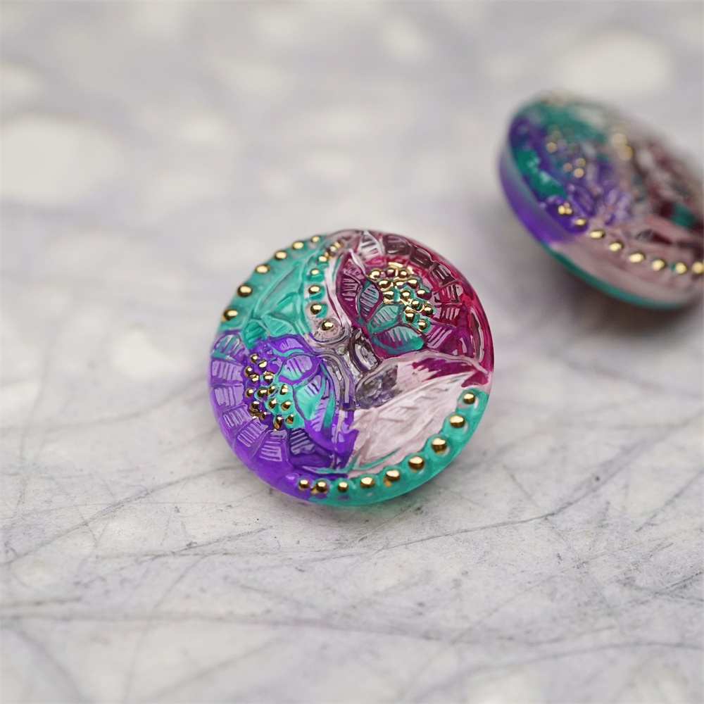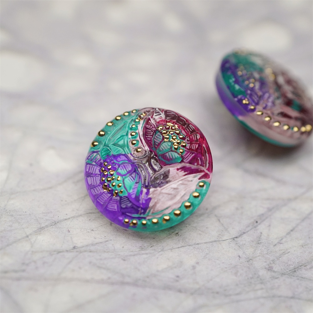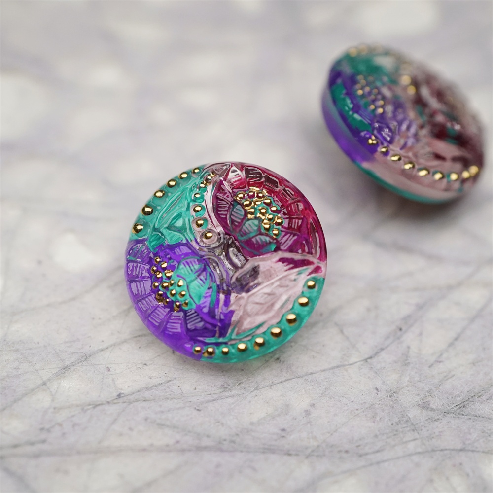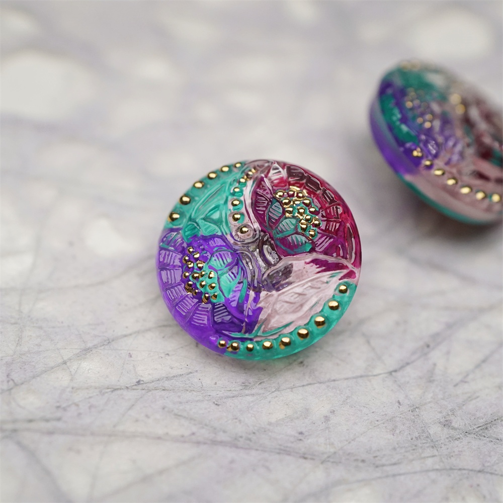 复古双子花朵彩色系~捷克古董纽扣珠侧孔珠玻璃琉璃珠 20MM