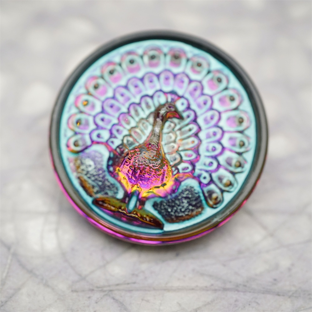 彩色光泽渐变孔雀~捷克古董纽扣珠侧孔珠玻璃琉璃珠 32MM