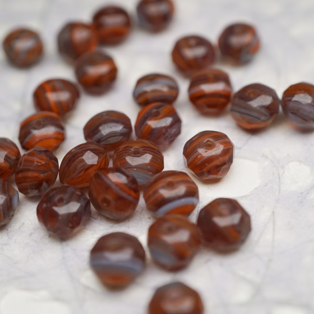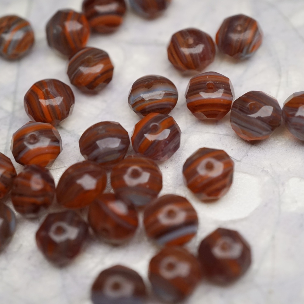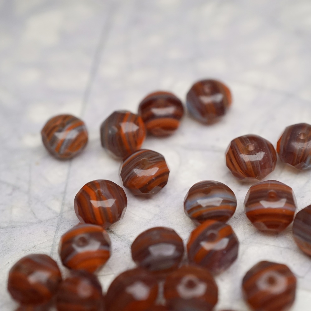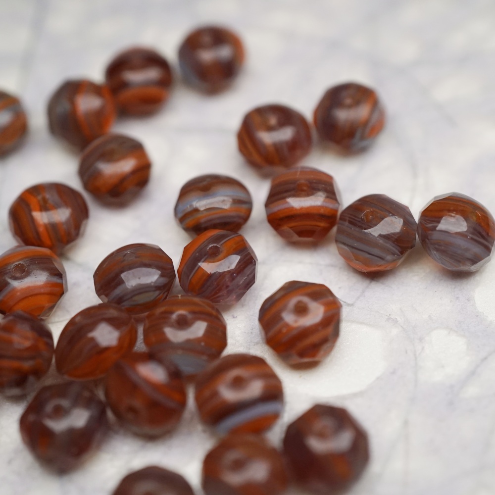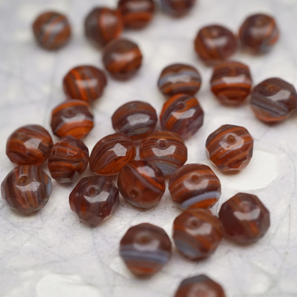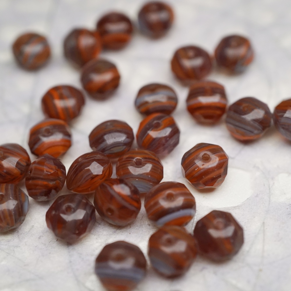 复古棕红色mix线条感~切面扁圆捷克珠玻璃珠琉璃珠算盘珠隔珠 9X6MM