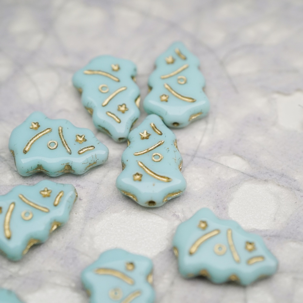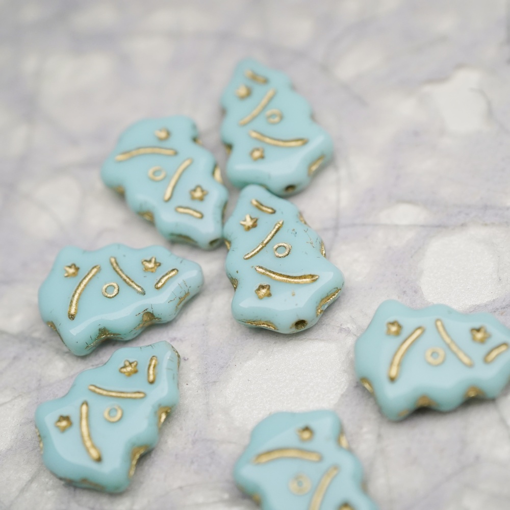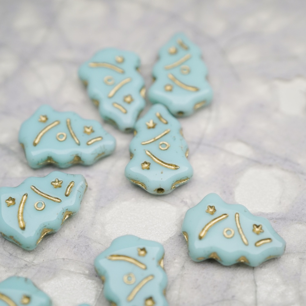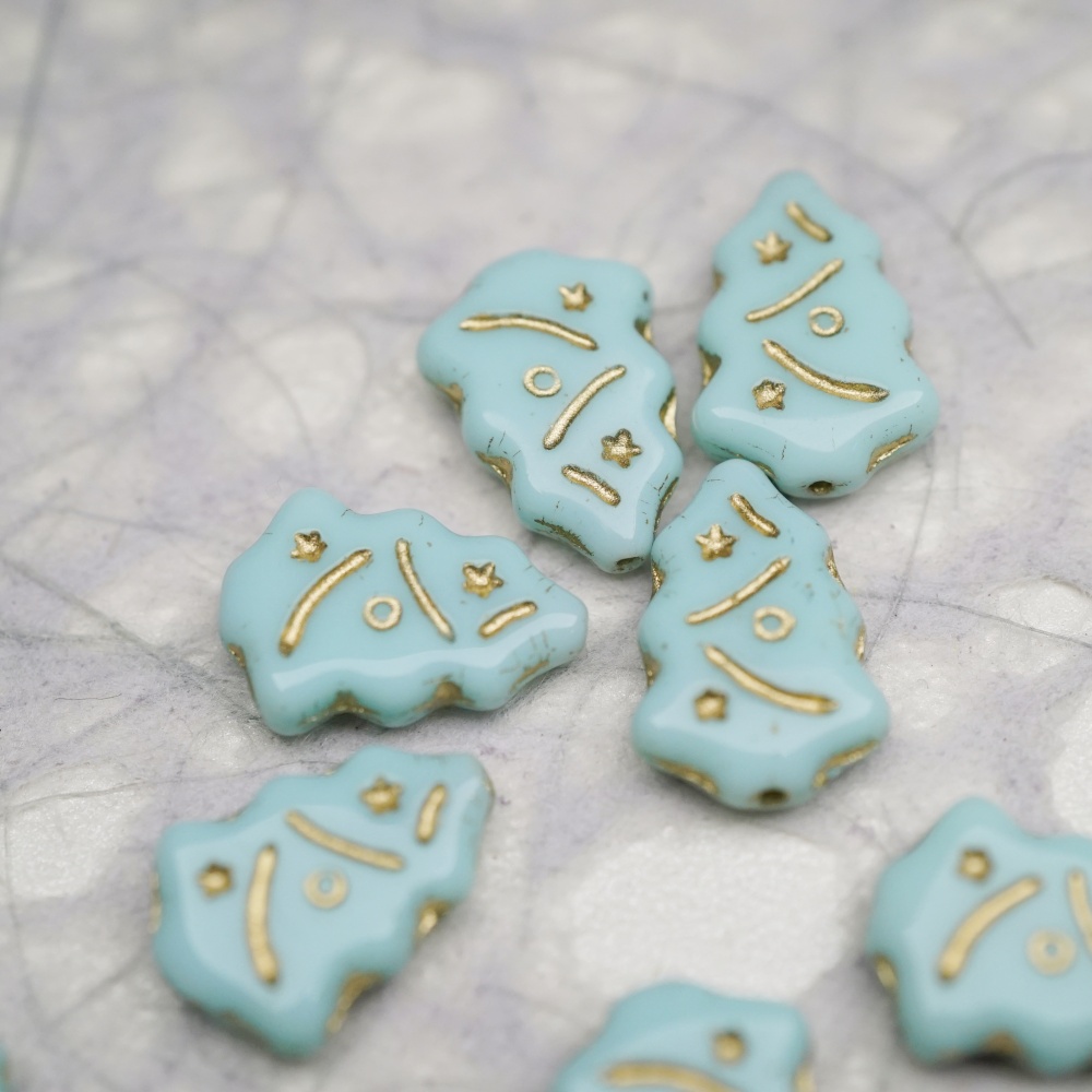 浅薄荷绿描金色~圣诞树捷克珠玻璃琉璃珠17X12MM