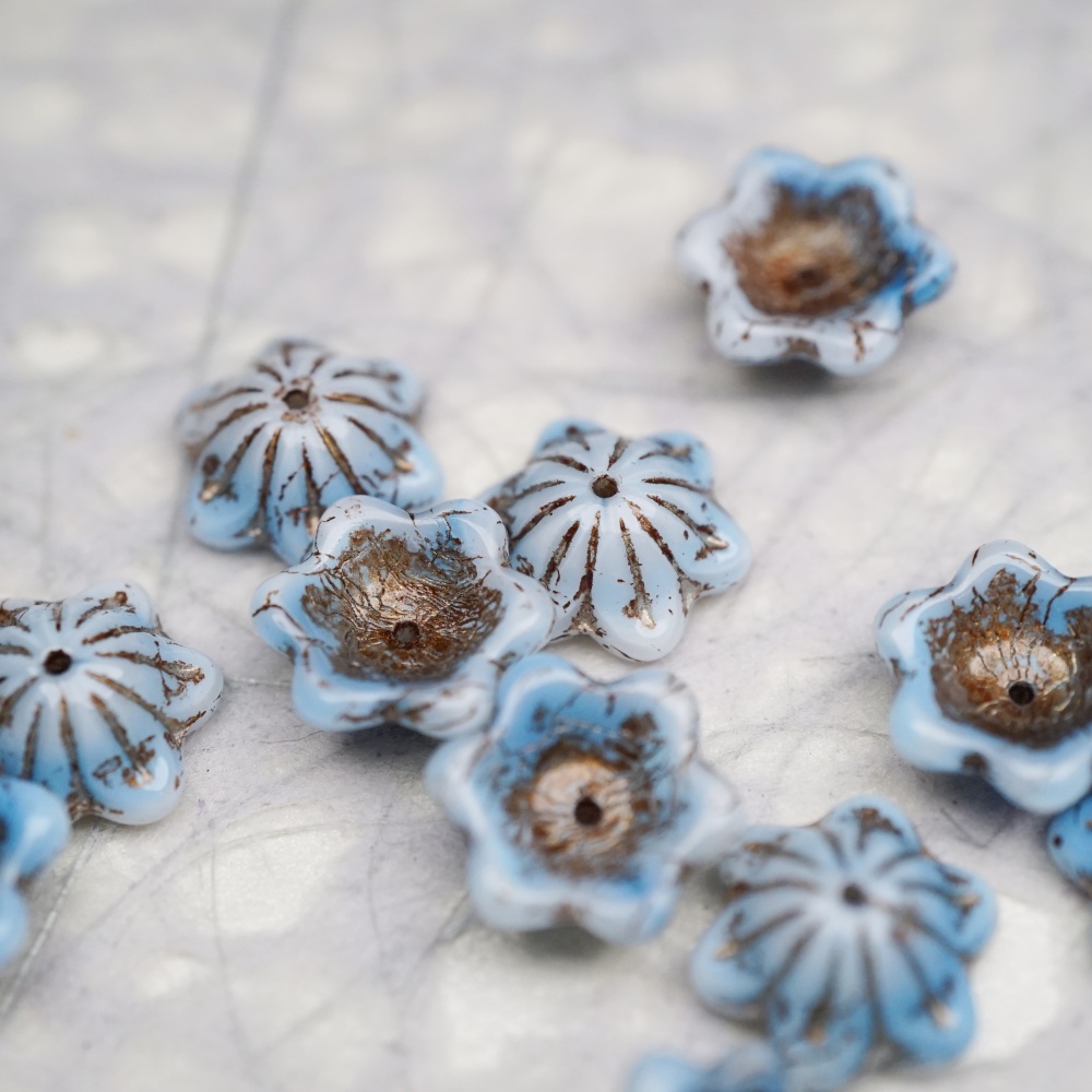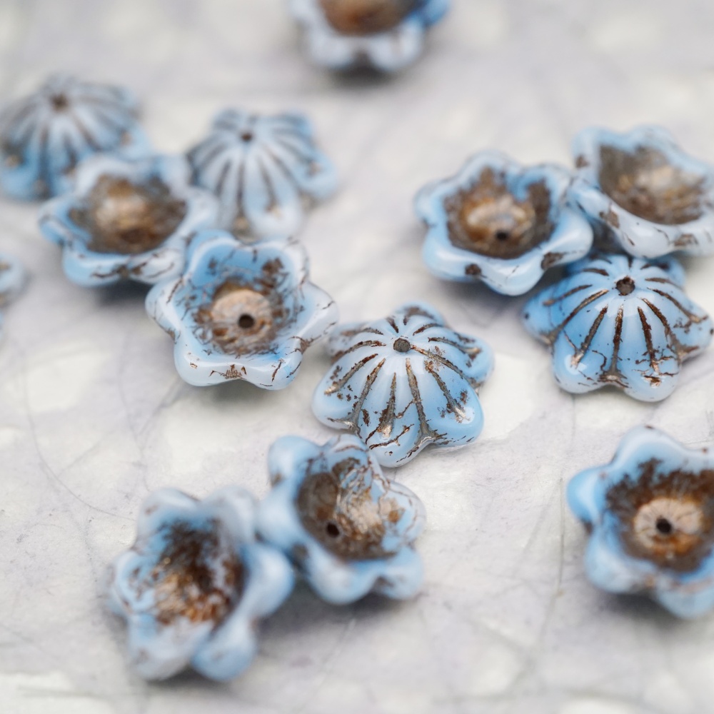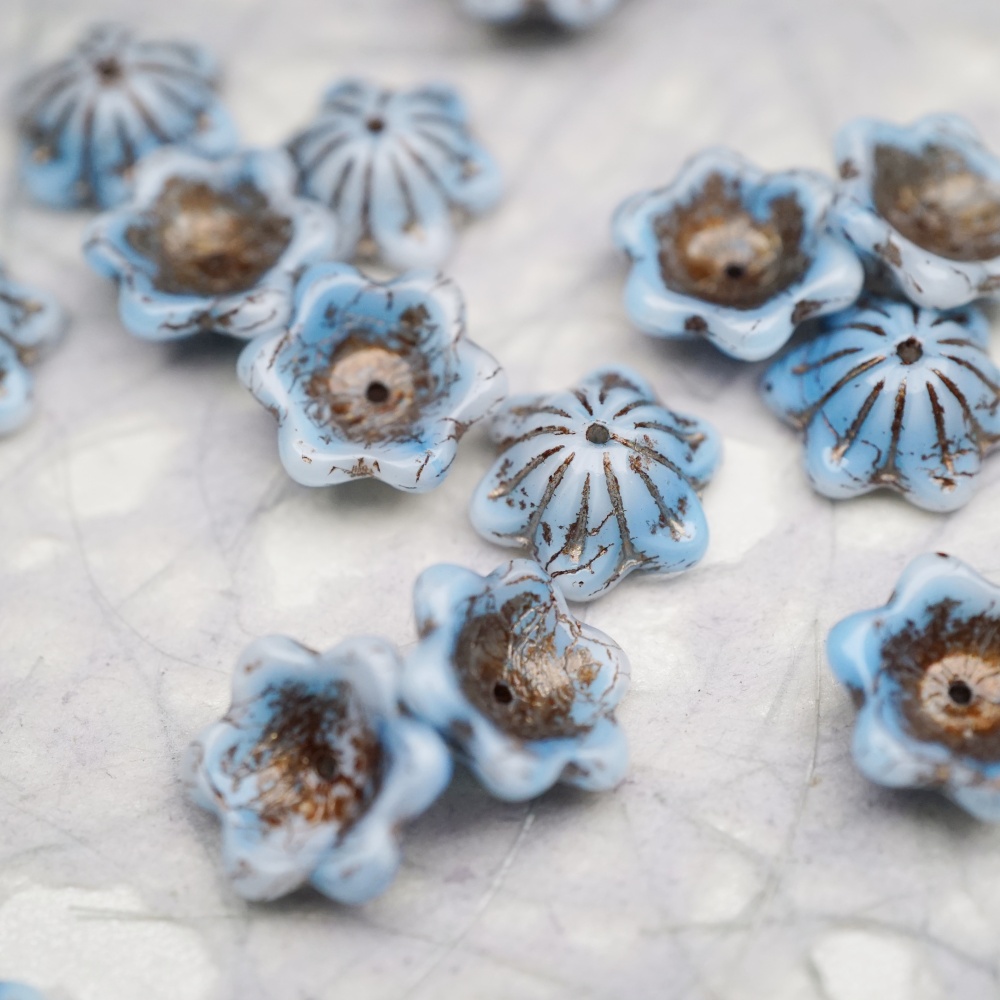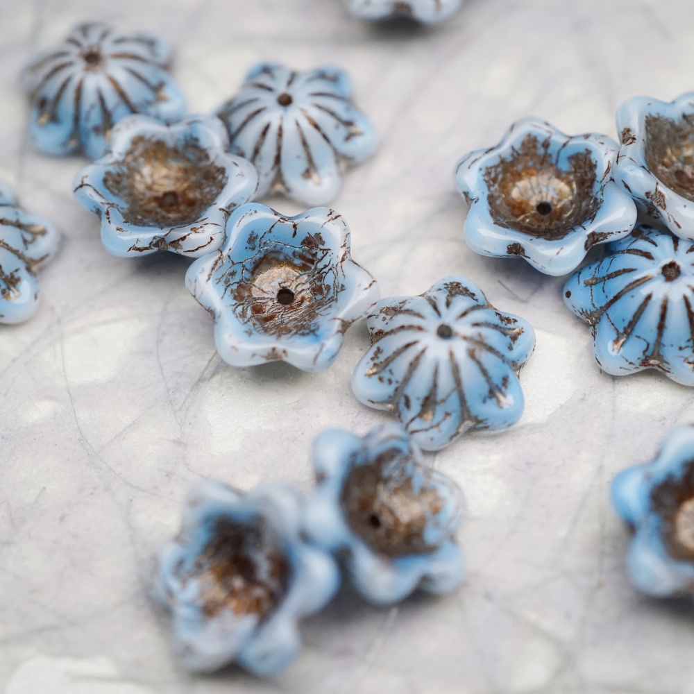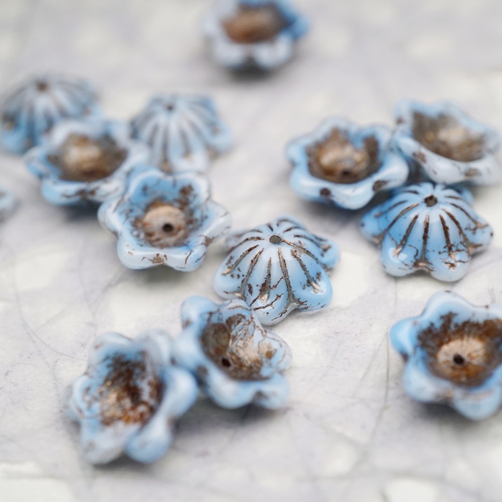 亮面奶油蓝白色mix描古铜金色~小碗花贝尔铃铛花铃兰捷克珠玻璃琉璃珠 14MM