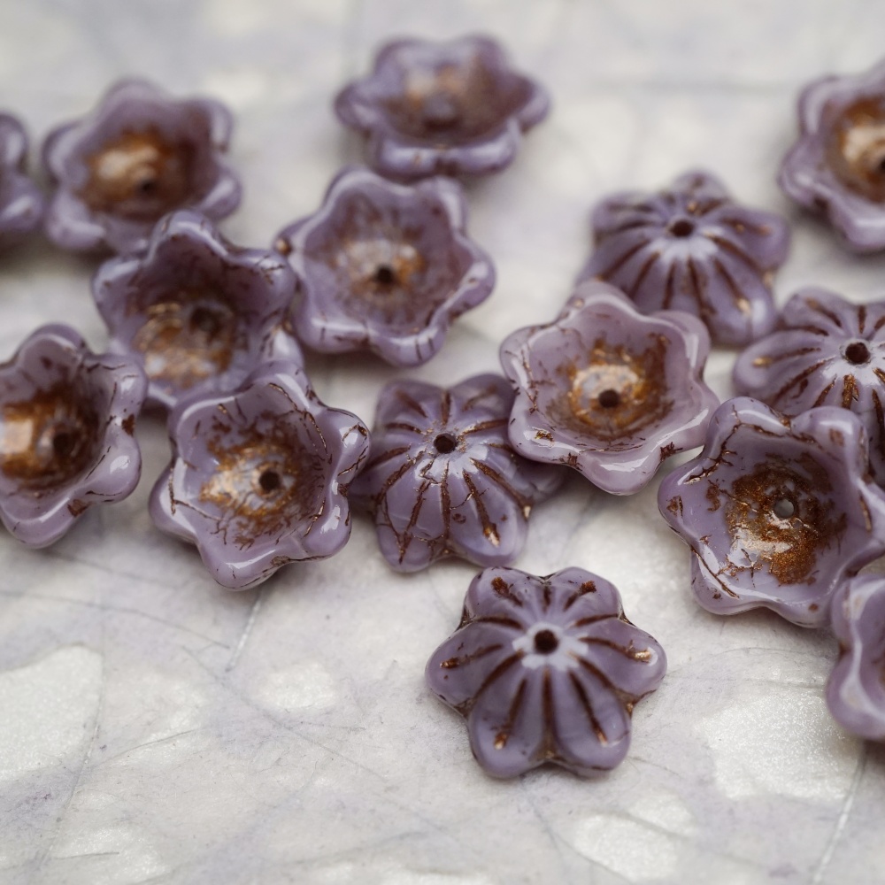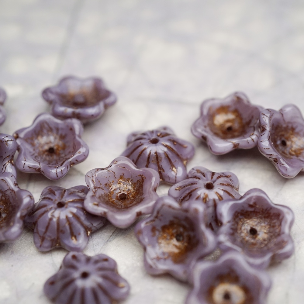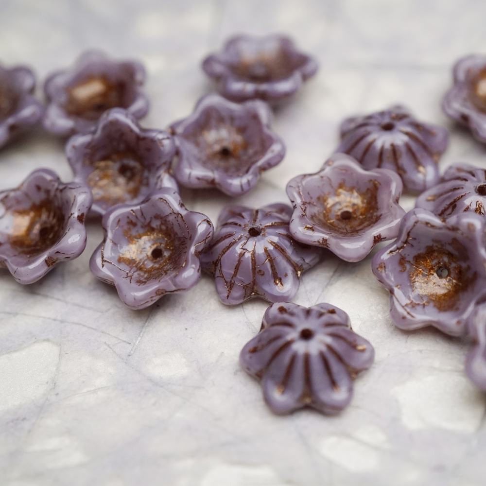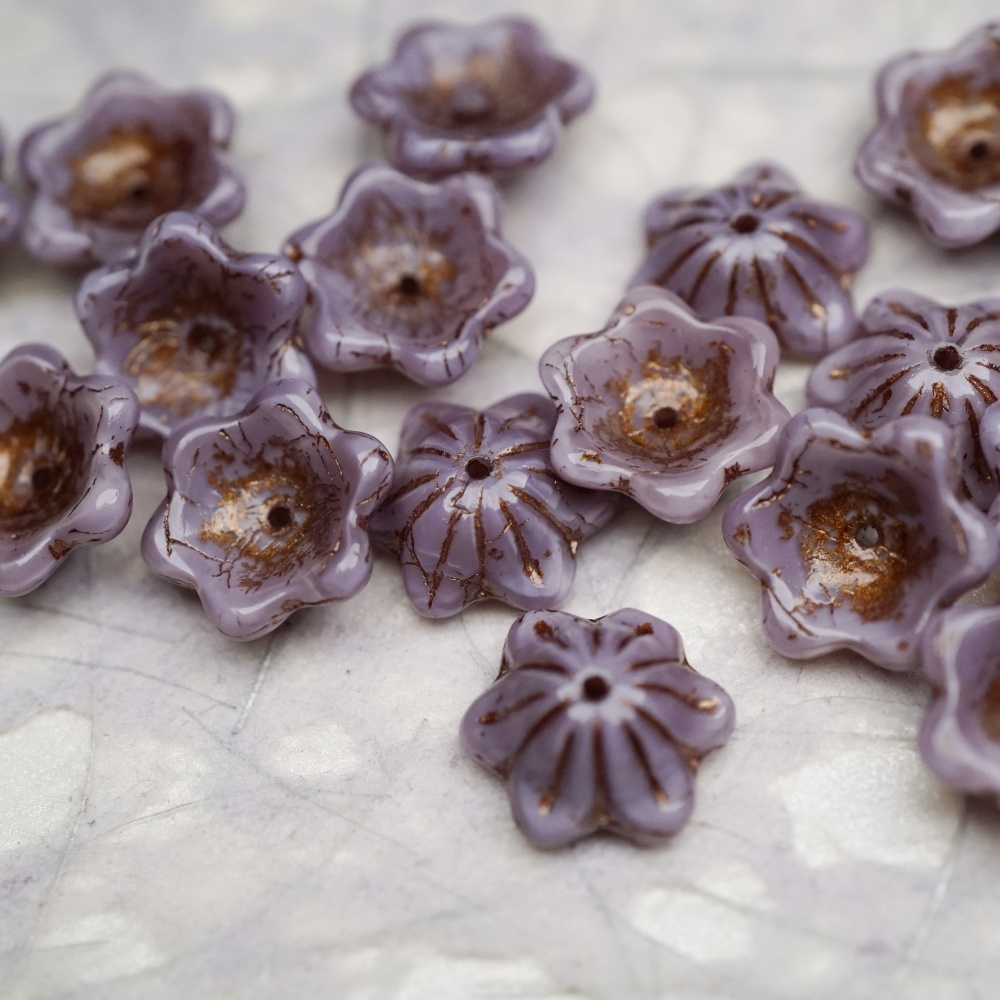 亮面复古丝绸紫mix描古铜金色~小碗花贝尔铃铛花铃兰捷克珠玻璃琉璃珠 14MM