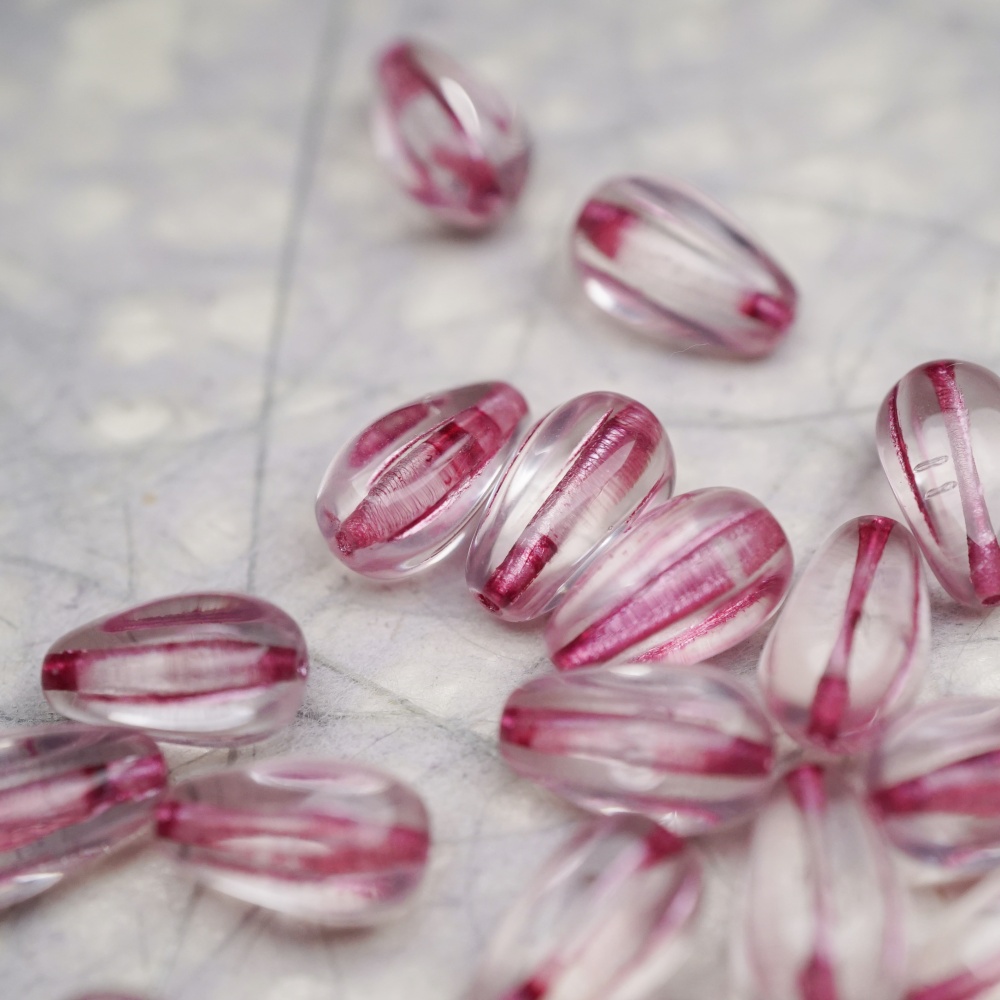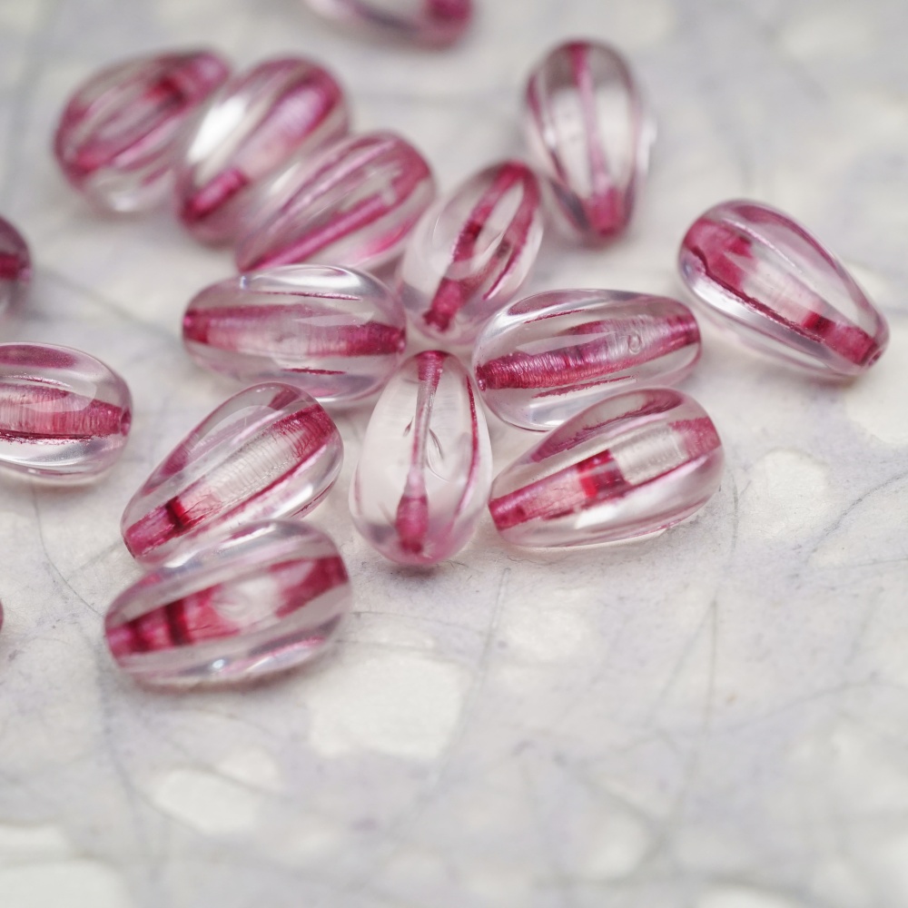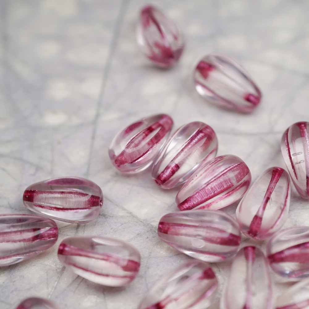 透明底色粉色条纹~水滴南瓜珠捷克玻璃琉璃 13X8MM