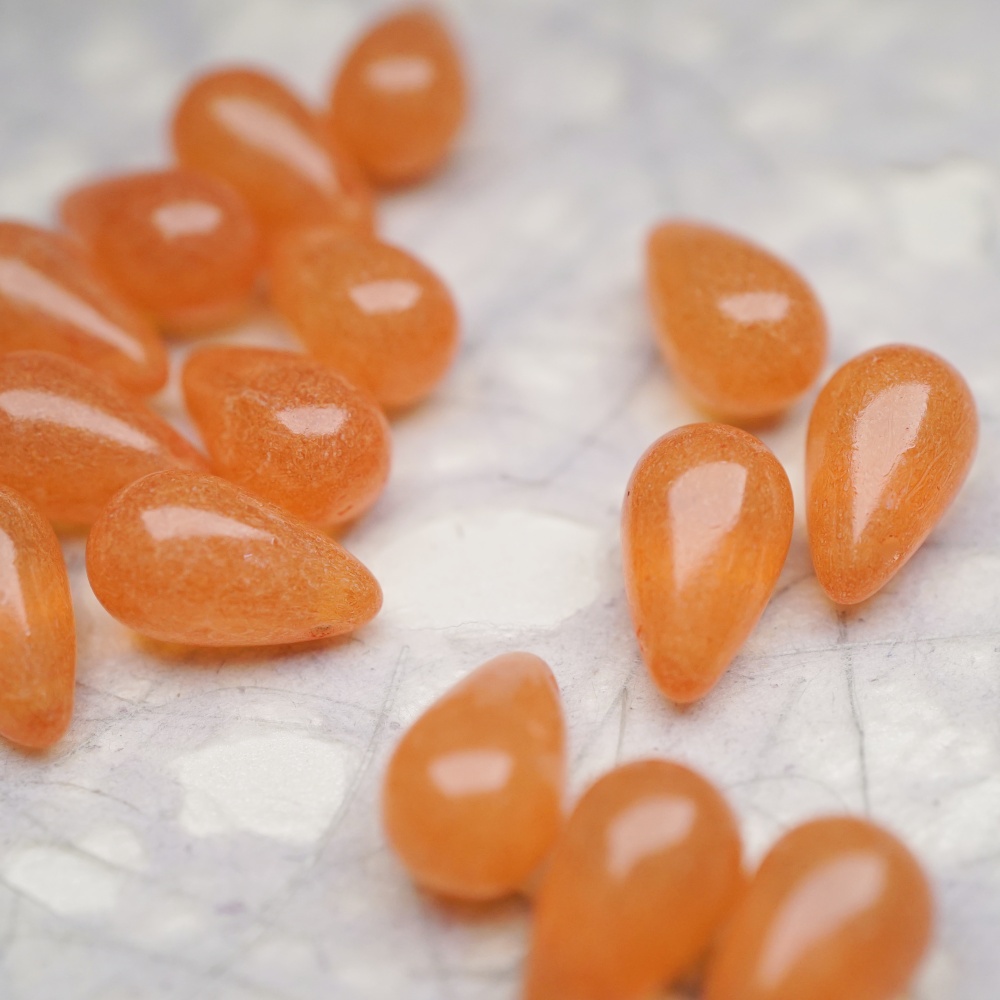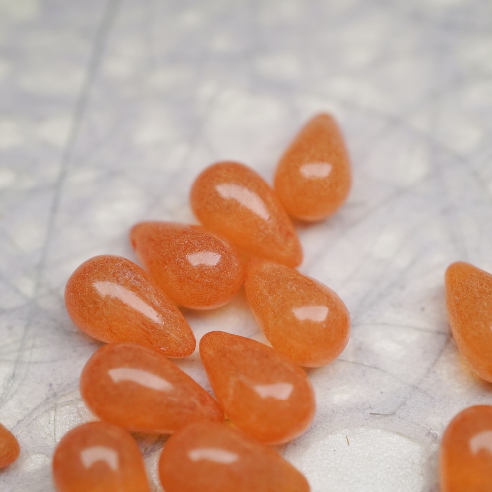 复古斑驳烟渍橙色水彩感~复古大号水滴捷克珠玻璃琉璃珠 9X15MM