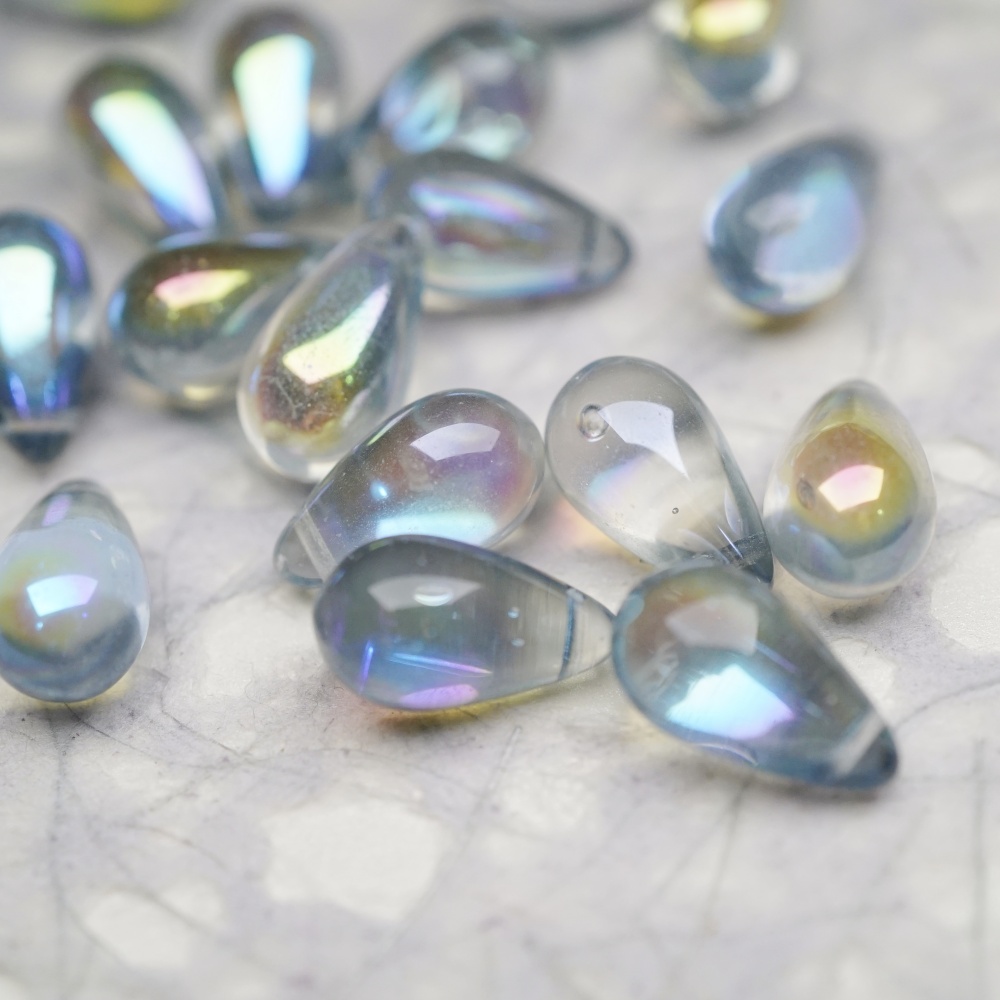 灰色透色幻彩极光彩色~复古大号水滴捷克珠玻璃琉璃珠 9X15MM