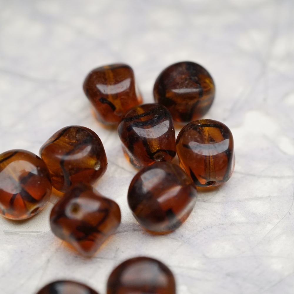 琥珀色玳瑁条纹~立体感圆方鼓鼓捷克珠玻璃珠 11MM